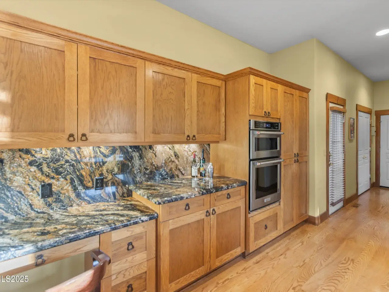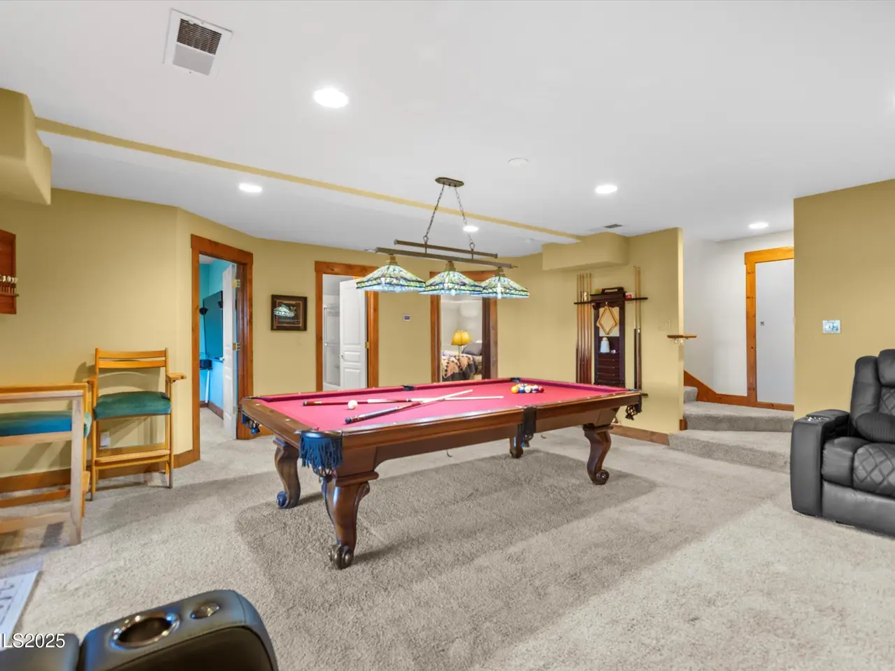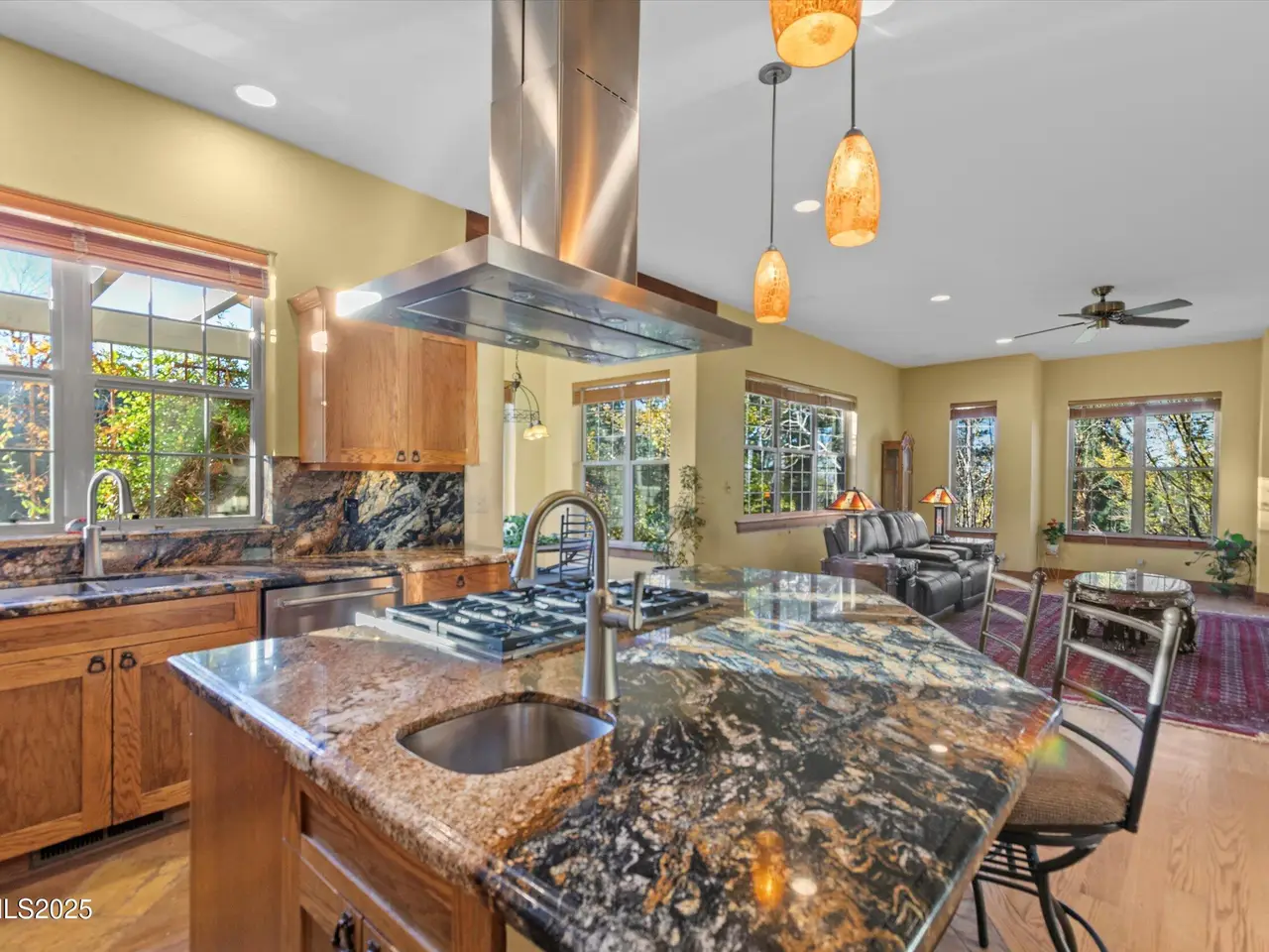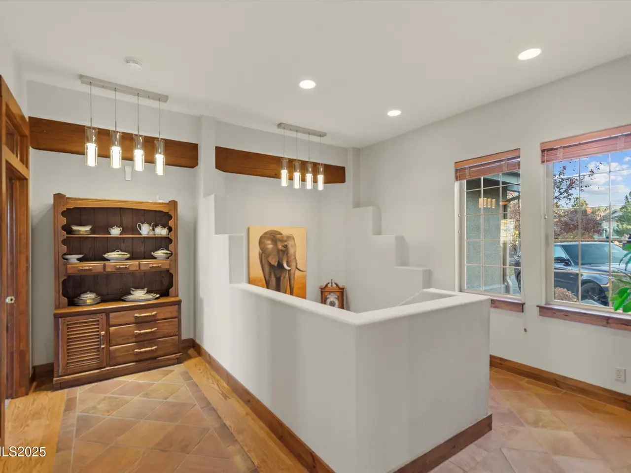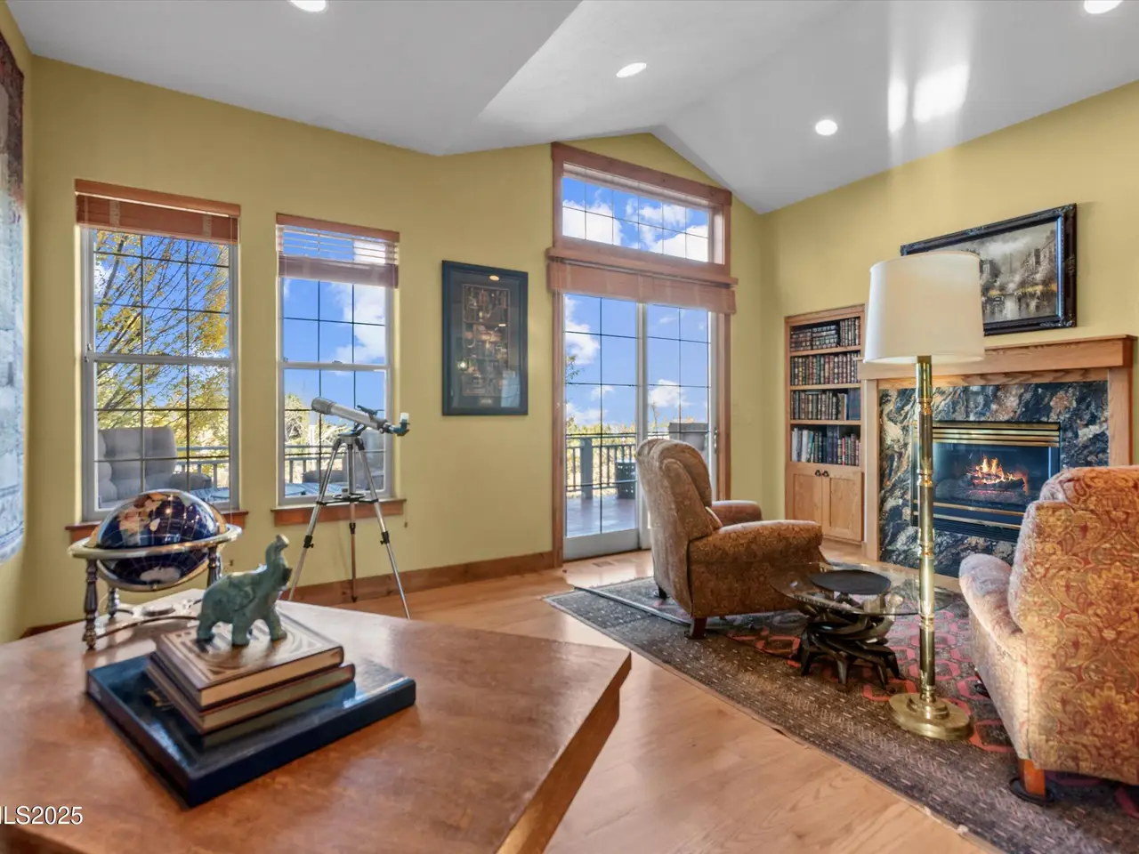 Private cul-de-sac living in Saddlehorn with wide views of Mt. Rose, the Sierra, and the Reno skyline. This custom home blends timeless architecture with a peaceful, elevated setting. Historic reclaimed wood beams from old railroad tunnels deliver distinctive Nevada character. Main-level living features formal living and dining rooms, a welcoming family room, and a well-appointed kitchen with custom cabinetry and excellent storage. The primary suite is also on this level for comfort and ease. Downstairs, two additional bedrooms and a large bonus/media room open to outdoor living areas surrounded by mature landscaping and natural scenery. Saddlehorn parkland borders the property on two sides, providing added privacy, improved sun exposure, and enhanced views. A rare 4-car garage offers outstanding space for vehicles and gear. Residents enjoy walking trails, parks, and community recreation close by, with Galena hiking and shopping minutes away. Mt. Rose Ski Area is just 11 miles up the road. A quiet, scenic location paired with respected custom design. Strong architecture. Everyday convenience. Ready for what's next.