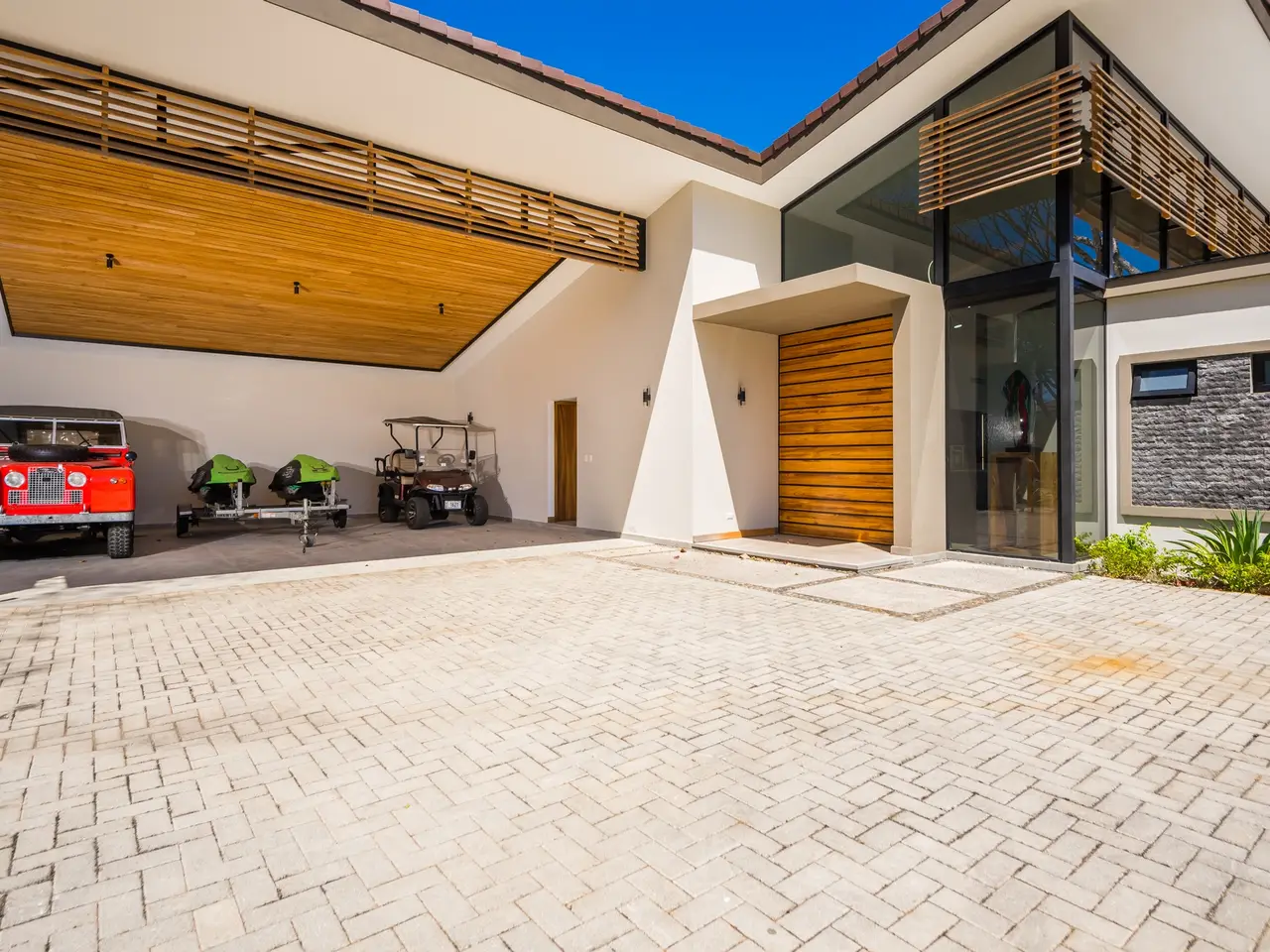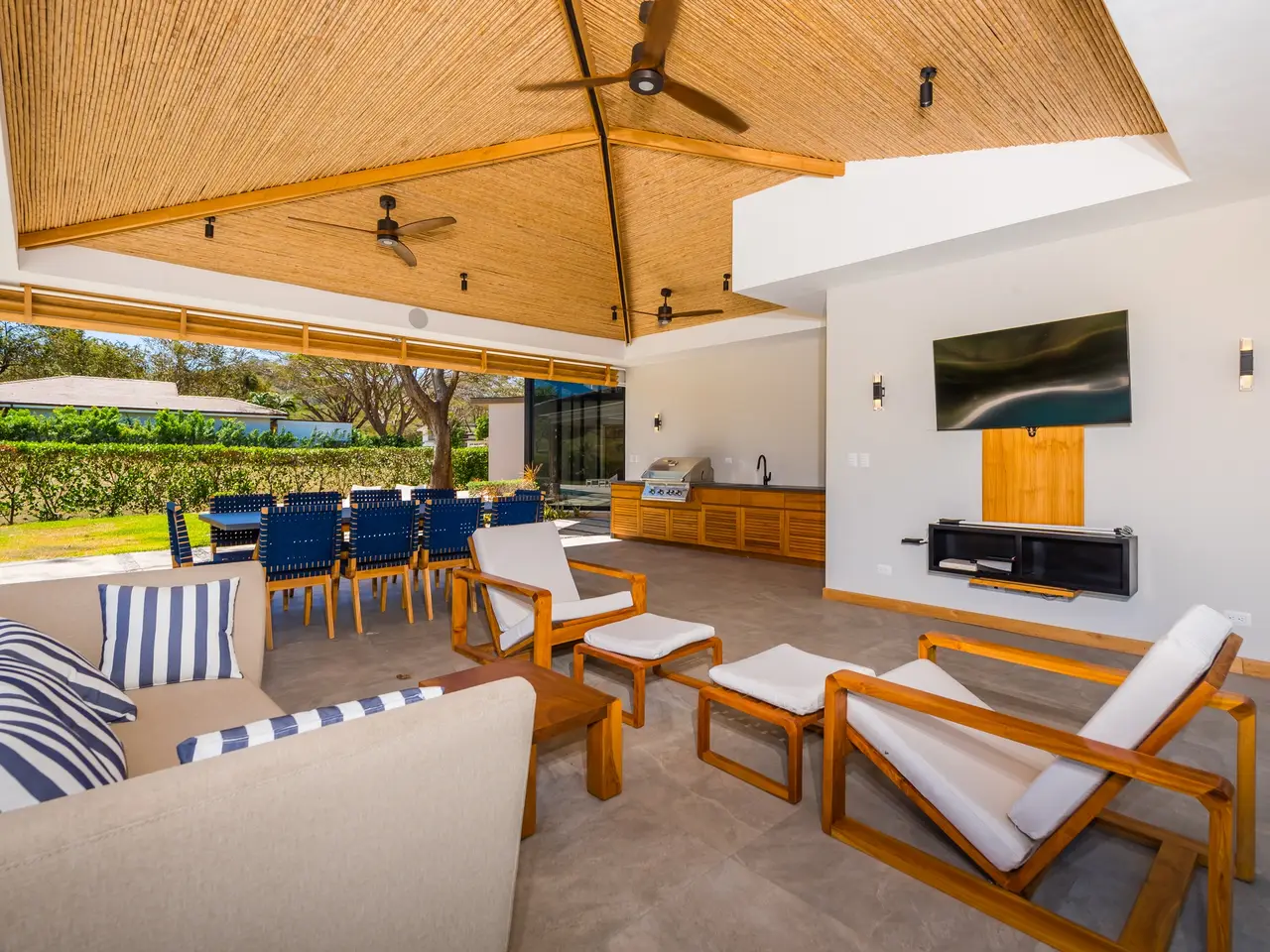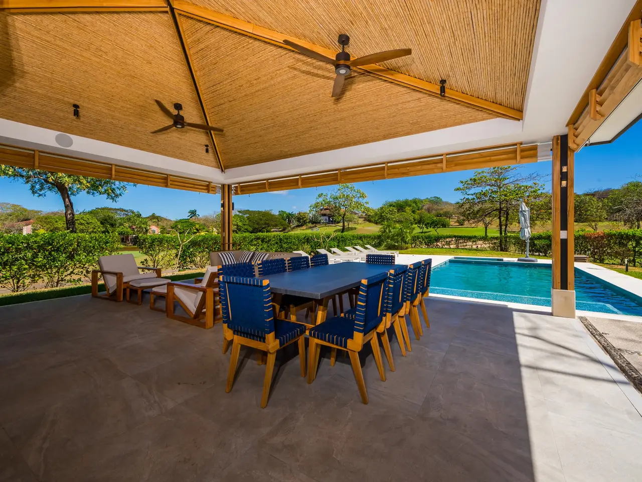 Located within the exclusive Llama del Bosque homes in Reserva Conchal, this single-story masterpiece epitomizes modern architectural elegance. Its strategic positioning alongside the enchanting golf course seamlessly integrates the residence with the vibrant natural surroundings, offering a privileged connection to Playa Conchal—one of the world's most renowned beaches. The interior unfolds to reveal four generously appointed bedrooms, including two luxurious master suites and two comfortable double bedrooms, all featuring private bathrooms and air conditioning. The open design of the social areas creates a harmonious, sunlit environment, blending the kitchen, living room, and dining area. High ceilings amplify the sense of spaciousness, offering breathtaking views of mountains, terraces, gardens, and the inviting pool. Beyond aesthetics, the residence is thoughtfully designed for convenience and luxury. Highlights include a covered terrace with a BBQ, TV, and outdoor furniture set, a swimming pool, jacuzzi, and well-maintained gardens with picturesque views. Practical features such as a laundry area, spacious pantry, storage room, covered garage for three cars, and parking for four vehicles enhance the overall functionality of the home. Situated on the pristine white sands of Playa Conchal, Reserva Conchal spans 2,300 acres and is a premier luxury gated community in Guanacaste, Costa Rica. Its A+ amenities cater to diverse interests, offering a PGA-level golf course, tennis courts, a modern fitness center, hiking and biking trails, and a Beach Club with multiple pools, paddleboards, kayaks, and bikes. Access to 13 bars, restaurants, and two spas at discounted rates, along with proximity to expat schools and the Liberia international airport, make Reserva Conchal a haven for families, retirees, and vacation rentals. Embark on the journey to tropical paradise and embrace the dream lifestyle that Reserva Conchal offers!