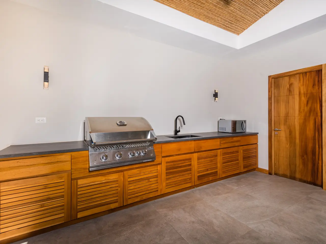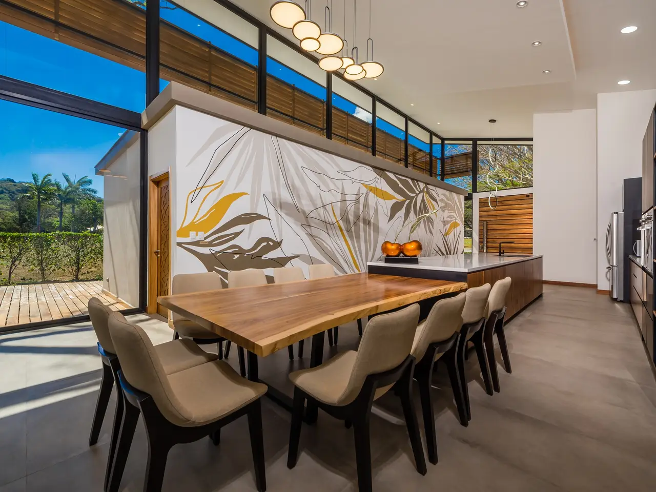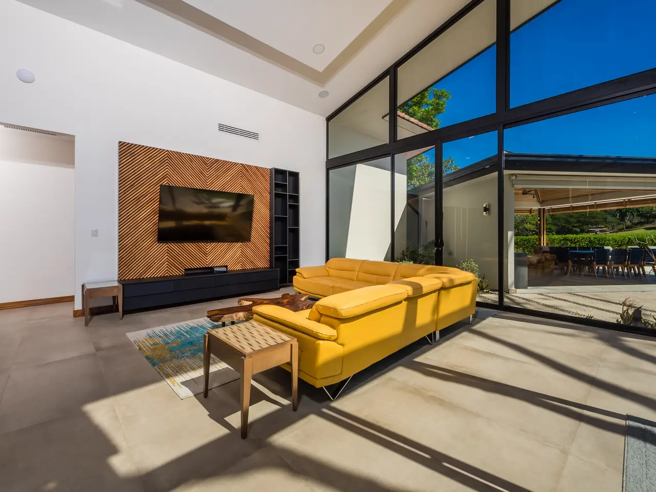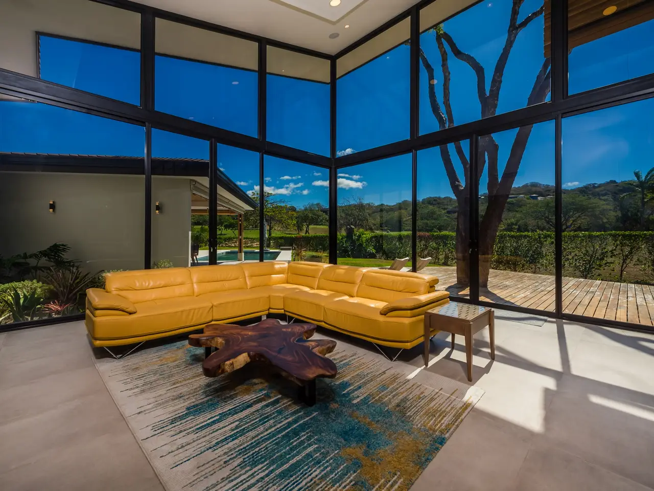 Located within the exclusive Llama del Bosque homes in Reserva Conchal, this single-story masterpiece epitomizes modern architectural elegance. Its strategic positioning alongside the enchanting golf course seamlessly integrates the residence with the vibrant natural surroundings, offering a privileged connection to Playa Conchal—one of the world's most renowned beaches. The interior unfolds to reveal four generously appointed bedrooms, including two luxurious master suites and two comfortable double bedrooms, all featuring private bathrooms and air conditioning. The open design of the social areas creates a harmonious, sunlit environment, blending the kitchen, living room, and dining area. High ceilings amplify the sense of spaciousness, offering breathtaking views of mountains, terraces, gardens, and the inviting pool. Beyond aesthetics, the residence is thoughtfully designed for convenience and luxury. Highlights include a covered terrace with a BBQ, TV, and outdoor furniture set, a swimming pool, jacuzzi, and well-maintained gardens with picturesque views. Practical features such as a laundry area, spacious pantry, storage room, covered garage for three cars, and parking for four vehicles enhance the overall functionality of the home. Situated on the pristine white sands of Playa Conchal, Reserva Conchal spans 2,300 acres and is a premier luxury gated community in Guanacaste, Costa Rica. Its A+ amenities cater to diverse interests, offering a PGA-level golf course, tennis courts, a modern fitness center, hiking and biking trails, and a Beach Club with multiple pools, paddleboards, kayaks, and bikes. Access to 13 bars, restaurants, and two spas at discounted rates, along with proximity to expat schools and the Liberia international airport, make Reserva Conchal a haven for families, retirees, and vacation rentals. Embark on the journey to tropical paradise and embrace the dream lifestyle that Reserva Conchal offers!