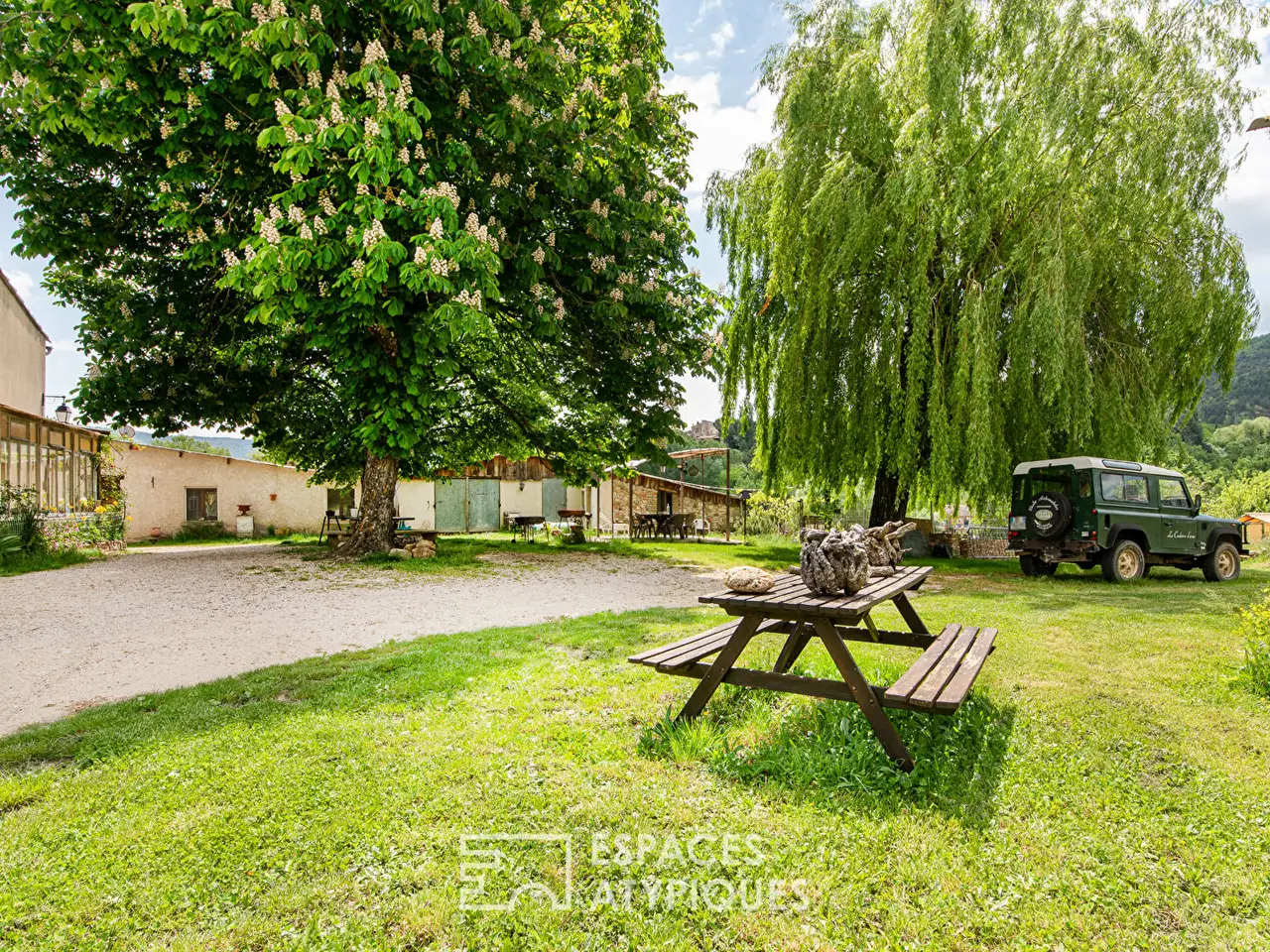 Located on a beautiful landscaped plot of over 2.5 hectares, this former 18th-century farmhouse offers a magnificent 180-degree view of the Lurs mountain, the valleys, and the village, close to shops. This elegant stone building with outbuildings totaling approximately 575 sqm will offer you beautiful spaces and numerous possibilities after renovation. Steeped in history, this property has an old carpentry workshop of approximately 200 sqm which could satisfy your desires and projects, or provide additional income. The main building with a new roof and carpentry of approximately 130 sqm on two levels consists of eight rooms including five bedrooms and a cellar. An adjoining shed of approximately 200 sqm. A renovated gite of approximately 65 sqm with a 3-key label and terrace. A gite of approximately 75 sqm currently being renovated. An outbuilding of approximately 120 sqm on two levels to be renovated into a future home. On the garden side, you can enjoy the swimming pool as well as the various landscaped areas with terrace, balcony, courtyard, two wells and a stream. Part of the land below the building, which is still buildable, could be considered for future lots. For any information, contact Marion ROBERT 06 38 84 39 44 EI RSAC 892307539 MANOSQUE Information on the risks to which this property is exposed is available on the Georisques website: www.georisques.gouv.fr REF. 1038ADHP Additional information * 14 rooms * 7 bedrooms * 1 bathroom * 2 shower rooms * Floor : 1 * 1 floor in the building * Outdoor space : 23750 SQM * Property tax : 1 924 € Energy Performance Certificate EPC : 267 kWhEP/m2.year * A 450 GHG : 45 kgeqCO2/m2.year * A 80 Agency fees The fees include VAT and are payable by the vendor