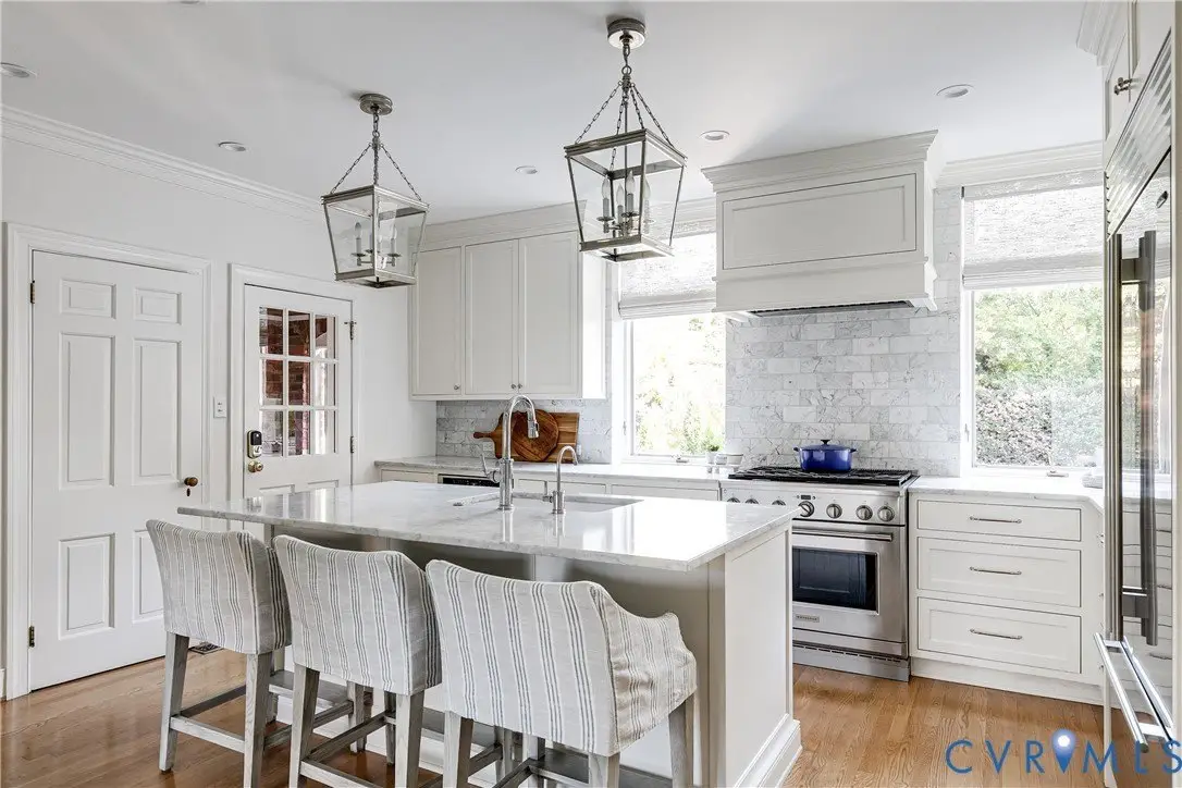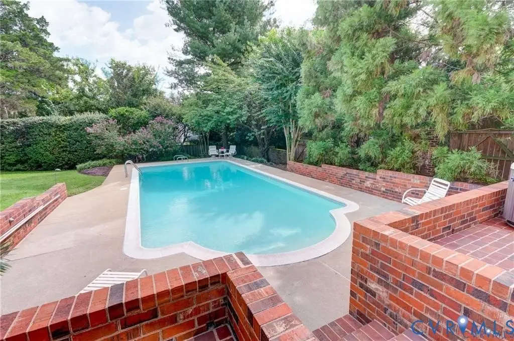 This brick and slate Richmond classic in desirable Windsor Farms is beautifully renovated and move-in ready. This elegant home showcases exquisite millwork, designer lighting, and curated finishes throughout. The gracious entry foyer opens to a large living room with a gas log fireplace and a spacious dining room with a bay window. The stunning 2021 kitchen renovation features inset custom cabinetry, marble countertops, a large center island, designer fixtures, and a walk-in pantry. The sunroom, surrounded by windows offers French doors out to the terrace and pool beyond. There is a family friendly mudroom and a first floor powder room. Upstairs offers four spacious bedrooms and four full baths, including a luxurious primary suite with two walk-in closets, custom built-ins, and a beautifully renovated bath. The wonderful outdoor spaces offer a large brick terrace overlooking the sparkling pool, with a new pool cover. The recently re-designed, professionally landscaped grounds by Greenway Gardens are a private oasis and have a large flat green space for play. The dry basement includes a generous family room with fireplace and built-ins, plus a renovated laundry room. A cobblestone-lined driveway leads to the attached garage with automatic door, while the new front brick walk and custom storm door enhance the charming curb appeal. Thoughtfully updated inside and out with designer touches, this Windsor Farms gem perfectly blends classic architecture with sophisticated modern living.