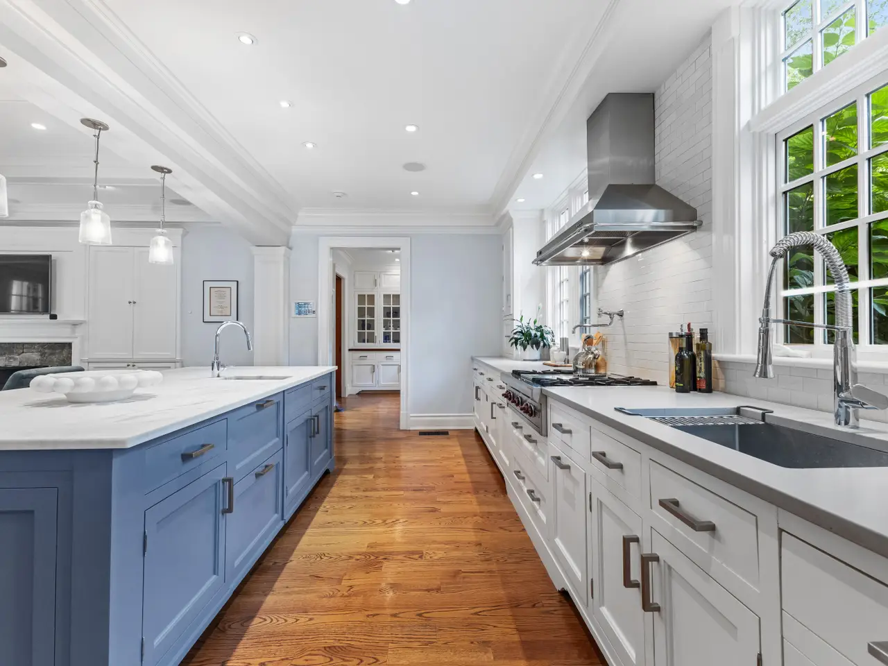 Nestled on a beloved tree-lined cul-de-sac, this custom-built residence perfectly blends a traditional coastal Connecticut shingle style with a sun-filled, modern open-plan interior all just steps from Riverside Yacht Club, schools, and train. Thoughtfully designed, the home incorporates bespoke architectural elements including tall ceilings, custom millwork, expansive windows and wide-plank oak flooring throughout. With 6,600-plus square feet of living space across two levels, it seamlessly blends formal and informal spaces to accommodate a variety of lifestyles. The gracious entry opens to wide hallways ideal for art placement. A handsome study, with rich paneling and a fireplace, delivers the perfect balance of functionality and style, serving as both a productive workspace and a peaceful retreat. The recently renovated kitchen is bright and contemporary with Caesarstone and Carrara marble countertops and a large island adjoining the coffered ceiling family room featuring long wall of windows and doors brings the natural beauty of the private grounds indoors. A classic tailored stairway leads to the second level and five spacious ensuite bedrooms, highlighted by a spectacular primary suite that is a true sanctuary featuring two fireplaces, a sitting area, and fabulous custom closets. An additional bedroom on the first floor is ideal for guests or staff. There is 3,200+ square feet of unfinished space in the lower level, with generous 9-foot ceilings providing incredible potential for customization. The outdoor space is exceptionally private with a lovely stone terrace for lounging or dining al fresco overlooking the broad open lawn for play. There is a full-house generator, garaging for 3 cars and a potential pool site as well. This unparalleled residence on Jones Park Drive offers not only the highest level of construction, but a vibrant lifestyle and one of Riverside's most coveted locations. An opportunity like this is not to be missed.
