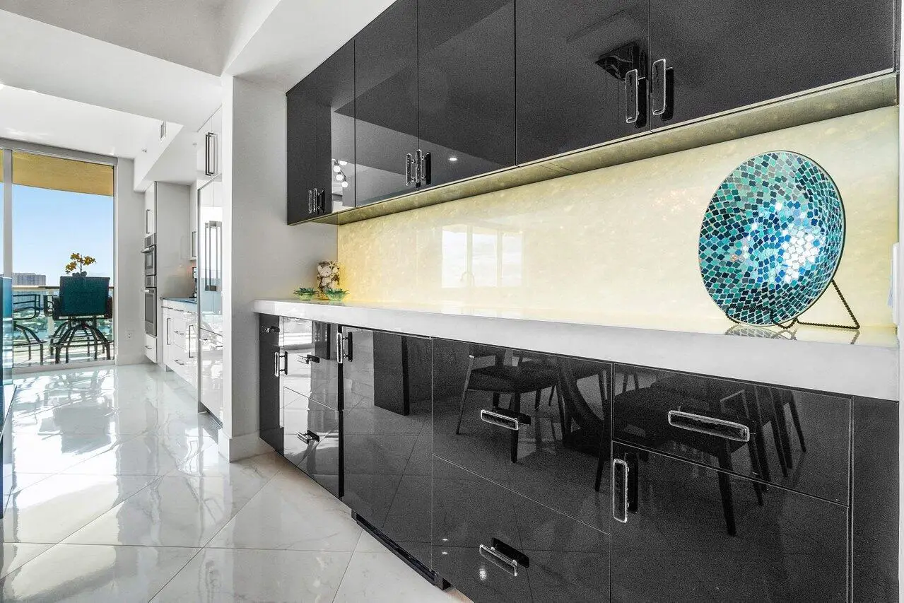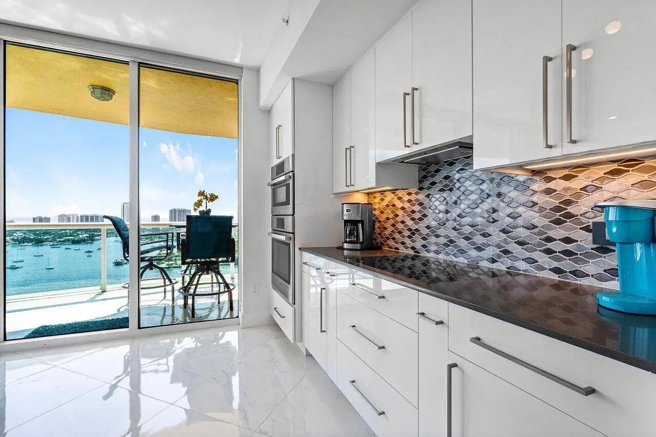 Rare 3BR end unit, completely remodeled and offered fully furnished! Amazing 23rd floor Intracoastal to ocean views! Bosch appliances & HVAC, Fisker & Peykal fridge, double ovens, induction stove, onyx bar w wine cooler. Italian porcelain floors, California closets. Spacious owners suite w his/her walk-in closets. Primary bath w/double vanity, jetted bath & water closet. corner unit/split floor plan, impact glass, semi-private elevator access. 24/7 manned gate, valet, new rooftop oasis w/pool, spa, BBQ areas, tennis, pickleball, bocce. Clubhouse, fitness, billiard room. assigned covered parking close to elevator, climate-controlled storage unit. Adjacent dry dock marina, no fixed bridges, minutes to ocean. Waterfront walking path w/gazebo with pet friendly walking path!