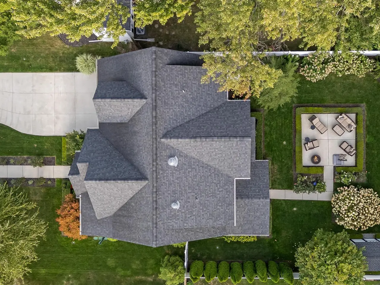 Outdoor fireplace and TV on covered patio
