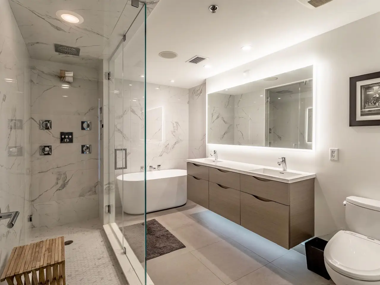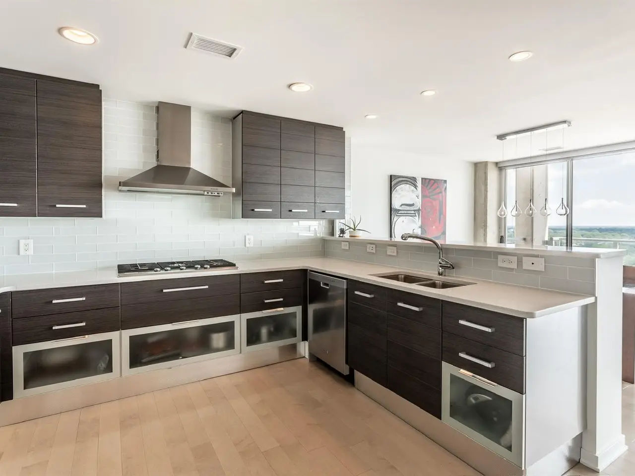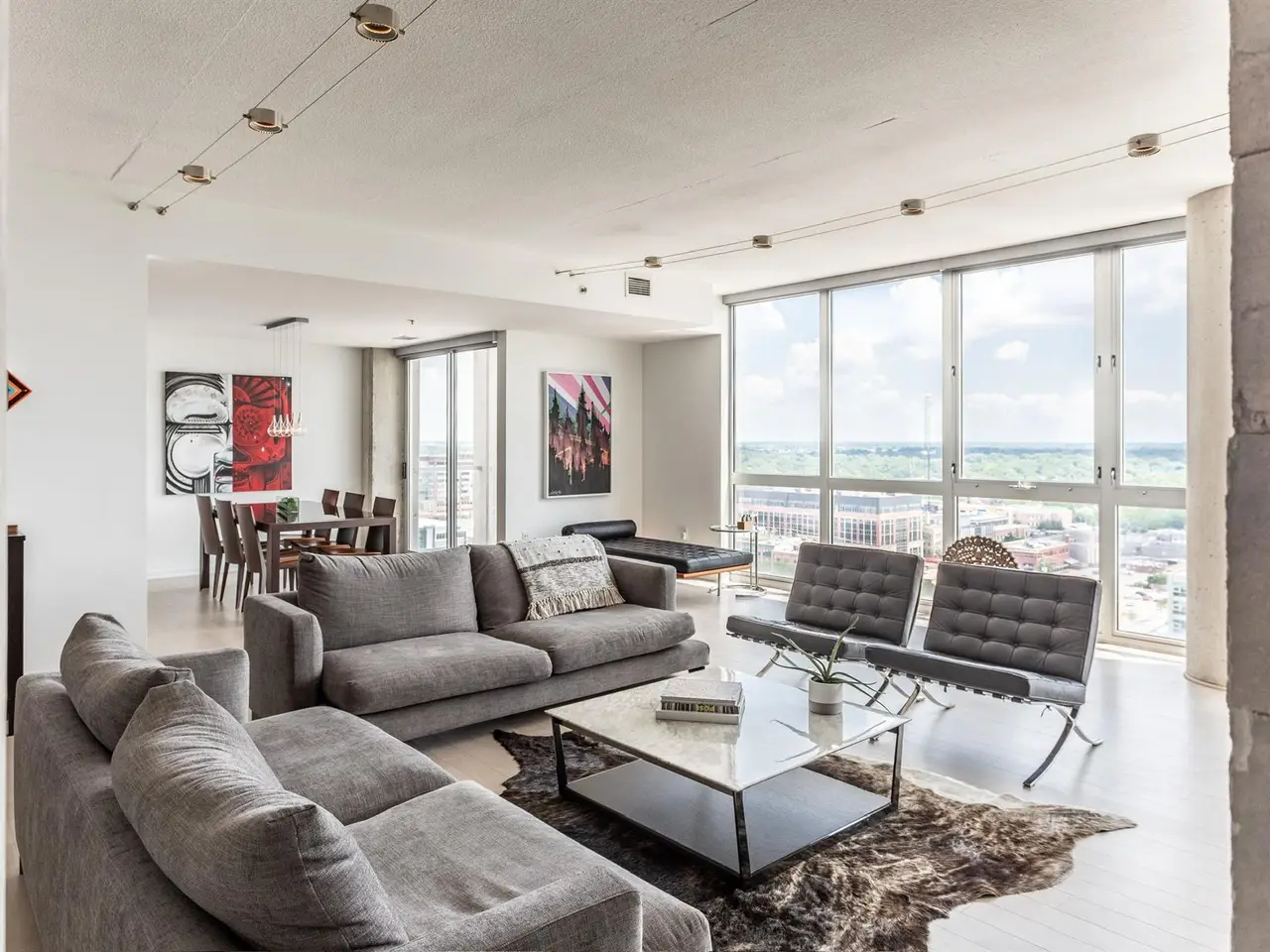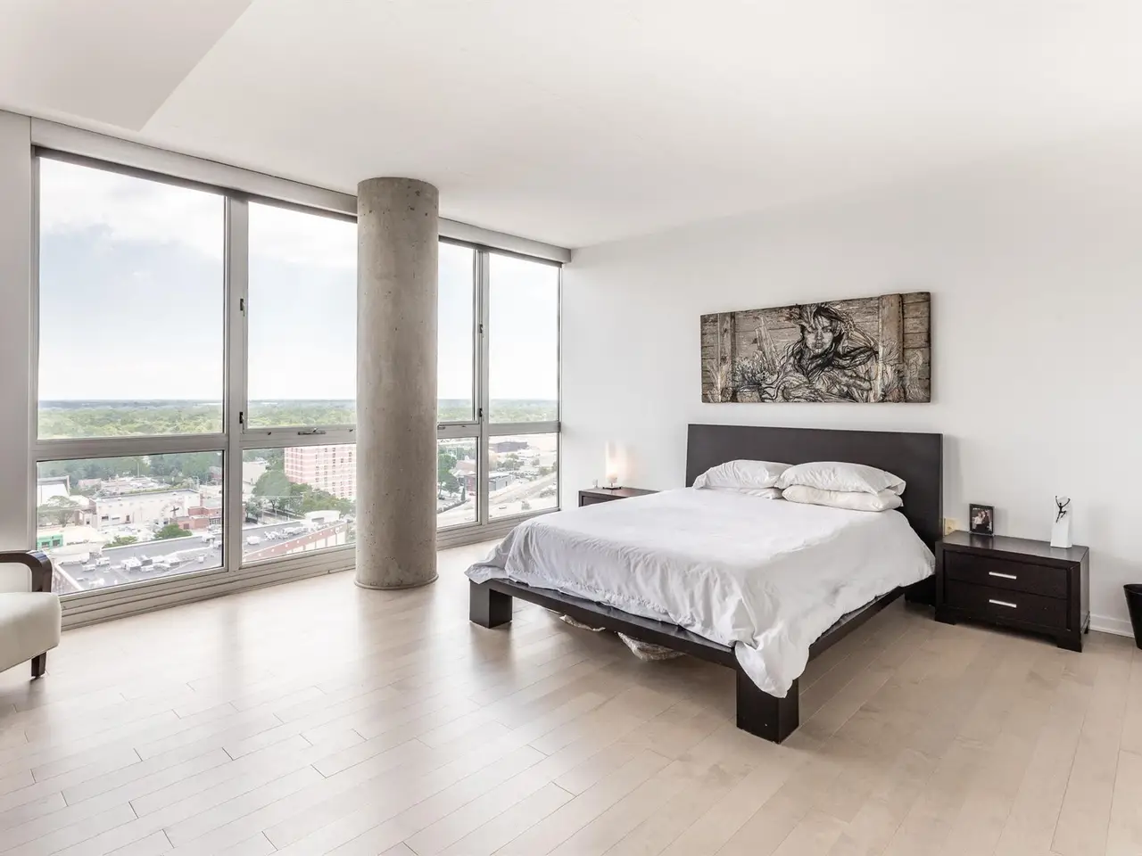 Experience the epitome of luxury at The Fifth! This updated, Penthouse embodies sophistication with its expansive open layout and private balconies, providing an unparalleled vantage point for breathtaking sunrises and stunning panoramic views of the metro area including the iconic Detroit Skyline. The walls of windows infuse the space with natural light, beautifully highlighting the elegant hardwood floors and lofty ceilings throughout. Designed for the culinary enthusiast, the chef's kitchen is a masterpiece, featuring custom cabinetry, quartz countertops, premium stainless steel appliances, and a convenient bar seating area. The spacious primary suite includes a generous walk-in closet and an opulent bathroom, complete with a jetted tub, steam shower, and a double sink designer floating vanity. The second bedroom suite offers a private bath, while the third bedroom provides access to the second balcony, creating a serene retreat. Embrace the pinnacle of convenience with the Crestron home automation system, managing your blinds, lighting, temperature, and music with ease. Secure, heated garage parking for two vehicles is included, and residents benefit from doorman, on-site fitness center, and an array of shops and restaurants just steps away. Live the lifestyle you deserve at The Fifth.