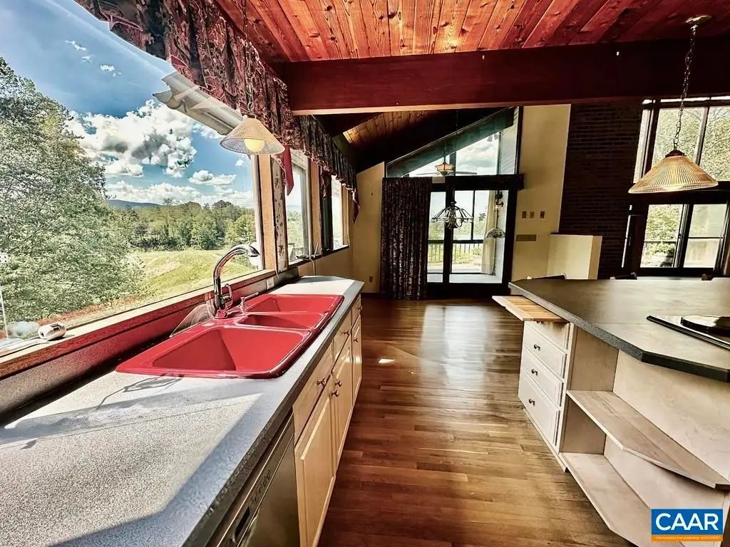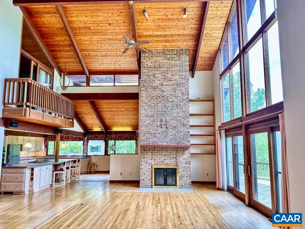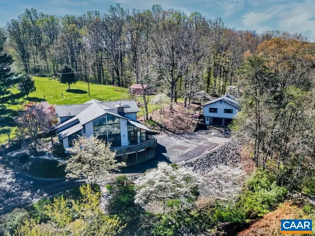 Stunning contemporary retreat on premier lot in Greene Mountain Lake. Built 1991, thoughtfully maintained, unique home offers soaring ceilings, walls of glass and panoramic views of the Lake. Enjoy morning, coffee or evening sunsets from expansive decks overlooking the water. The open concept living spaces are filled with natural light blending with modern architecture and the tranquility of a wooded waterfront setting. Minutes to Charlottesville. This home is a perfect blend of privacy and accessibility for the ideal get away or year-round living. Enjoy the photo gallery & plan to visit.