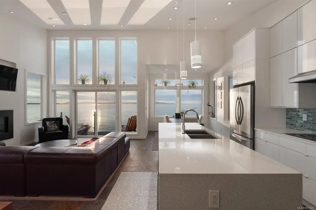Experience oceanfront living on Cordova Bay’s sandy shores in this 3,527 square foot West Coast contemporary. Four levels of light-filled living offer panoramic views of the Salish Sea and Gulf Islands. The main floor features vaulted ceilings, a gourmet kitchen and seamless indoor/outdoor flow to ocean view patios. The primary suite boasts a private balcony, walk-in closet and spa-like ensuite. Lower levels provide self-contained spaces with full kitchens, living areas and private entries—ideal for guests or multi-generational living. Step onto your beachfront patio for sunrise coffee or launch your kayak from the sand. Complete with oversized garage, multiple outdoor spaces and low-maintenance landscaping, this move-in-ready waterfront home offers the best of seaside living in one of Victoria’s most coveted communities.