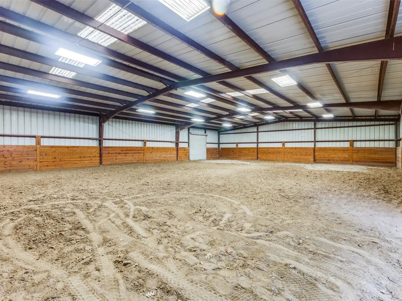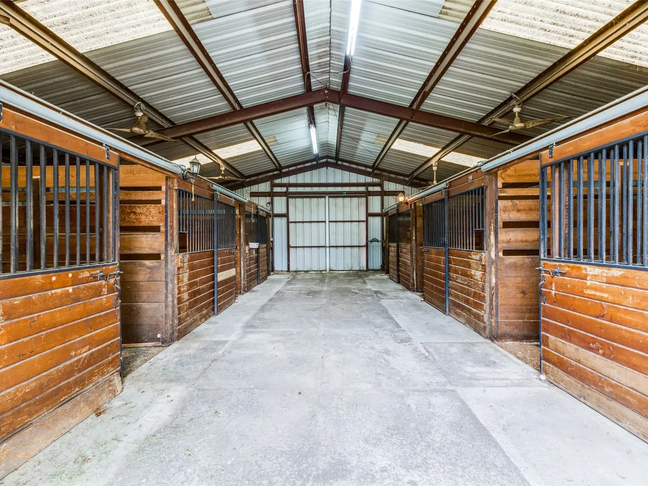 Equestrian property in desirable location - perfect for professional trainer or amateur enthusiast! Property highlights include: Main barn with six 12x12 stalls, Pyrhana automatic fly spray system, wired for 220V, tack room, feed room, large laundry room with full size washer & dryer connections and additional storage space, wash bay with heat lamps, full bathroom, hay loft, garage parking for four vehicles with space for golf cart or ATV, staff living quarters with two bedrooms, full bathroom, and kitchenette. Shavings storage located close to main barn. Second barn has six 12x12 stalls, Pyrhana automatic fly spray system. Five additional run in stalls located close to second barn. Lighted indoor arena with kick wall has sliding doors on one long side and roll up door on opposite long side. Lighted outdoor arena with improved footing and perimeter railing. Six individual paddocks fenced with two rail wood fencing. Storage shed for equipment. Pond located at the back of the property. Four bedroom three and a half bath home located at front of property with gated entrance and circle drive needs work. In ground pool with slide, large open flagstone patio off of sunroom located at back of home, separately fenced backyard for pets, attached two car garage. Close proximity to shopping and dining at Firewheel Town Center and easy access to SH 78 and PGBT.