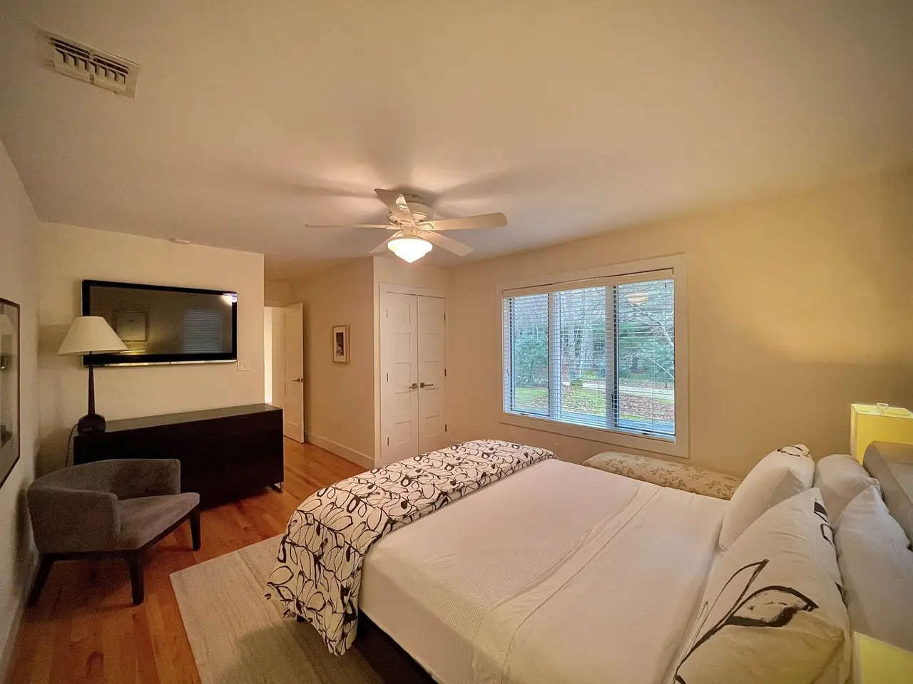 This beautiful, slick, modern Sagaponack home in a top location on a quiet street backing up to a reserve make this 1.5 acres full of privacy and just less than 2 miles to the ocean. This beautifully immaculate home is newly-renovated, featuring an open concept living area with vaulted ceilings and fireplace, top-of-the-line kitchen, den/TV room and office with fireplace. A total of four bedrooms, three and a half baths, two ground floor en-suite primary bedrooms, plus two guest bedrooms on the second floor. A wall of glass doors leads you to an expansive deck which runs the length of the house and takes you to the 20x40 heated pool. This house is the perfect Hamptons retreat. Available in winter and summer 2023.