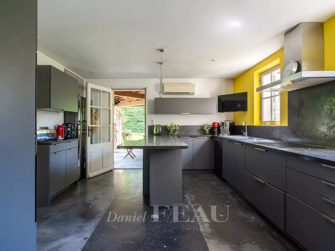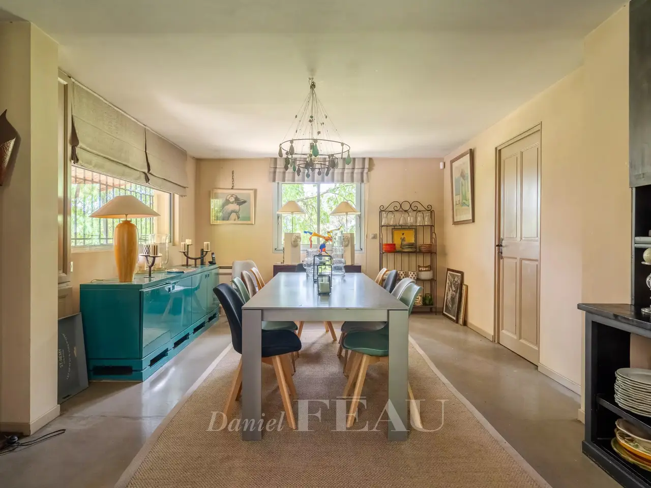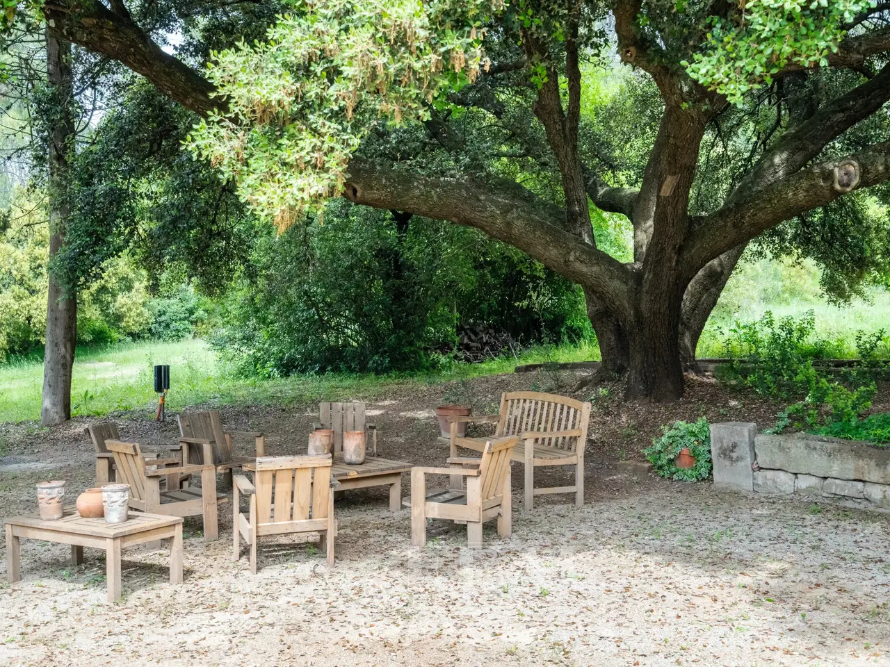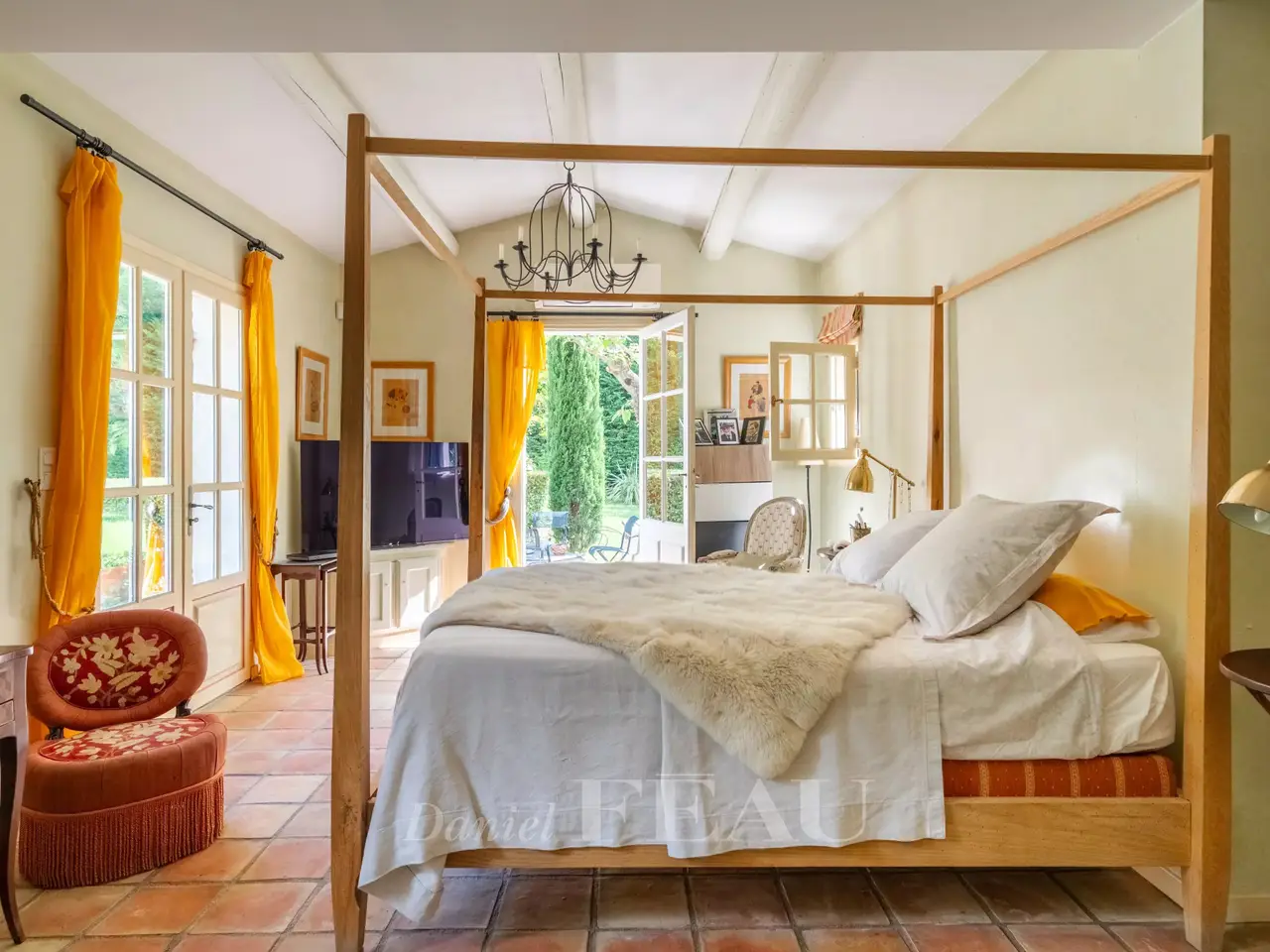 This delightful near 245 sqm property dating from the 1980s is set in over 6000 sqm of leafy grounds on the edge of a hillside at the foot of the Alpilles mountain range. Bright and functional, it includes a spacious living/reception room with a stone fireplace, a kitchen/dining room, two suites each with a shower room and dressing room, and a third bedroom with a shower room adjacent to a charming patio. Two further bedrooms sharing a shower room are upstairs. The enclosed grounds feature several terraces, and a 17 x 7 metre swimming pool with a spacious pool house. Carport, motorized gates, automatic sprinkling.
