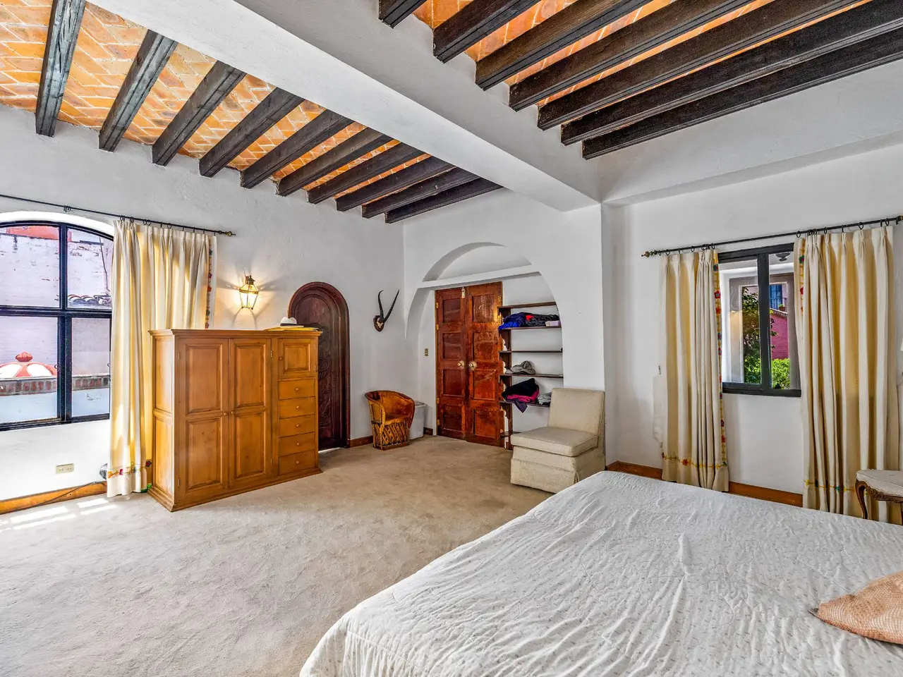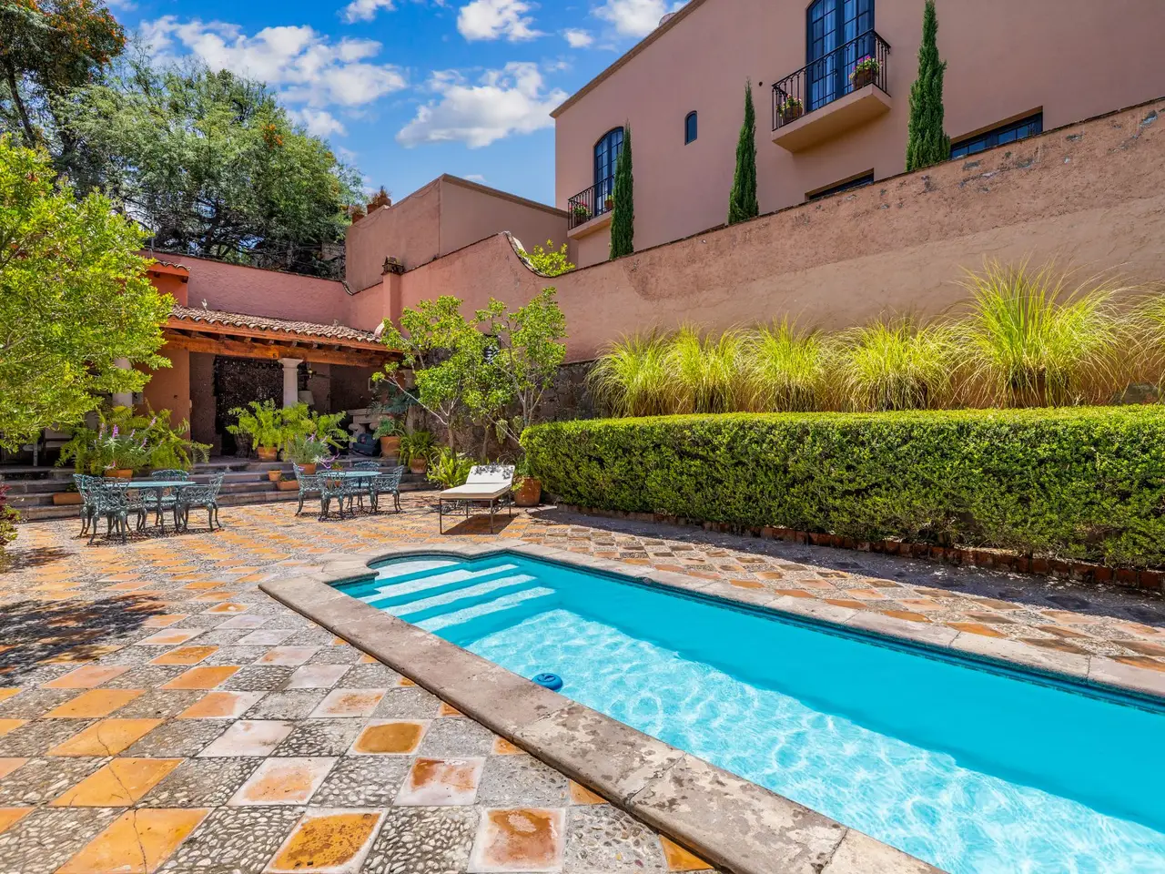 Casa Peaches is truly a diamond in the rough, perfect for the discerning buyer who appreciates the character and authenticity of a traditional San Miguel home. Built over 50 years ago, this residence sits in Guadiana, one of San Miguel de Allende’s most coveted neighborhoods. Known for its leafy park, tranquil streets, and nearly flat walk to the historic center, Guadiana offers a rare blend of peace, beauty, and convenience. Just steps away you’ll find the city’s iconic Juárez Park, the popular Mercado Sano organic market, charming cafés, galleries, and restaurants. Inside, Casa Peaches exudes colonial charm with a solid structure that transcends time. A wide entry corridor welcomes you, linking the light-filled living room to the left with a gracious hacienda-style patio to the right. Just off the entry sits the versatile green room—ideal as a guest suite or TV room—with an en-suite bath. Toward the back of the house, the spacious double dining room with fireplace and dramatic bóveda ceilings overlooks the grand patio. The adjoining kitchen and breakfast room are generous in size and ideal for family gatherings. Also on this level, a large principal bedroom with an en-suite bath and soaking tub provides comfortable one-level living. The second floor offers flexibility with three guest bedrooms, two sharing a bath, plus another large bedroom that could easily serve as a second principal suite, library, or den. Outdoors, the property unfolds over 9,256 square feet, featuring a pool and pool house that invite entertaining and relaxation, enhancing the sense of privacy and serenity. Open spaces frame beautiful views in the upper terraces. Key Features 1. Authentic colonial home with solid 50+ year construction 2. Spacious living and dining areas with fireplace and bóveda ceilings 3. 6+ bedrooms including flexible guest and principal suites 4. Large hacienda-style patio and multiple entertaining areas 5. Pool and pool house for gatherings and leisure 6. Walking distance to Juárez Park and San Miguel’s historic center 7. Convenient to Mercado Sano, cafés, restaurants, and galleries Casa Peaches offers a rare opportunity to restore and personalize a classic San Miguel home in one of the city’s most desirable neighborhoods.
