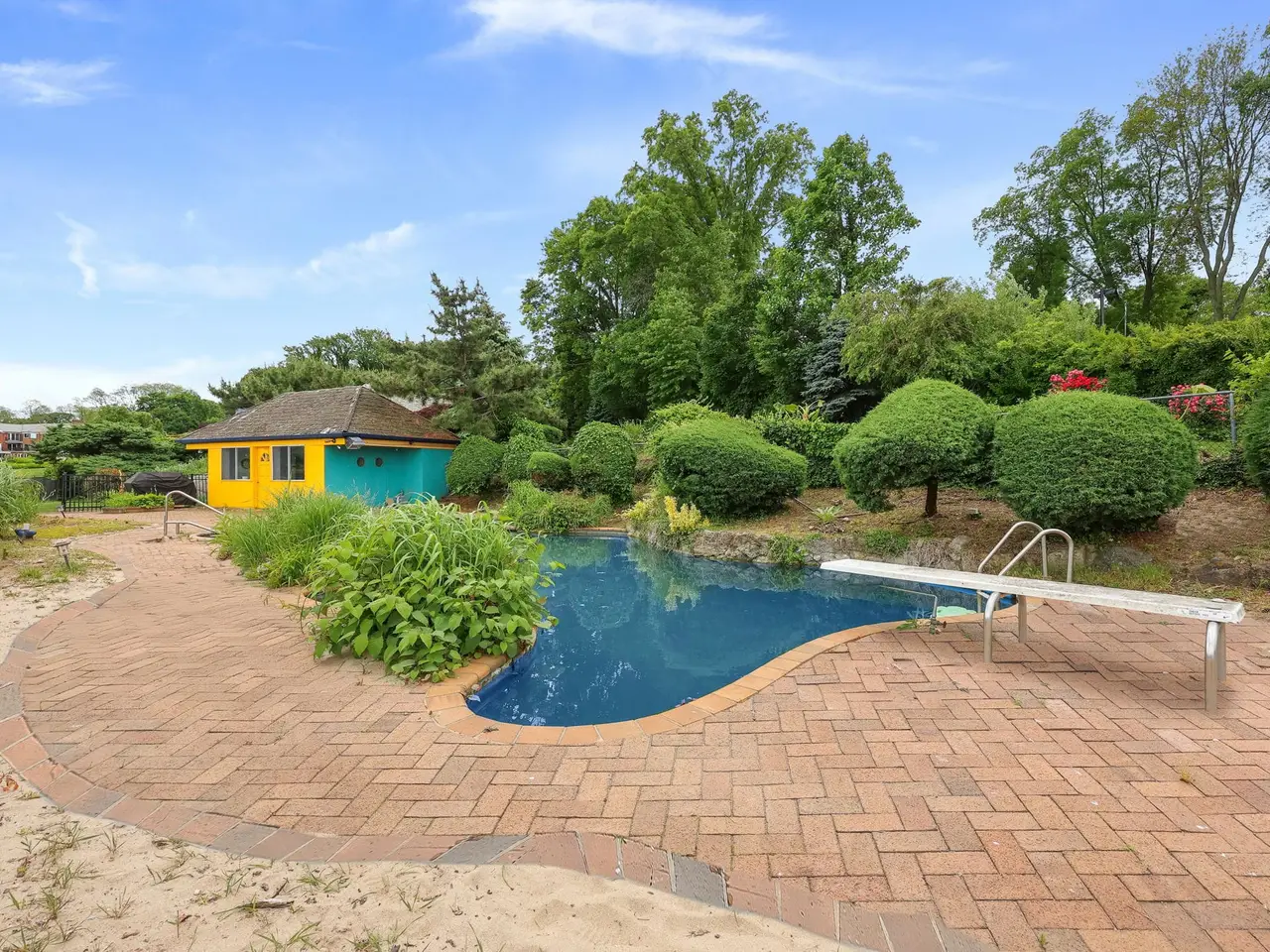Open floor plan, Preached high above with panoramic water views from every room, this exceptional waterfront ranch offers an unparalleled lifestyle in one of Sands Point's most prestigious and private enclaves. Nestled on over an acre of lush, landscaped grounds, the property exudes serenity and grandeur. This historic estate has been meticulously reimagined into a bespoke masterpiece, where timeless architecture meets sophisticated modern design. Every detail has been thoroughly curated to preserve classic charm while while incorporating today's most elegant finishes. This open and expansive layout, offers versatile spaces ideal for both everyday living and grand entertaining - all oriented to capture the home's sweeping water views. water front, beach, Featuring 5 bedrooms, 3 full baths and a powder room, Library, Deck the main residence offers beautifully proportioned rooms filled with natural light and framed by expensive windows that showcase sweeping panoramic views. Inground Pool fenced in with Pool House with Full Bathroom. This property is inspired by the architecture of Falaise, the Henry F. Guggenheim estate which is now Sands Point Preserve.