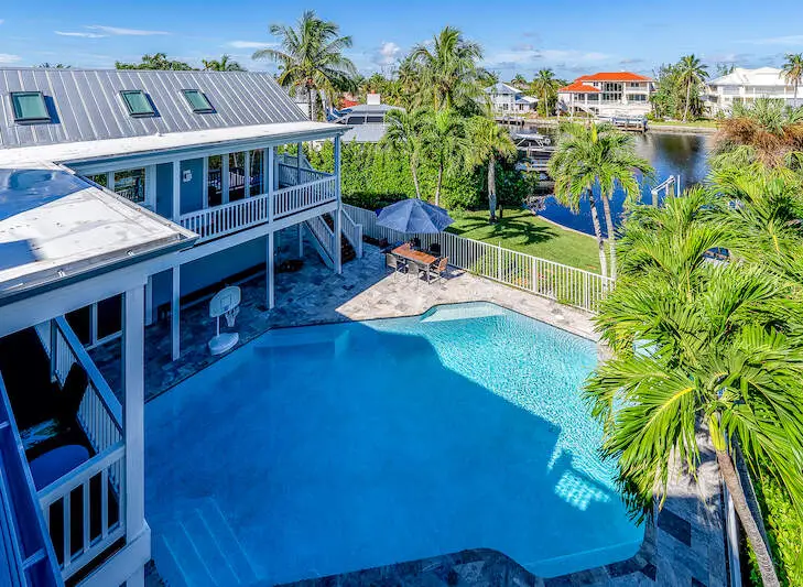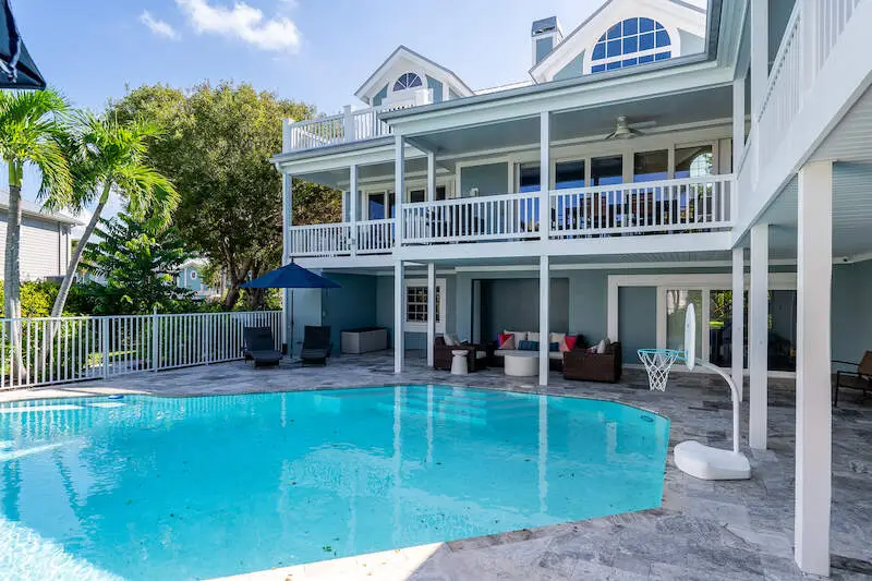 A masterpiece of design and craftsmanship awaits in this one-of-a-kind estate on Sanibel Island. Situated on over 1/2 an acre of lush, tropical landscaping framed by swaying palms, the meticulously remodeled home offers direct deep-water access from a private boat dock on a sea-walled canal, providing seamless passage to the Gulf. Every detail of this residence has been thoughtfully crafted to create a space where traditional elegance blends effortlessly with modern luxury, and each room stands out like a unique work of art. Inside, soaring ceilings and Brazilian cherry wood floors set an elegant tone, while oversized custom impact windows and sliders fill the home with natural light, showcasing breathtaking views. The great room's custom stone fireplace serves as a focal point, adding character and warmth, while the newly renovated kitchen impresses with European appliances and custom cabinetry. Luxury extends throughout the home, including updated bathrooms and designer touches in every corner. A private elevator ensures easy access to all levels, and recent updates such as a newer roof, A/C, impact windows, and Hardi-board siding demonstrate the commitment to quality. The outdoor space is just as exceptional, with a sprawling deck overlooking the large pool and spillover spa, perfect for entertaining or unwinding in your tropical oasis. The mature trees and meticulously planned landscaping provide privacy and a serene atmosphere to soak up the Florida sun. Ample storage is available with custom closets in every room, a spacious 3-car garage, and additional storage space on the main level. Located on Sanibel Island's desirable east end, this home offers convenience with easy access on and off the island. It's just a short walk to the beach, marina, fine dining, and boutique shopping, all while being nestled in a tranquil setting. This estate is not just a home; it's a work of art and a rare opportunity to experience paradise found on Sanibel Island.