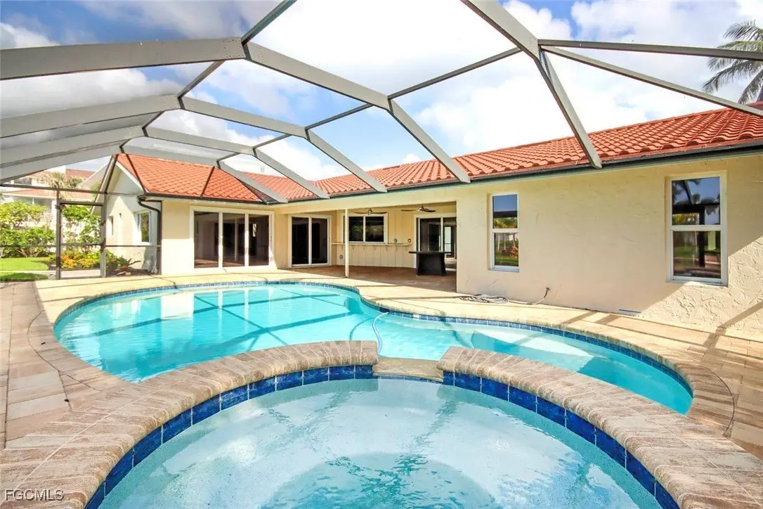 The ultimate Sanibel retreat is ready for you! Located in the sought after neighborhood of Shell Harbor, this luxurious and spacious, easy living home is totally remodeled with a new stone coated, steel roof in 2021. This 3 bedroom, 2 and 1/2 bath, home features all impact windows and doors, new kitchen and baths with quartz counters and beautiful tile showers throughout. Versatile extra living space off the kitchen/living room could be a den, office, exercise room with extra space for the grandchildren. Easy maintenance, LVP flooring throughout and a laundry room with two, full size stack washers and dryers. Designed for entertaining, the wall of living room sliders provides a stunning view of the pool, spa, professionally landscaped lawn and waterway. New dock with 14,000# lift, new landscaping and irrigation. Kings Crown Dr. is located on the sought after east end of Sanibel Island, just a quick walk or bike ride to the beach along with deeded beach access with parking at the end of Lindgren. Easy access on and off the island and a close proximity to restaurants, shopping, shelling and water sports. This is the perfect home to enjoy all that Sanibel has to offer!