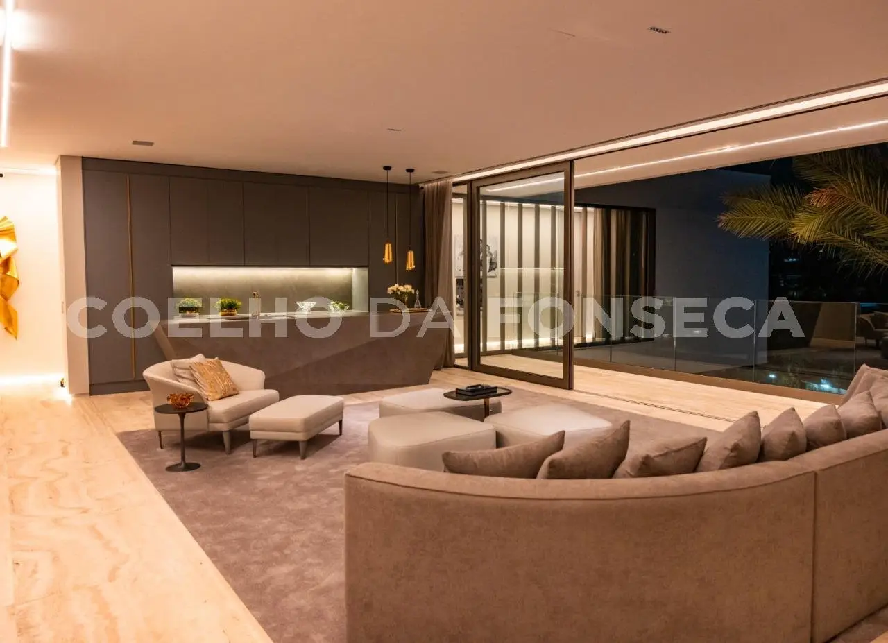 An ultra-exclusive mansion with an area of ​​2,159 square meters that provide maximum comfort Located in the highest area of ​​the Tamboré II condominium, the house offers a spectacular panoramic view, highlighting the natural beauty of the project. The façade is glamorous, with airplane wing brises, porte-cochère, vertical garden and a reflecting pool. The sumptuous entrance has a double-height ceiling and a sculptural staircase. The 5-meter linear gas fireplace is covered in Armani Gris. There is a piano bar, a bar island with Onyx stone illuminated by a cascade of 48 suspended gold pendants. The dining room has a Baccarat-style chandelier and an exclusive Onyx stone dining table measuring over 5 meters. The large gourmet space has a Calacata island measuring almost 8 meters long and a 5-meter mega video screen for a spectacular image. The entire space is covered in Italian Navona marble, including the infinity pool. There is a spa on the lower floor with a heated pool, massage room, torch and vertical garden, providing a revitalizing environment for moments of relaxation. The mansion also has 2 elevators, a home cinema bar, sauna, piano bar and a balcony with views of the entire house. The office has a walk-in wine cellar and there are 6 suites, including a super master suite with a Calacatta-clad fireplace, a closet with 2 islands and a dressing room. The showcase garage in the basement offers panoramic views and accommodates 9 parking spaces. Everything was designed to provide privacy to residents, with separate social and service spaces and circulation.