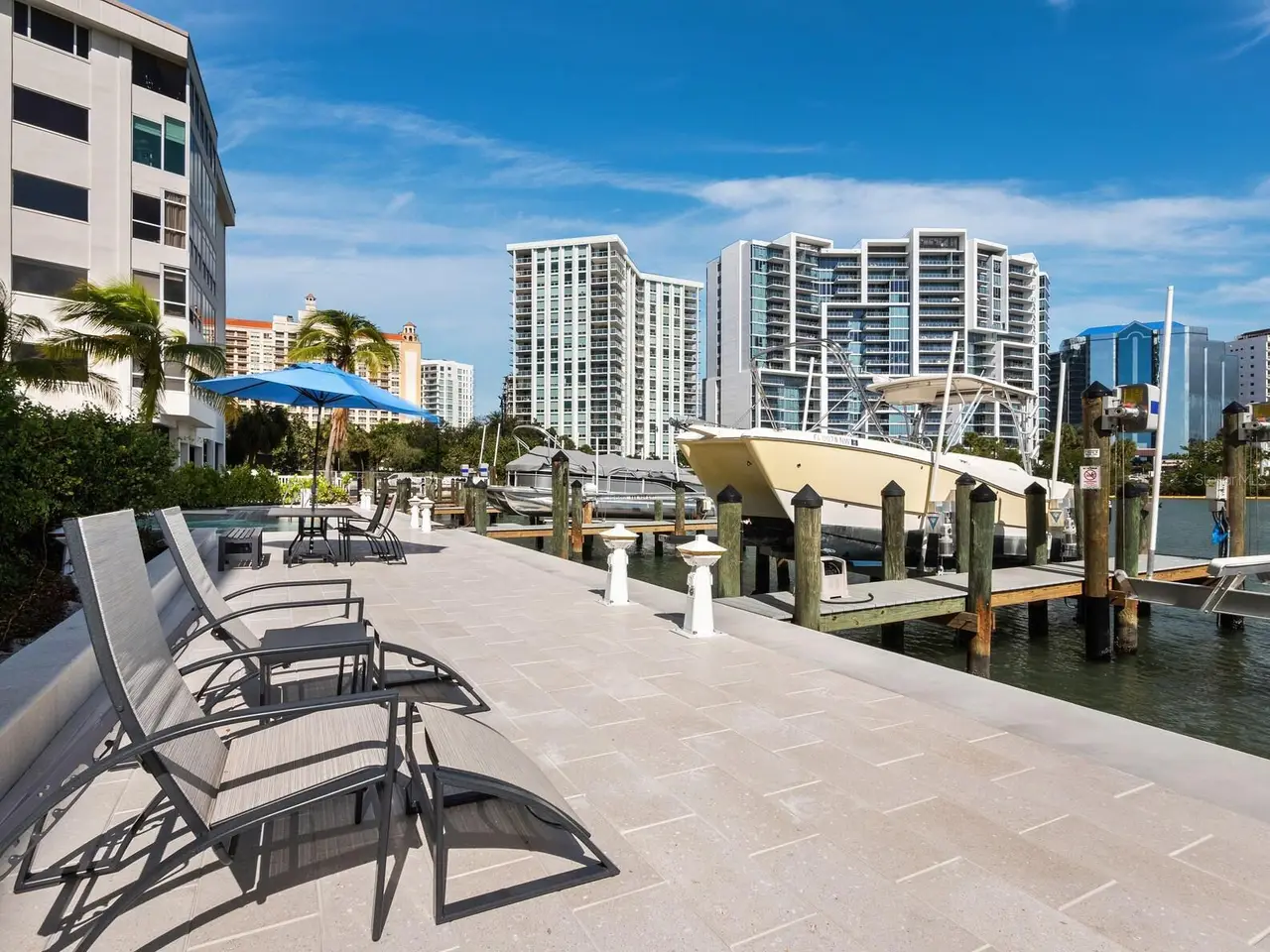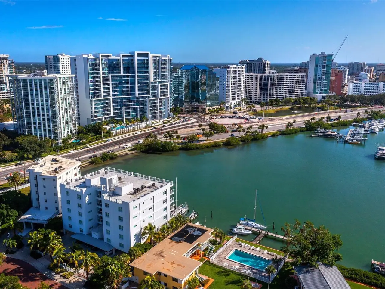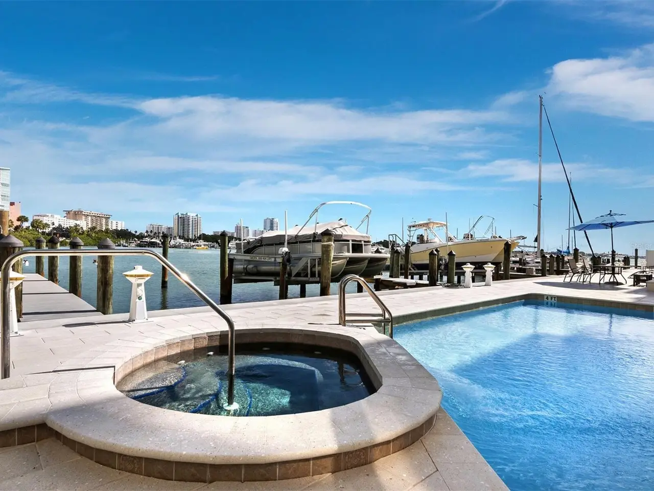 Nestled on a private 22-acre peninsula on Sarasota Bay at Golden Gate Point, this stunning 14-unit boutique condominium epitomizes the ultimate in luxury living, offering an unparalleled blend of location, design, and sophisticated elegance. The Harbor View building, a modern architectural masterpiece, underwent an extensive renovation in 2017-2018, with over $1.5 million invested in premium upgrades. Every detail has been thoughtfully curated to ensure the highest level of comfort and style. From the floor-to-ceiling sliders to the unobstructed panoramic water views that stretch from sunrise over Sarasota Bay to the sparkling lights of the downtown skyline, this residence provides a truly breathtaking setting. Step outside onto your expansive terrace to watch the vibrant marina activity at Marina Jack's or simply unwind with a favorite drink as boats gracefully glide by. The property offers a host of luxurious amenities, including a heated pool and spa, outdoor grilling area, and a private shower-perfect for both relaxation and entertaining in paradise. Just four blocks from the best of downtown Sarasota, you're close to fine dining, upscale shopping, and cultural venues, with quick access to St. Armands Circle, renowned beaches, golf courses, the Ritz Carlton fitness and spa, and tennis clubs. Inside, this spacious condominium features 2 generously sized bedrooms plus a large den, ideal as a third bedroom or home office. The open-concept living area is perfect for entertaining, with a chef's kitchen outfitted with high-end Thermador gas range, Sub-Zero refrigerator, sleek granite countertops, and a large island. A convenient powder room is available for guests, and both ensuite bedrooms feature walk-in closets and elegantly designed granite and tile bathrooms. The home also includes two designated parking spaces (#23 and #24) and private exterior storage (3x6x9). With its prime location, this residence offers excellent rental income potential. The master suite is a true retreat, featuring an abundance of natural light, a spacious walk-in closet, and a lavish master bath with double vanities, a deep garden tub, and a walk-in shower. Beyond the property, the central location offers an enviable lifestyle-just steps from the vibrant cultural scene, dining, and shopping in downtown Sarasota. A short bike ride brings you to the pristine sands of Lido Beach. Imagine enjoying iconic events such as the 4th of July fireworks from the comfort of your own home, with world-renowned Gulf beaches and St. Armand's Circle just minutes away. Whether you're looking for a serene waterfront retreat or an exceptional space to entertain guests, this exquisitely renovated condominium offers the best of both worlds-sweeping views, premium finishes, and an unbeatable location in the heart of Sarasota's waterfront.