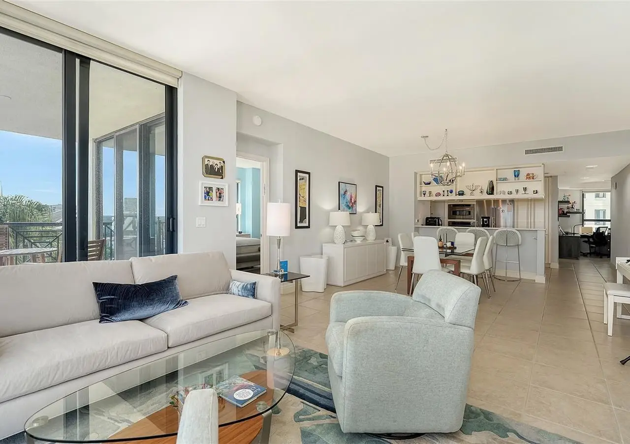 Lavish boutique living in the heart of Downtown Sarasota awaits at the Plaza at Five Points. This tastefully updated, turnkey 2-bedroom, 2-bath condo residence, offers city living with refined style and comfort. A spacious entry foyer with a dedicated office nook provides a practical and welcoming first impression ideal for year-round living or an stress-free seasonal retreat. The kitchen features sleek quartz countertops and newer, high-quality appliances. The primary en-suite bedroom showcases beautiful city views, a California-style walk-in closet, and access to the private lanai. The guest bedroom is generously sized and offers equally charming downtown vistas. The lanai is accessible from both the living room and the primary bedroom, providing a seamless indoor-outdoor flow. Additional features include two deeded garage parking spaces conveniently located near the lobby, and a private storage room. Building security includes controlled access at all entry points and elevators, ensuring peace of mind. Enjoy an elevated lifestyle with luxurious amenities including front desk concierge service, front desk steward, valet parking, rooftop heated pool and spa, outdoor grilling area, cabana with gazebo, a well-equipped fitness center, community room with catering kitchen and fireplace, conference room, and a guest suite available for weekly reservations. Step out of your lobby into Sarasota's vibrant arts and entertainment district. Just a short stroll to the Sarasota Opera House, theaters, live music venues, art galleries, eclectic shopping, and top-rated dining. Whole Foods is around the corner for added convenience. The Bayfront and Marina Jack are just minutes away, offering a variety of boating and waterfront activities. Easy access St. Armands Circle, Lido Beach, Longboat Key, and world-renowned Siesta Key Beach. The Sarasota-Bradenton International Airport, Selby Botanical Gardens, Van Wezel Performing Arts Center, and the Asolo Repertory Theatre are all within a short drive. The building performs like a champ during hurricanes and storms. Residences with this floor plan in 'The Plaza at Five Points' are rarely available schedule your private or virtual showing today. Vacant and easy to show.
