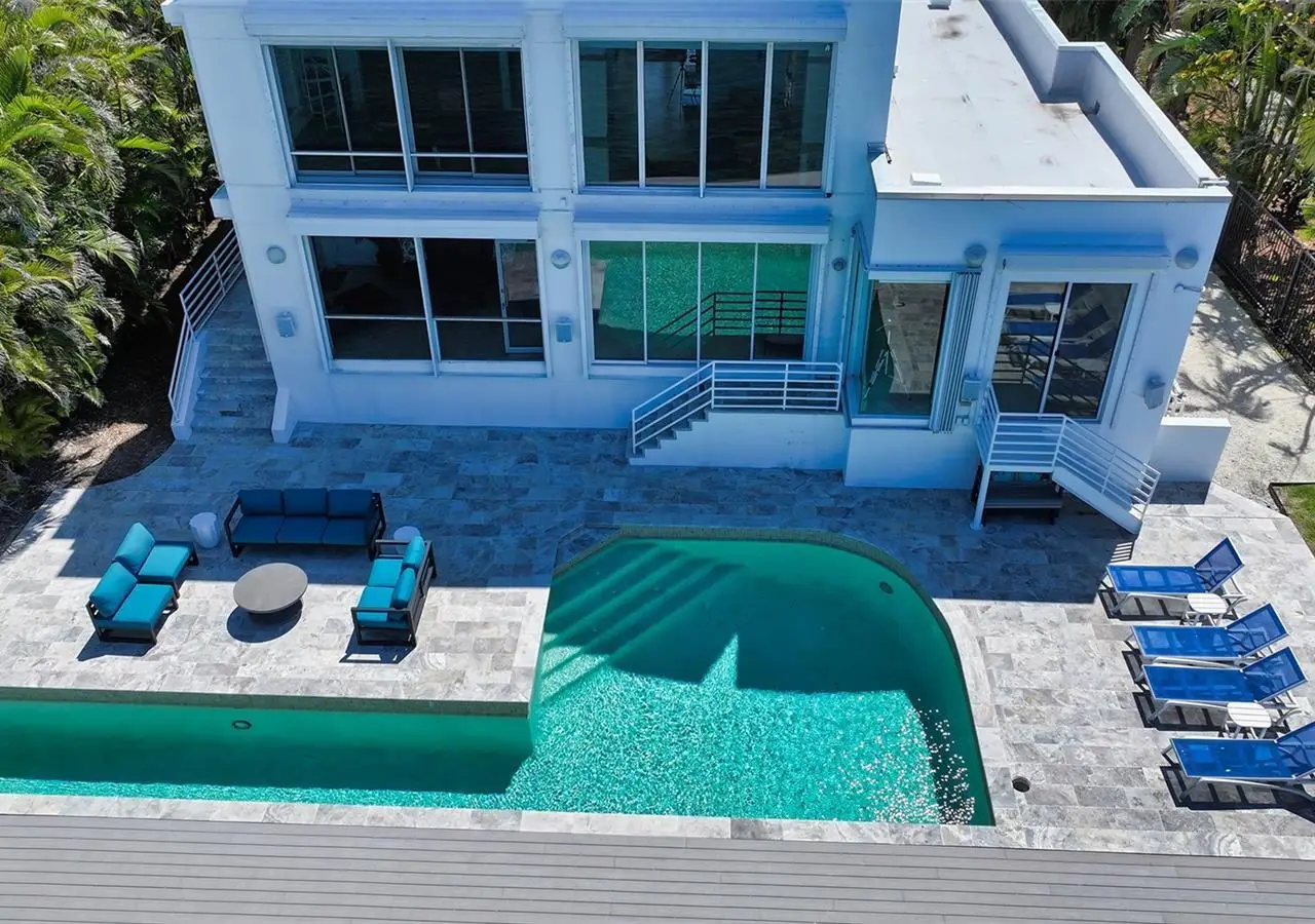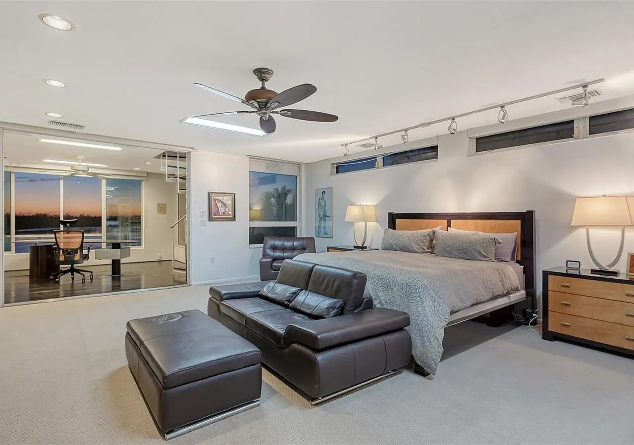 Owner has priced to sell this one-of-a-kind modern masterpiece, ideally positioned on premier boating water with sweeping, unobstructed views of the Bay and Gulf of Mexico. This exceptional residence offers a rare blend of architectural elegance and coastal sophistication, all within walking distance to the fine dining, boutiques, and cultural charm of St. Armands Circle. Floor-to-ceiling windows and soaring ceilings flood the home with natural light, while framing the mesmerizing water vistas from nearly every room. Designed for the discerning buyer, the gourmet kitchen features top-of-the-line Thermador appliances, including a newer refrigerator, wine cooler, and a professional-grade 6-burner gas range. The expansive floor plan includes four bedrooms and four bathrooms, highlighted by a serene upstairs primary suite with a private enclosed sunroom - currently serving as a tranquil home office. Meticulously maintained, the home boasts a brand-new roof (2024), a recently replaced seawall (2017), and dual-zoned Rheem AC systems. Additional features include electric hurricane shutters on most major windows, a whole-home speaker system, and lush, mature landscaping complemented by a secure gated entrance that enhances both privacy and curb appeal. The rooftop terrace offers a breathtaking vantage point for sunset views over the Gulf, completing this unparalleled offering. A true sanctuary for those seeking refined waterfront living.