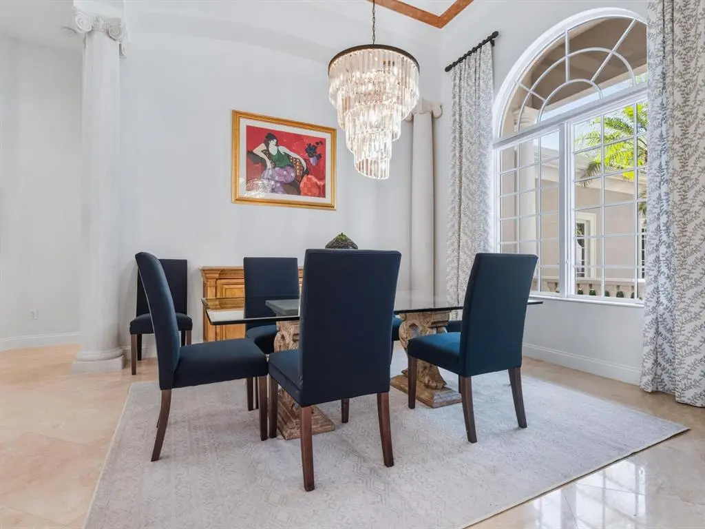 Lakefront masterpiece in the prestigious Founders Club. Crafted by renowned builder Todd Johnston, this 5 bedroom, 5.5 bathroom home offers 6,800 square feet of sophisticated living space. Luxurious craftsmanship abounds as you enter through the grand formal double-door entry featuring a mosaic marble inlay opening to coffered ceilings soaring above elegant hardwood and travertine marble floors throughout. Extensive millwork and hand built cabinetry highlight quality at every step. The gourmet kitchen boasts double Sub-Zero refrigerators, a six-burner Viking gas range with griddle, and a dedicated wine room with 100 bottle storage and double wine fridges. The luxurious owners wing encompasses the primary bedroom, palatial bathroom, two large walk-in closets, and two additional bonus rooms perfect for a nursery, wellness space, secondary office, or additional living space. A spacious home theater is adjacent to this luxurious wing. Also on the first floor you'll find a large and sophisticated study with exquisitely crafted cabinetry and built-in book case for professionals woking from home or private reading space. Guests will appreciate the first-floor guest suite with en suite bathroom, wet bar, and refrigerator. The downstairs bonus room offers flexibility as a fifth bedroom or game room. Upstairs are two more bedrooms each with their own bathroom as well as a large family room and balcony. This estate lot brings sweeping views of the lake and golf course from the manicured lawns and the heated saltwater pool and spa surrounded by tumbled marble pavers and a fully equipped outdoor kitchen - ideal for entertaining. A whole house generator, new roof (2020) and newer AC units. Residents of The Founders Club enjoy world-class amenities, including an 18-hole Robert Trent Jones Jr. golf course, elegant clubhouse with dining, fitness center, tennis and basketball courts, sand volleyball, and scenic walking trails. Don't miss the opportunity to make this magnificent home yours!