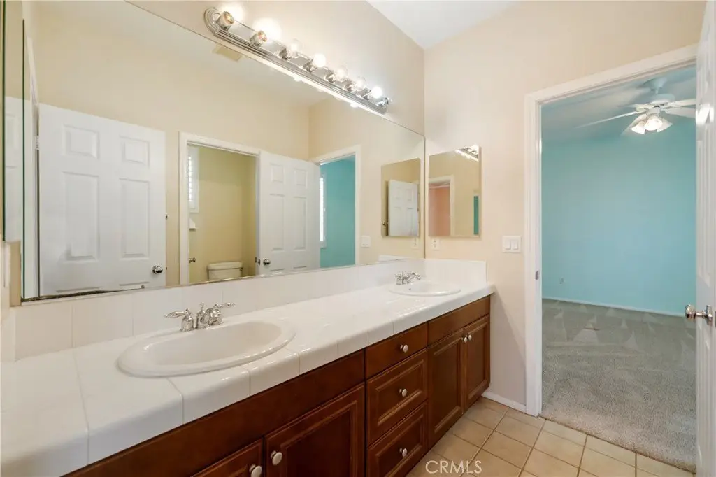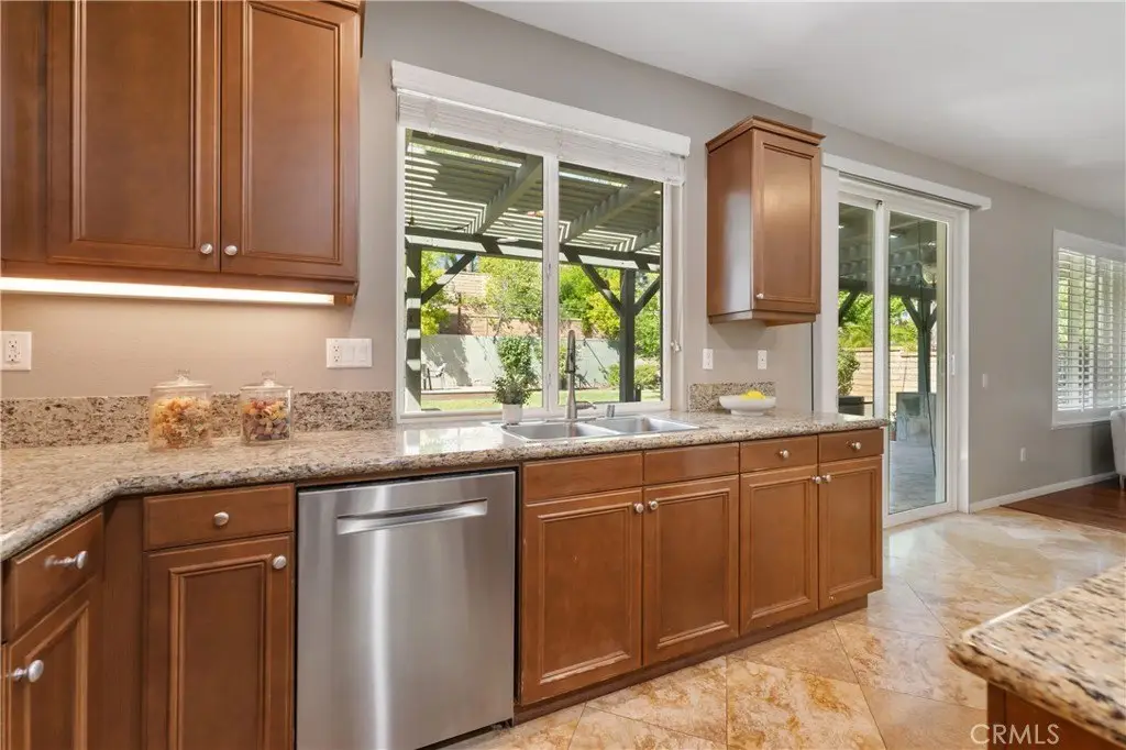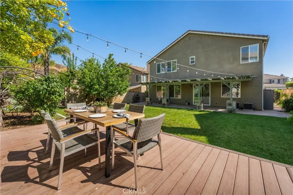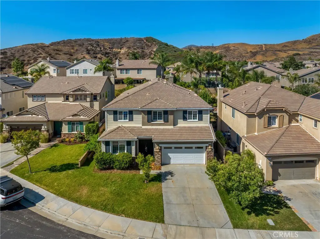 Welcome to this beautifully maintained 6-bedroom, 4.5-bathroom home tucked away in a quiet cul-de-sac in one of Santa Clarita’s most desirable neighborhoods. Designed with both comfort and functionality in mind, this spacious home features hardwood floors, tile, and elegant shutters throughout the first level. The main floor includes a full bedroom and bathroom — perfect for guests or a Mother in law suite! — plus a convenient half bath for visitors. Upstairs, you'll find four generously sized bedrooms connected by Jack and Jill bathrooms, a loft, and a dedicated laundry room. The luxurious primary suite offers a retreat-like experience with a massive en-suite bathroom and dual walk-in closets. Additional highlights include a 3-car garage, tankless water heater, and a whole house fan. The backyard is a true oasis, featuring a lush garden with an impressive variety of fruit trees and vines — including figs, apples, lemons, blackberries, strawberries, and grapes. Located within a top-rated school district, this home offers a perfect setting for family living in a safe, vibrant community. NO MELLO-ROOS! A rare gem — come see it for yourself!