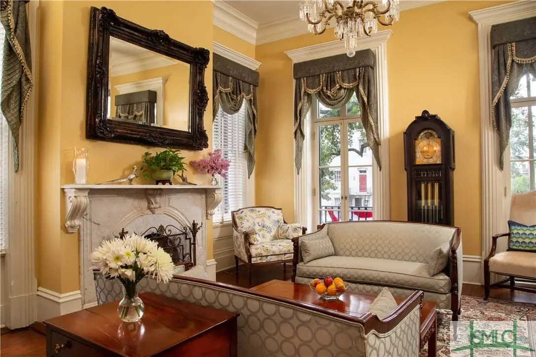 This classic Savannah gray brick townhome, located in the heart of Savannah's National Historic Landmark District, was built in 1871 as one of the premier single-family homes of its time. This stately residence has been exquisitely restored over the years and features many original stunning period details, including spacious parlors, fireplaces, high ceilings, original windows, hardwood floors and beautiful plaster moldings. Additional features include a carriage house that offers garage parking for 3 cars with apartment above & elevator access to all floors in the main residence. Currently operating as an inn, this residence has 10 en-suites and offers a highly desirable separate garden-level living space and carriage house apartment, each with its own private access. Property holds active Non-Owner Occupied STVR certificates that transfer with the sale of the property to enable the property to be rented on a s-t basis. Walking distance to Forsyth Park, Bull Street, galleries and restaurants.