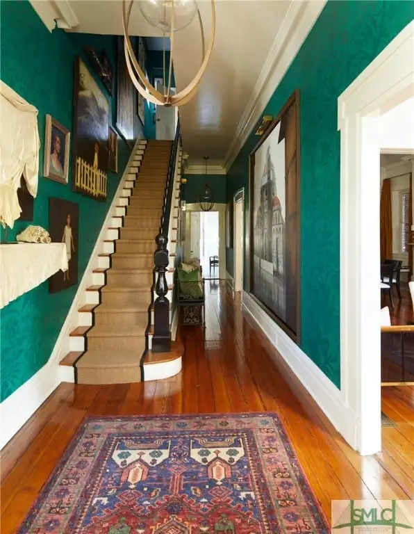 Enjoy unparalleled luxury and experience the pinnacle of downtown Savannah living at this exquisite freestanding c.1855 brick residence located in the heart of the Historic Landmark District on Monterey Square. Distinctive architectural design seamlessly blends period details with sophisticated modern elements. Couture-furnished interiors appointed with extraordinary natural materials and quality finishes are defined by beautifully proportioned light-filled spaces, soaring ceilings, exquisite plaster work, Old World craftsmanship, custom-lacquered finishes, hand-painted walls by renowned artist Bob Christian and custom lighting. The primary suite with private veranda stands apart as a sanctuary of style that occupies the entire second floor. A breathtaking chef's kitchen serves as a haven for home chefs and wine connoisseurs. This 5,500-plus square foot architectural masterpiece offers additional amenities, including stunning outdoor spaces, private elevator, garden-level apartment, two-car garage and much more.