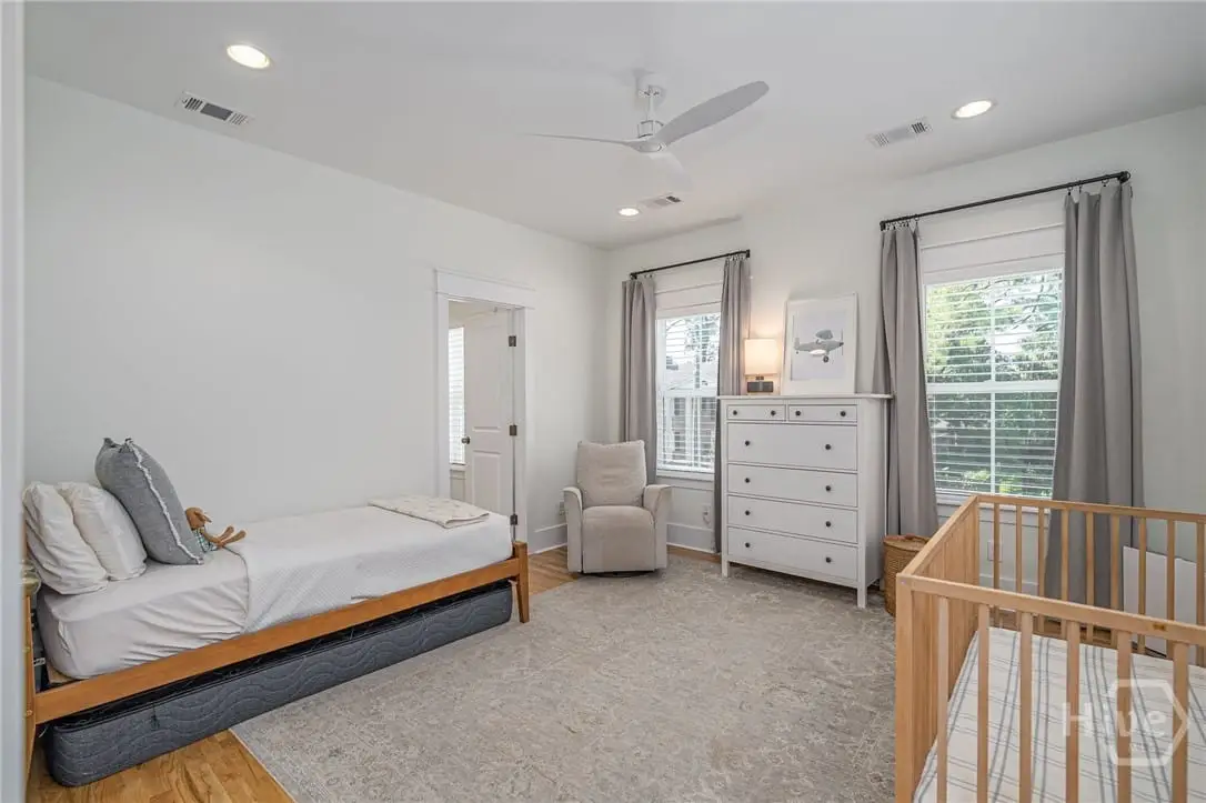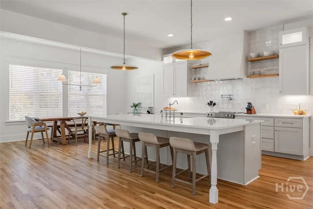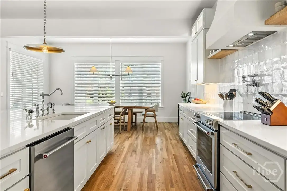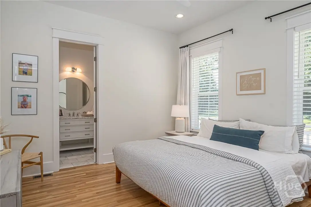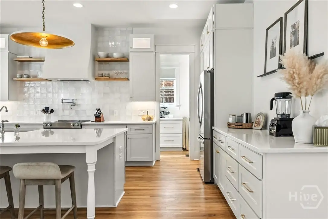 Conveniently located in coveted Ardsley Park, this 2023 build offers 5 bedrooms, 5.5 baths, and 3,509 sq ft of modern living. The inviting front porch with gas lantern opens to light-filled interiors with 10 ceilings, white oak hardwoods, and custom millwork. A chef's kitchen and prep kitchen with quartz counters, oversized island, and premium appliances connect to open living and dining areas. The main floor includes a private suite, bonus room, and half bath, while upstairs offers 4 spacious bedrooms with ensuite baths plus a serene primary retreat with his and hers closets. Outdoor living features a covered porch, built-in grill, fans, and fenced backyard with raised organic garden beds. Energy-efficient upgrades include Rockwool insulation, dehumidifiers, sealed crawlspace, tankless water heater, irrigation, and CAT 8 wiring. A one-car garage with alley access and walk-up attic storage complete this rare opportunity in one of Savannah's most desirable neighborhoods.