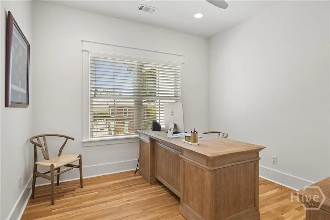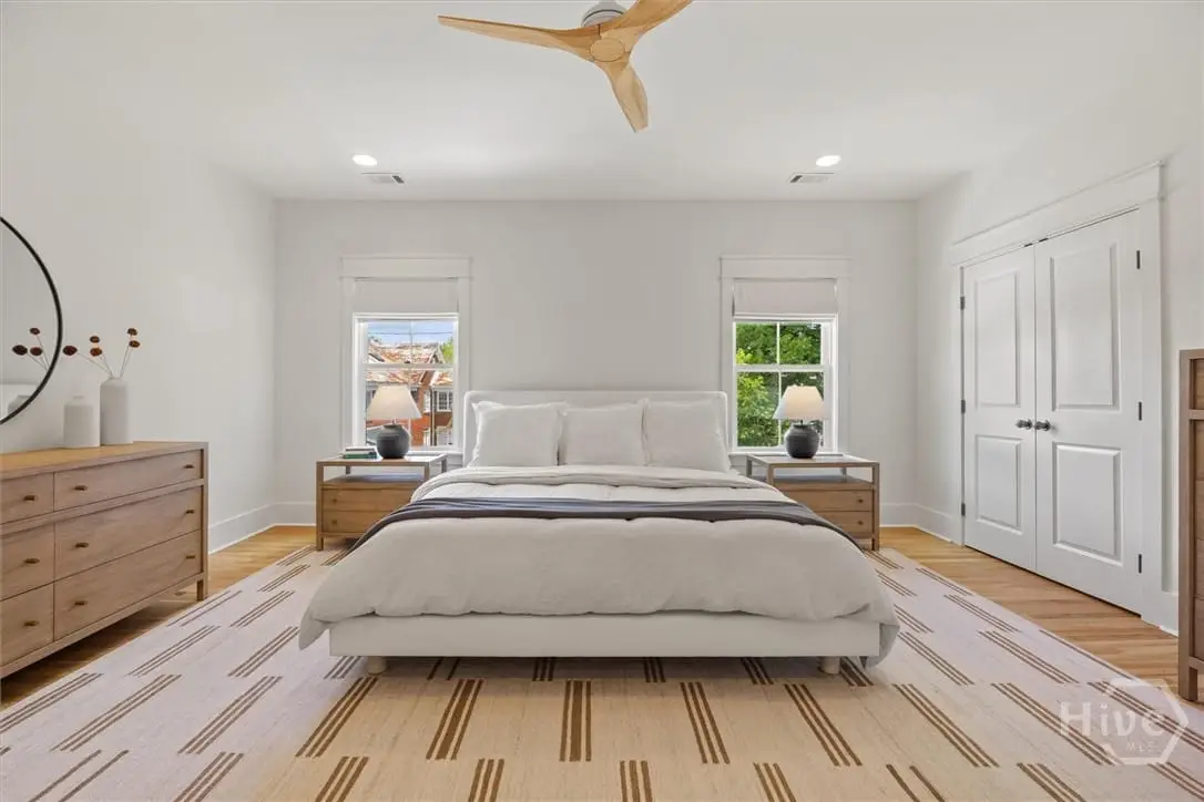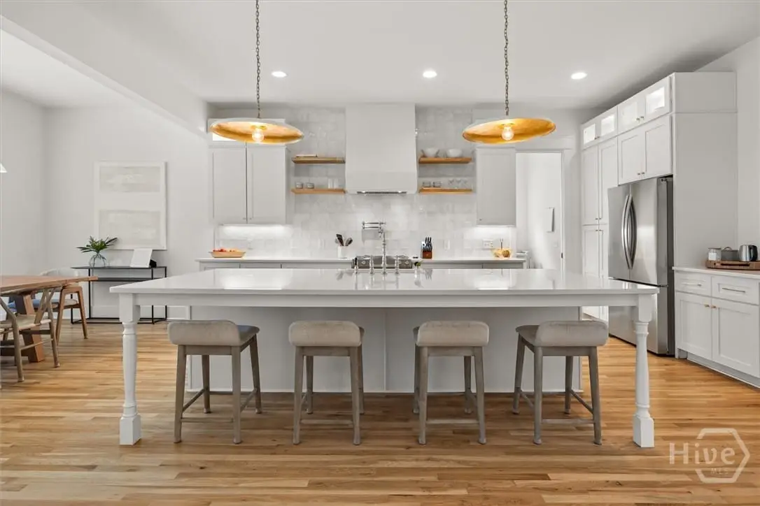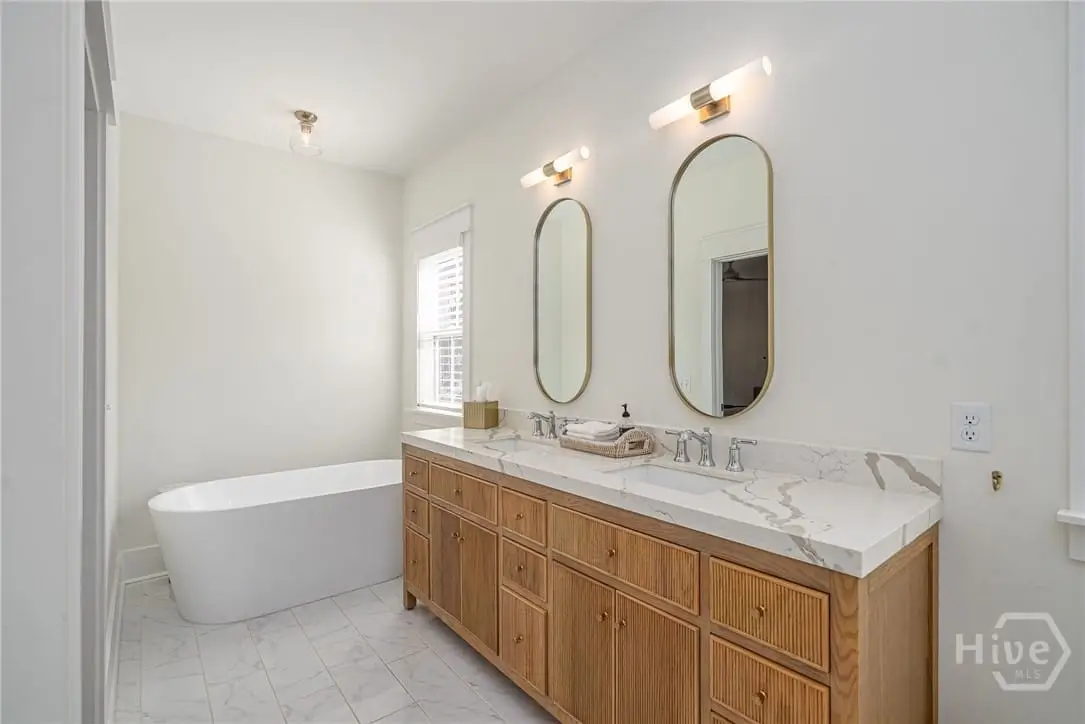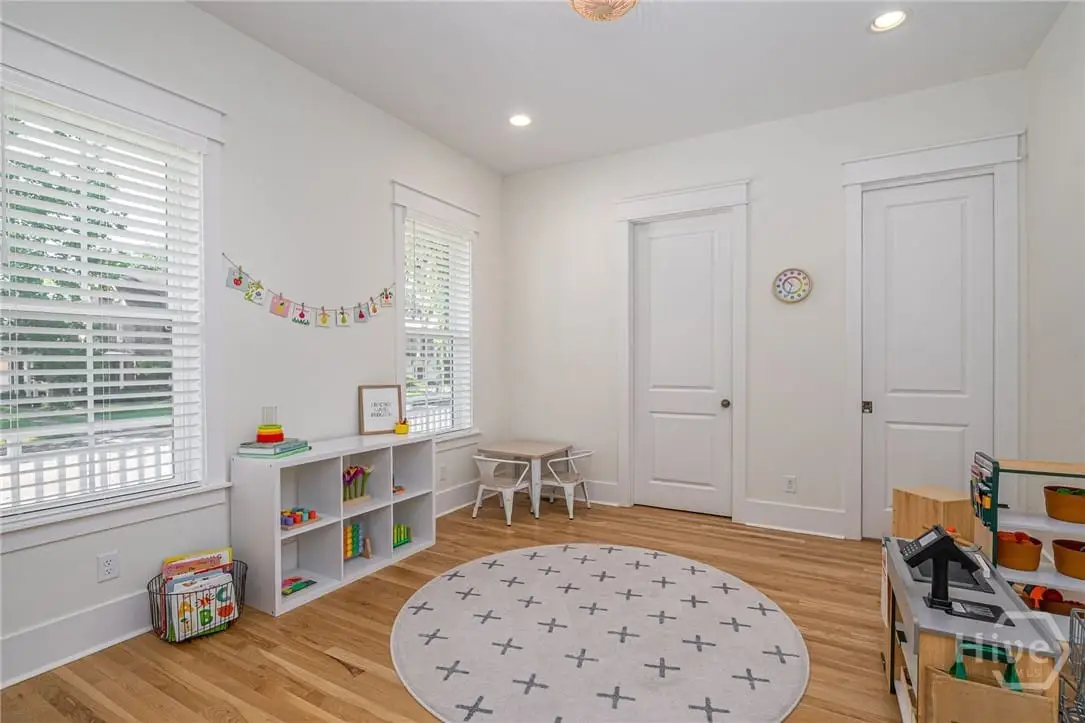 Conveniently located in coveted Ardsley Park, this 2023 build offers 5 bedrooms, 5.5 baths, and 3,509 sq ft of modern living. The inviting front porch with gas lantern opens to light-filled interiors with 10 ceilings, white oak hardwoods, and custom millwork. A chef's kitchen and prep kitchen with quartz counters, oversized island, and premium appliances connect to open living and dining areas. The main floor includes a private suite, bonus room, and half bath, while upstairs offers 4 spacious bedrooms with ensuite baths plus a serene primary retreat with his and hers closets. Outdoor living features a covered porch, built-in grill, fans, and fenced backyard with raised organic garden beds. Energy-efficient upgrades include Rockwool insulation, dehumidifiers, sealed crawlspace, tankless water heater, irrigation, and CAT 8 wiring. A one-car garage with alley access and walk-up attic storage complete this rare opportunity in one of Savannah's most desirable neighborhoods.