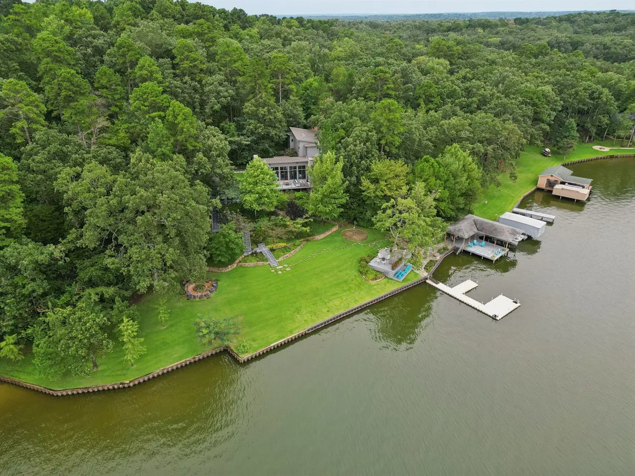 This beautiful compound on Lake Cypress Springs includes the rare opportunity to own a contemporary home in a private setting with over 12 acres. The private gated entrance leads you to one of the largest lots on the lake that has a contemporary custom home designed by the well-known architectural firm of Barry Bull Ballas. An expertly designed 4 bedroom and 5 and a half bath home with an exterior combination of stone, zinc, and hardy produce a timeless home nestled among the towering trees and perfectly oriented on the land to maximize the views of the lake with over 450 ft of lake frontage. The property boasts all the recreational options you can imagine. Sport court ideal for pickleball, basketball, foursquare, shuffleboard and badminton. Multiple boat docks including automatic lift and cover for a ski boat and pontoon boat and additional slip for a sailboat and floating dock for swimming and additional watercraft. There is a beautifully designed firepit that overlooks the beach area. The expert landscaping surrounds the home and lakefront with additional features including a Hot tub, fishing dock and tetherball. The Listing Price includes the following: 2011 Sun Tracker Pontoon Boat w.150 Mercury 4-stock engine and covered lift, Kawasaki UTV 4.4 Mule, two 2021 Sea-Doo Jet Skis, Three kayaks and one paddleboard. This sophisticated contemporary lake house is ready to enjoy and includes countless recreational options in this uniquely private setting on beautiful Lake Cypress Springs.