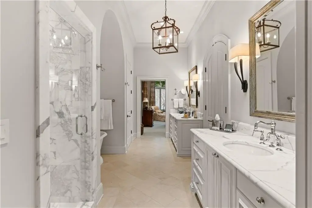 Luxurious Ocean Forest living awaits at 541 Forest Road. This stunning lakeside cottage, with Mizner influences throughout, is made for living and entertaining. The first level plan is highlighted by the two story foyer, which opens to the living room, family room and kitchen. All have lake views, and the kitchen features a center island with sink, Wolf and Sub Zero appliances and loads of custom cabinetry. Behind this space is an oversized laundry and party prep area, with a full size Viking fridge and Sub Zero wine fridge, plus an additional work sink and lots of extra storage. The family room has beamed ceilings and a cozy fireplace, one of three in the home, and has lake views. The dining room is formal and lined with built-ins. The primary bedroom, also with lake views, features a sitting area, an oversized bath with double sinks, shower and soaking tub and possibly the largest closet of any Sea Island cottage. Complete with packing table, built-ins and tall windows for light, this is more a repository than a closet. Upstairs via the beautiful wrought iron staircase, the second level offers another family room with views and four bedrooms – two that share a jack and jill bath and two with full en suite baths. Above the two car garage with storage is an additional suite. Currently serving as an office, this room features pecky cypress accents, the third fireplace and another full bath. Other notable features of the cottage include concrete block construction with stucco coating, clay barrel tile roofing, lakeside patios on both levels, outdoor cooking area and a whole house generator. This is the best of Ocean Forest living in a home that was made for living – come see for yourself at 541 Forest Road.
