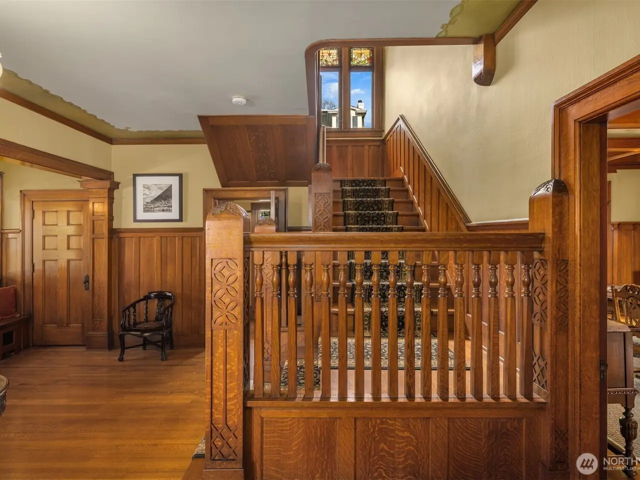Experience elevated city living in this masterfully restored Craftsman, where timeless architecture and elegant style meet contemporary luxury. Perched above Elliott Bay with commanding views of the Space Needle, Mt. Rainier, and the Olympic Mountains, this home offers an unforgettable backdrop from nearly every room. Four expansive levels flow effortlessly with open living spaces, a gourmet chef's kitchen, and flexible layouts for work, play, and relaxation. Step outside to lush gardens, grassy level lawns, sun-drenched patios, and covered terraces designed for year-round enjoyment. Private yet perfectly positioned to take advantage of Seattle's best dining, arts, events, shopping and outdoor recreation - the best of refined living!