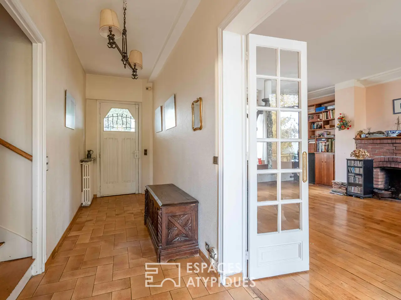 Nestled in the heart of the Monesse-Croix Bosset district, one of the most popular in Sevres, this beautiful house from 1927 covers 114 m2 of living space, supplemented by a garden level offering development possibilities. Built on a plot of 500 m2, this house with great potential will benefit from renovation work to give it back the charm it deserves. The ground floor opens onto a large entrance serving on one side, an independent kitchen and on the other, a beautiful living room of 33 m2 having retained all the charm of the old with its fireplace and its period parquet flooring. The latter gives access to a terrace overlooking the garden, and offering a breathtaking view of the surrounding area. Upstairs, the sleeping area consists of two large bedrooms of 16 m2, one with its own bathroom. A third bedroom of 9 m2 and a bathroom complete this level. The garden level, partially furnished, has a bedroom of 9 m2, a wine cellar, a storage space, and a room of 20 m2 to be exploited, thus offering expansion potential with direct access to the garden to create a harmonious connection between inside and outside. A closed garage completes the services of this charming house, which only asks to find a second life in its green envelope: Sevres-Ville-d'Avray station: 1km School map : Croix Bosset nursery and elementary school College of Sevres REF. 9613 Additional information * 6 rooms * 4 bedrooms * 1 bathroom * 1 bathroom * 2 floors in the building * Outdoor space : 496 SQM * Parking : 1 parking space * Property tax : 1 312 € Energy Performance Certificate Primary energy consumption e : 319 kWh/m2.year High performance housing