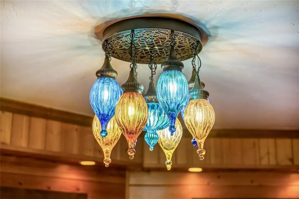 • Vaulted ceilings with wood beams