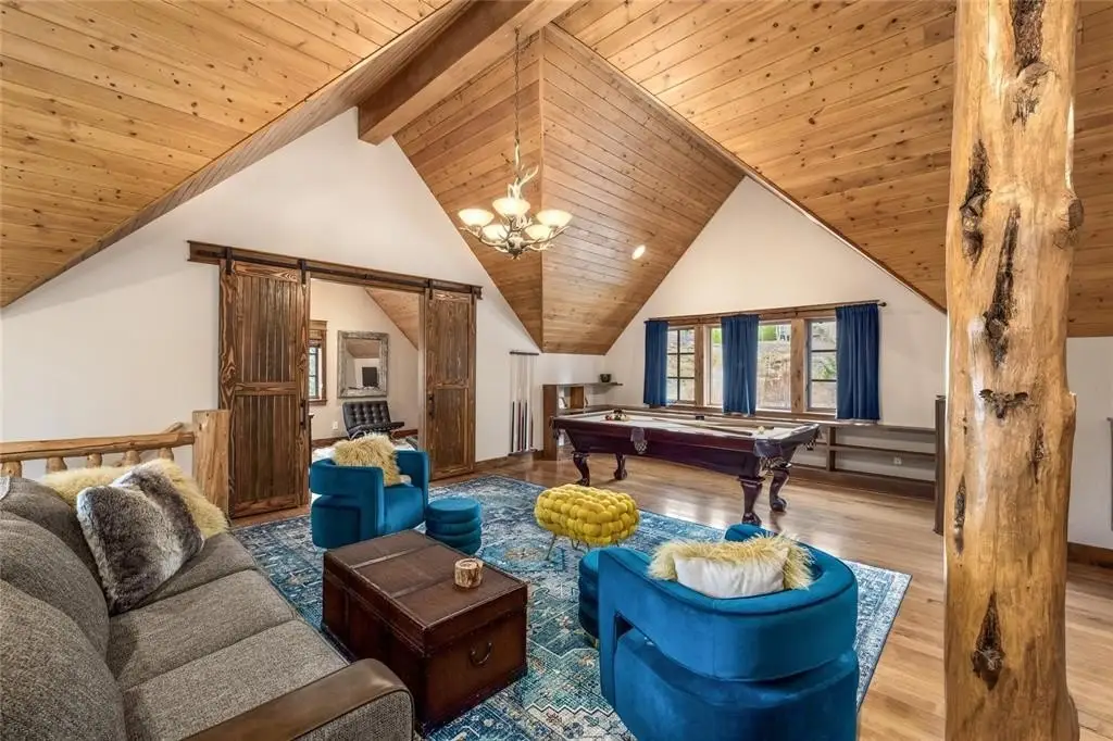 This exceptional riverfront home rests on the serene banks of the Lower Blue River in the coveted Sage Creek Canyon. The private river access allows you to cast a dry fly to selectively feeding Rainbow and native Brown trout before breakfast or after dinner. This meticulously maintained waterfront residence is the perfect blend of mountain elegance and refined craftsmanship. A multiple winner in the 2009 Parade of Homes, the 4,335 sq ft log home was built by longtime local home builder Brian Ray and was thoughtfully designed with a central log great room balanced by two wood-framed “wings” that harmoniously blend its open floor plan ethos with ample privacy for guests. Vaulted ceilings and a grand floor-to-ceiling stone wood-burning fireplace define the breathtaking great room and lofted office/game area. Custom details include unique, site-specific carved mantles, a hand-carved front door, and a dramatic, hand-tooled bald eagle head high atop the entryway ridge beam that keeps watch over the property. Finishes include solid hardwood maple floors, Red Dragon granite countertops, custom alder cabinetry, Ipe (aka "Brazilian Walnut”) decking, and fine woodwork in every room—offering timeless rustic charm with elevated design. The flexible layout includes four bedrooms (septic sized for a three-bedroom home) and 4.5 bathrooms, including a main-level primary suite, a spacious recreation room, and a bonus lock-off bedroom perfect for guests or multi-generational living. Beyond the walls, the professionally landscaped grounds feature mature perennial beds designed for three seasons of color, a private greenhouse, a fire pit, hot tub, and ample outdoor space to enjoy the natural surroundings. The home includes a heated three-car garage and a dedicated dog wash station. Riverfront is rare—don’t miss your opportunity.
