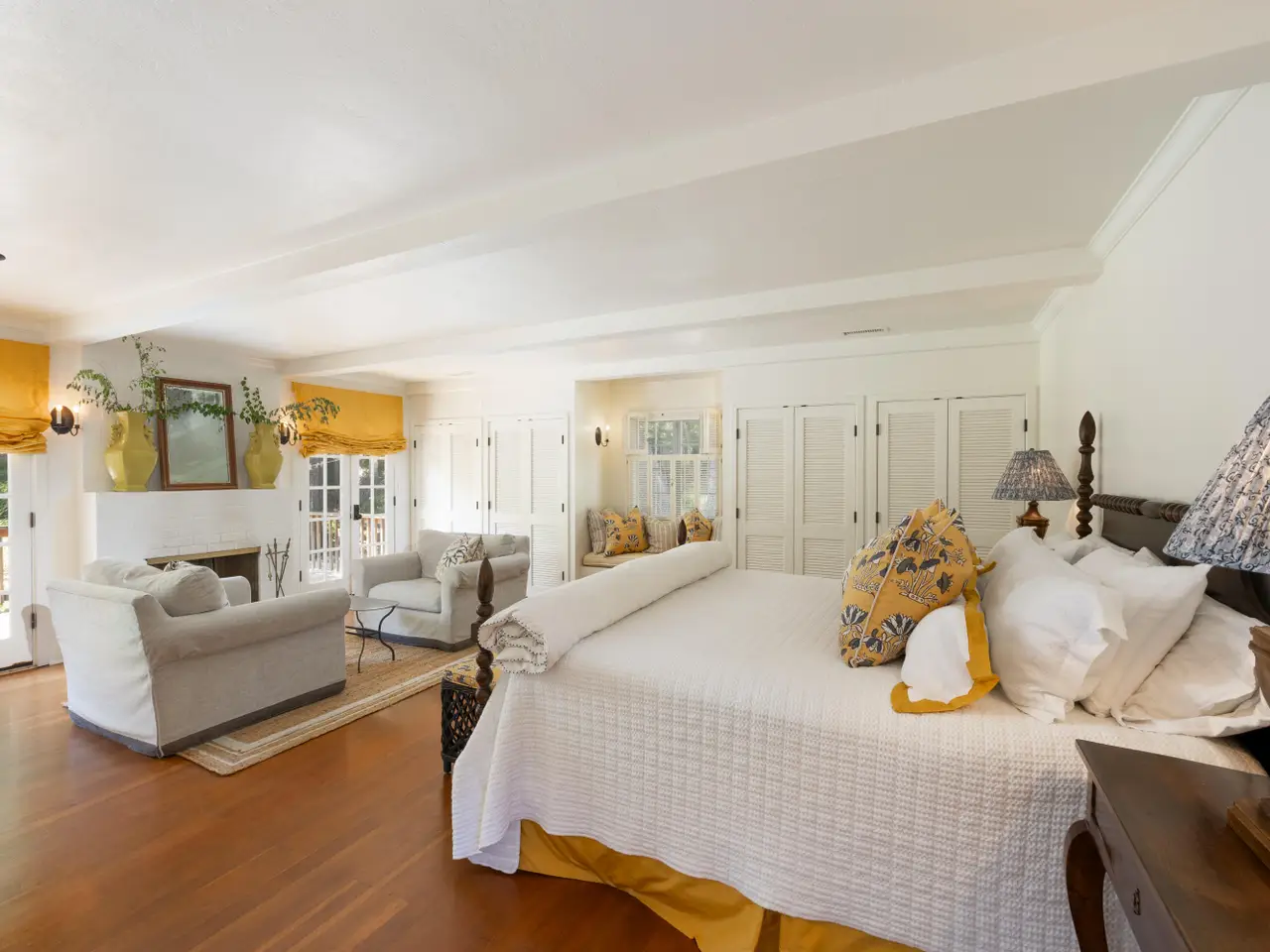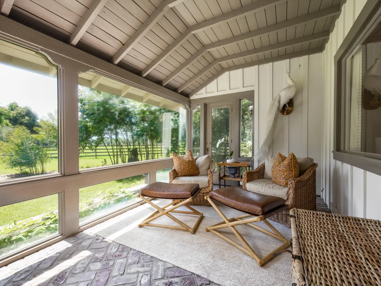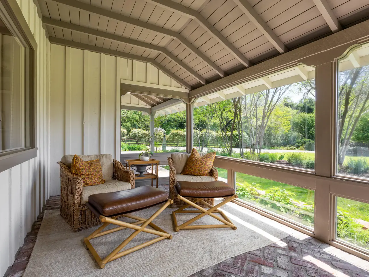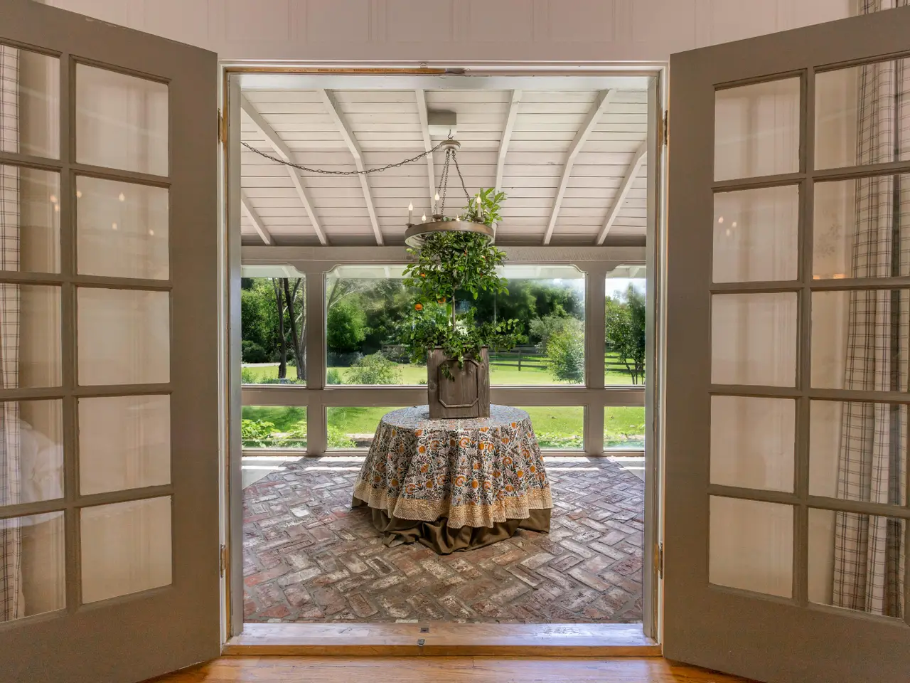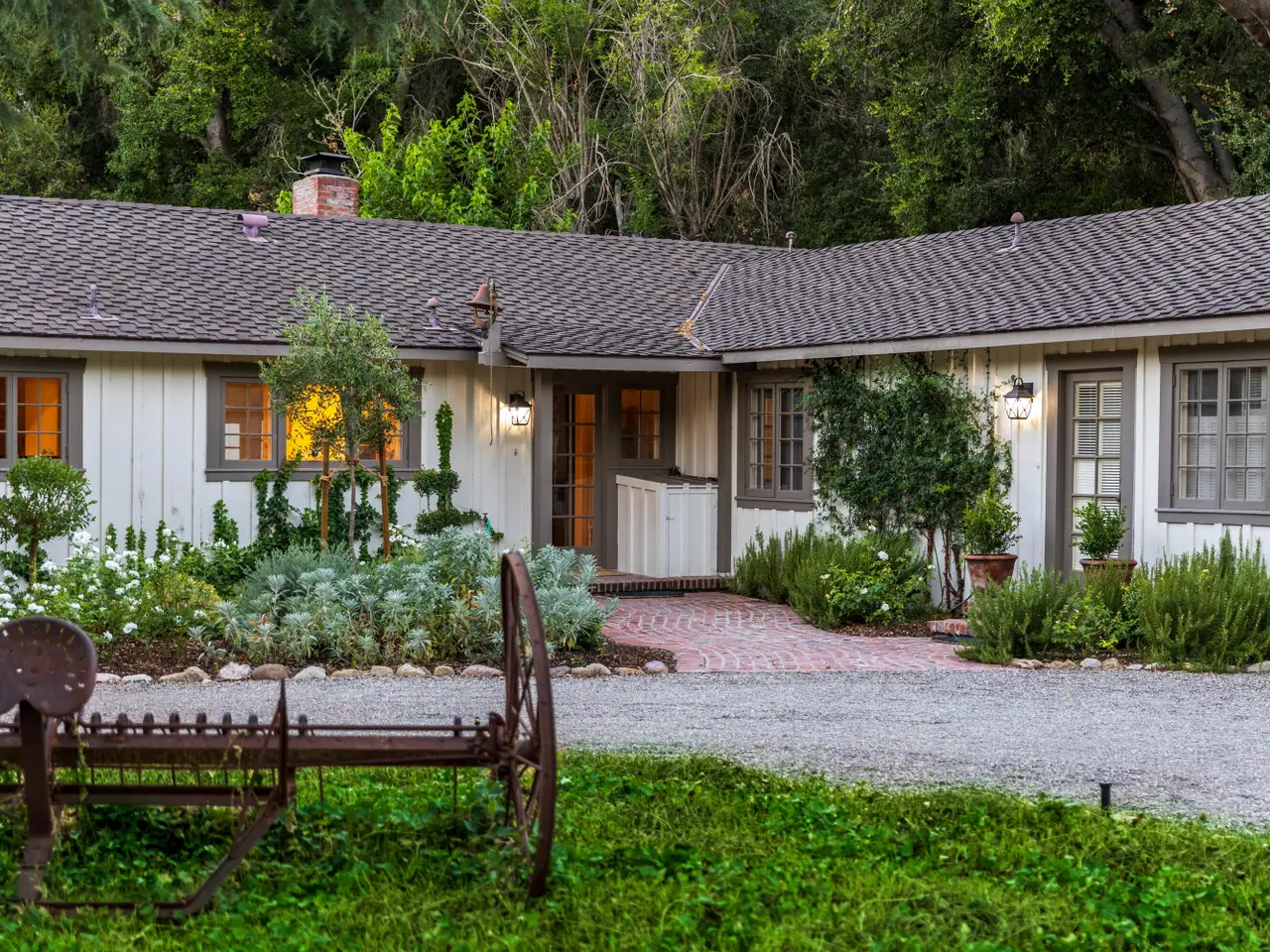 Nestled along the Alamo Pintado wine trail, this enchanting 37-plus-acre estate is located in the heart of Santa Ynez Valley, within the sought-after Ballard School District. This private retreat offers a sense of home and quality, evoking early Santa Ynez and California ranch living. The property's in-town location provides convenience, while its secluded setting among majestic old-growth oak trees ensures privacy. A gated entrance leads to a tree-lined driveway, flanked by antique stone pillars, winding over a bridge and through park-like grounds, creating a sanctuary-like atmosphere. The 1930s farmhouse is nestled amid mature trees and a seasonal creek. This classic California ranch house exudes warmth and charm, featuring a sun-filled living room with a large wood-burning fireplace... and a marvelous, screened sunroom. Over time, the home expanded to include 6 bedrooms, centered around a kitchen with a dual-sided fireplace and French doors opening to the patio and BBQ areas. A butler's pantry leads to a formal dining room and an additional screened porch, perfect for larger gatherings. The home retains much of its original charm, including hardwood floors, brick fireplaces, tongue-and-groove ceilings, and French doors, while blending old-world charm with modern comforts. The house is complete with a two-car garage, two additional covered car spaces, and an office. The estate also features a detached one-bedroom guest house, stables, barns, and two front pastures. Seventeen acres of land on the upper plateau offer opportunities for vines, pastures, or natural preservation. The outdoor amenities include a sparkling swimming pool, spa, tri-tip BBQ area, and tennis/pickleball court, all set against a backdrop of stunning natural beauty. Positioned at the forefront of the renowned wine trail, it's just a stone's throw from the beautiful areas of Ballard, Solvang, Santa Ynez, and Los Olivos. Conveniently close to schools, specialty grocery stores, award-winning bakeries, local coffee shops, boutiques, and prized restaurants, this property offers both tranquility and accessibility.