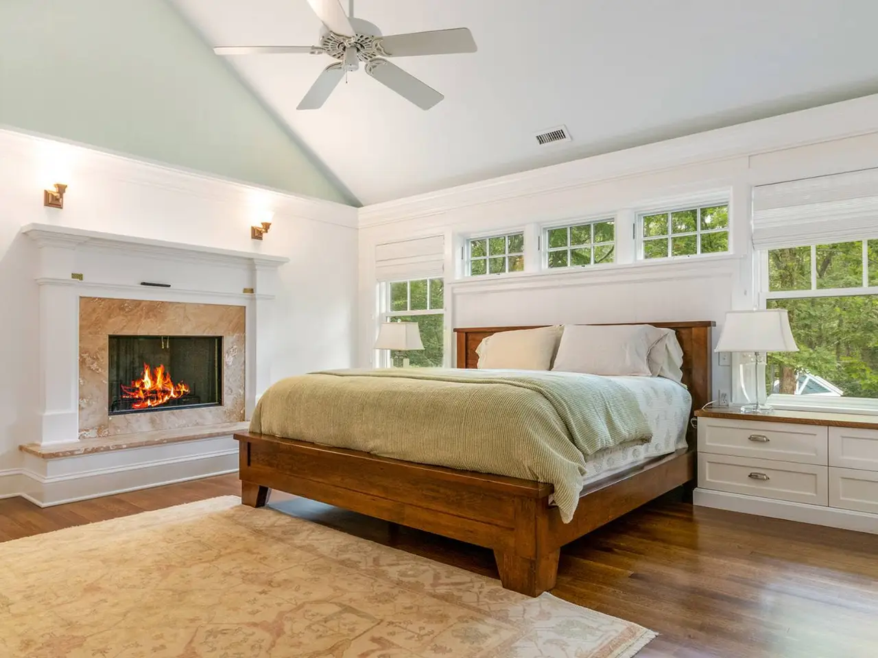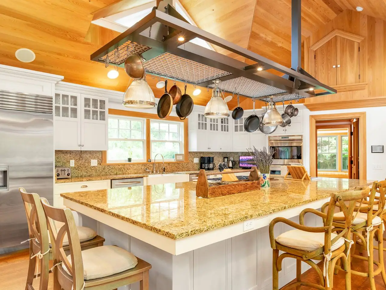 This beautiful home offers great style and large open space and all amenities. Open cathedral living room with fireplace, Huge kitchen with center island and stools for the 'in the kitchen parties', open dining room with fireplace, screened in porch for summer entertaining. The kitchen, dining room, living room and screened porch all connected. All very large public rooms plus a large first floor master bedroom with fireplace. ensuite , with two additional bedrooms, second floor large master bedroom with fireplace ensuite, with two additional bedrooms, finished basement with entertaining area, with flat screen TV and bar area, two bedrooms and two baths. Cozy, private, nicely furnished. The exterior has a salt water pool and very private grounds. A most enjoyable atmosphere. Listing ID: 738205