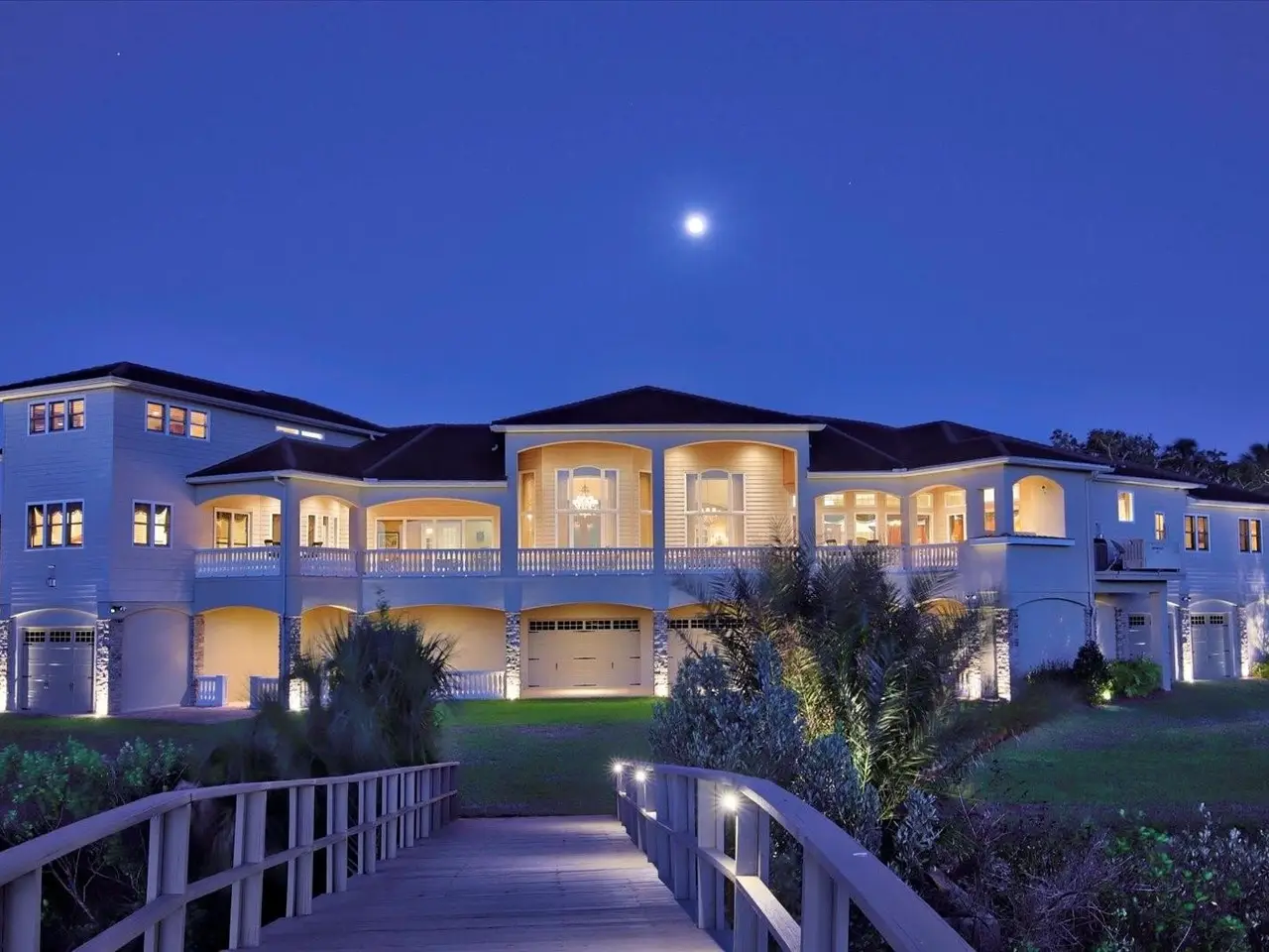 BUILT TO WITHSTAND A CAT 5 HURRICANE, LIVING SPACE OF THE HOME COMPLETELY UNTOUCHED BY HURRICANE HELENE! Some repairs being made to outbuildings and garage doors below the home. MOVE IN READY! TROPICAL GULF OF MEXICO LUXURY ESTATE – This stunning Gulf front property, comprised of over 23 acres, with over 1,100 feet of waterfront on the Gulf of Mexico, with incredible water views from every room is a one-of-a-kind opportunity. The residence is comprised of 5 bedrooms and 5/2 bathrooms in over 8,950 sq ft of living area. Bathed in sunlight, the split plan residence comprises a large entrance hall, living room, generous dining room, butler’s pantry, gourmet kitchen, 350-bottle wine cellar, large walk-in pantry, informal dining area, family room, billiard room, library, professional built 28 seat home theatre, exquisite master suite, opulent en-suite, all showcasing breathtaking views of the Gulf of Mexico. Gated, safe & secure, with a generator that will run the entire home for a month. Outside, a magnificent west facing terrazzo terrace extends the entire length of the home, with an outdoor kitchen with breathtaking Gulf views. Outdoor highlights also include a boat ramp, rustic boat house, a historical rustic guest house, a bridge which leads to an island with a floating boat dock, and double (lighted) tennis courts all amid the beautiful coastal wilderness. A car collectors dream featuring a 40+ car garage, with height for car racks and 12 garage doors, including a utility door, for Helicopter or RV and spans the entire space under the home. The 30,000 sq. ft. motor court makes landing a helicopter easy! The region is a prime spot for water sports and fishing. One of Florida’s most captivating Gulf Coast homes, this private, opulent home is cleverly designed to maximize its position overlooking the Gulf of Mexico.