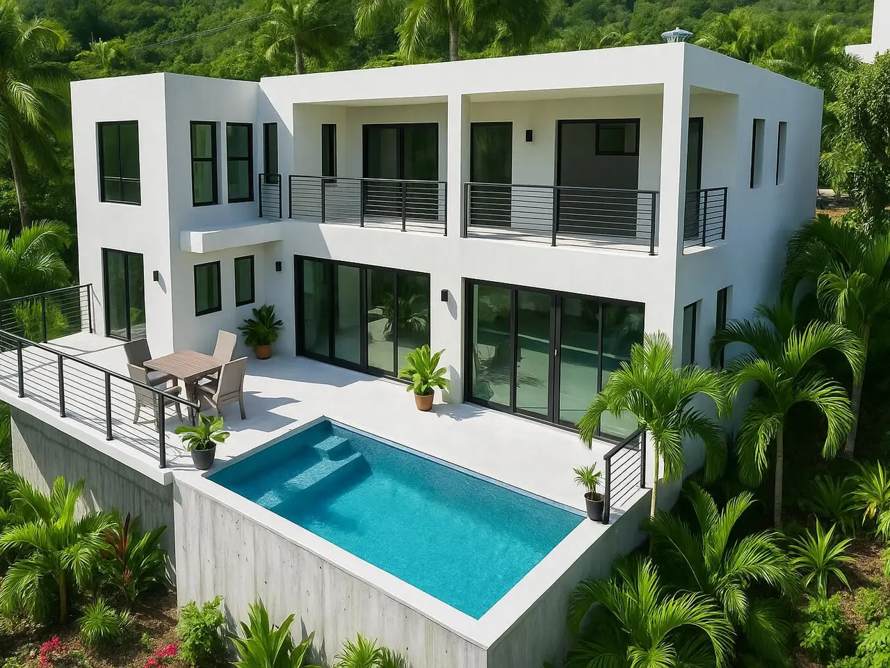 Discover luxury island living in this BRAND NEW, COMPLETED 3-bedroom, 3.5-bathroom modern pool villa. Constructed entirely of concrete, this home offers unparalleled durability and style along with water views! The villa boasts spacious interiors, an inviting pool area and a unique covered observation deck, perfect for entertaining and soaking in breathtaking views. Experience the best of tropical paradise in this exquisite villa. Whether you're looking for a permanent residence, a vacation home, or an investment property, this villa offers unmatched value and an exceptional lifestyle. Newly installed generator allows for comfort of backup power as needed.