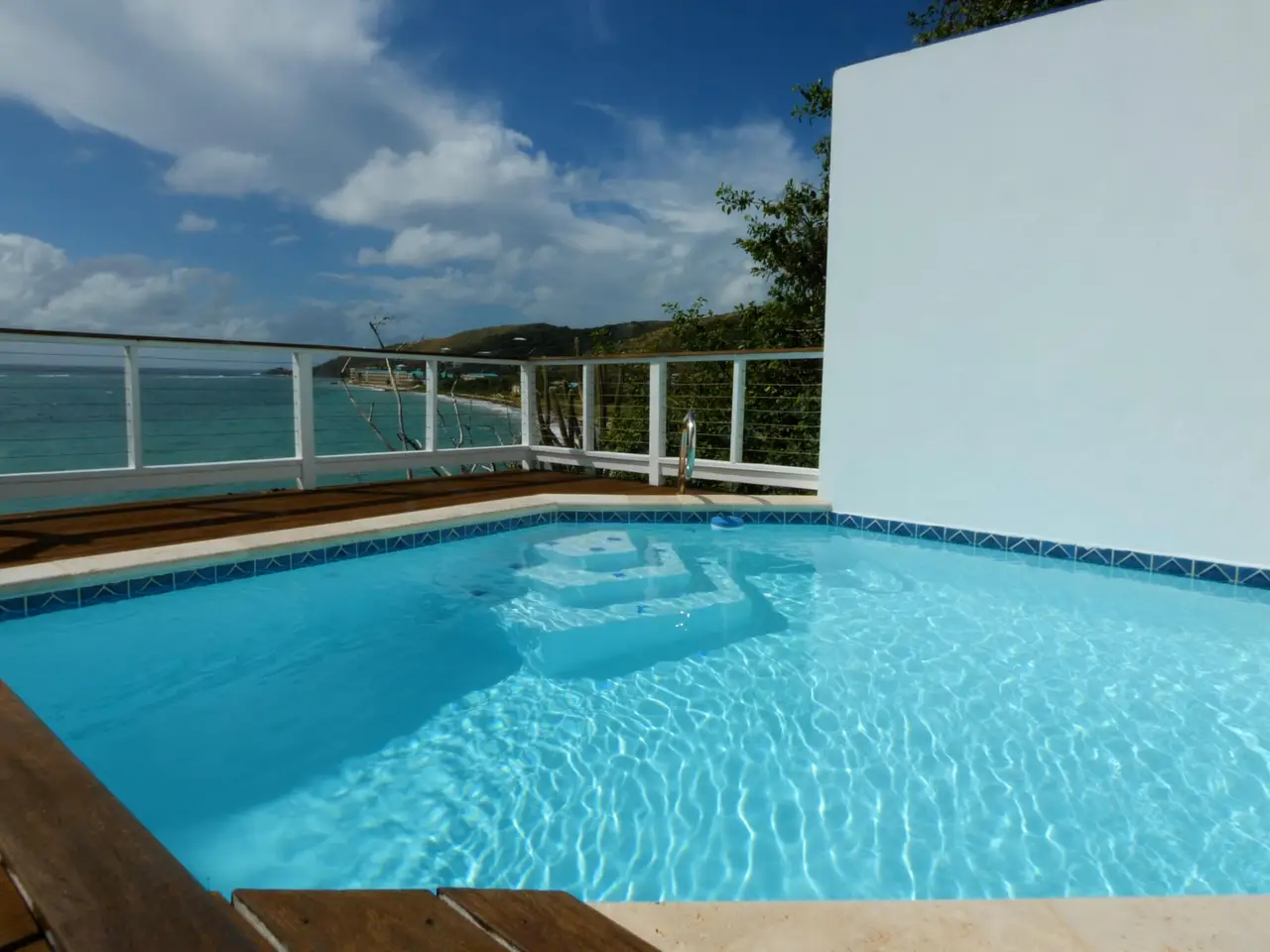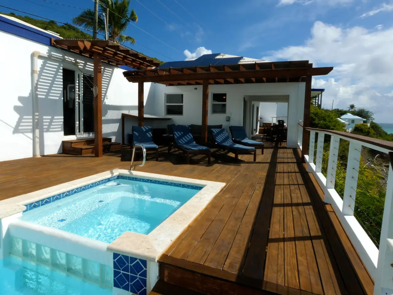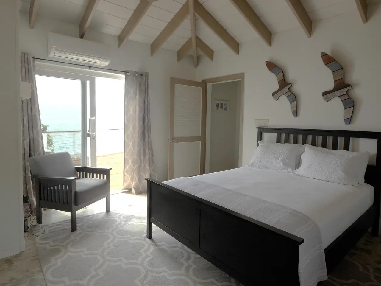 'Pelican Perch is lovelier than the photos online show...the villa is beautiful! More than that, waking up every morning to the sounds of the surf, sipping coffee out on the deck while watching the pelicans dive for fish and the sea turtles surfacing for air was PURE MAGIC!!' ...excerpt from recent guests' VRBO review... Clean lines and an elegantly simple island-style interior await you at Pelican Perch. Anchored by a breezy or air-conditioned bedroom and bath on either side of a comfortably casual open living/dining/kitchen space with soaring ceilings. Open the full wall of glass sliding doors to incorporate the breathtaking beauty of Mother Nature with the indoors...our dramatic setting ''on the rocks'' offers endless views beyond the horizon! Two-story guest cottage is a BONUS!