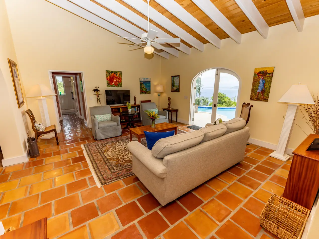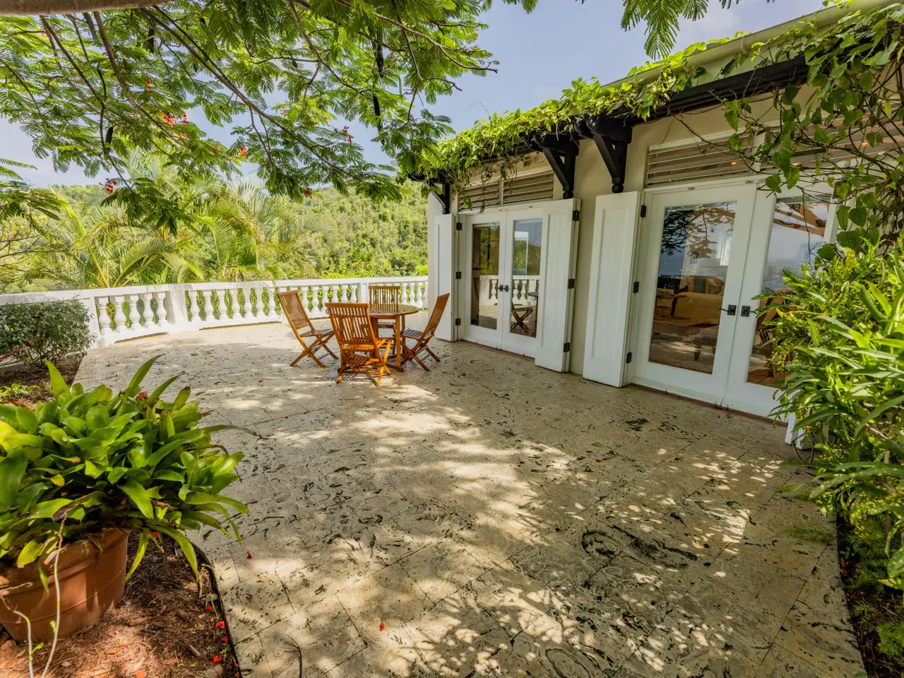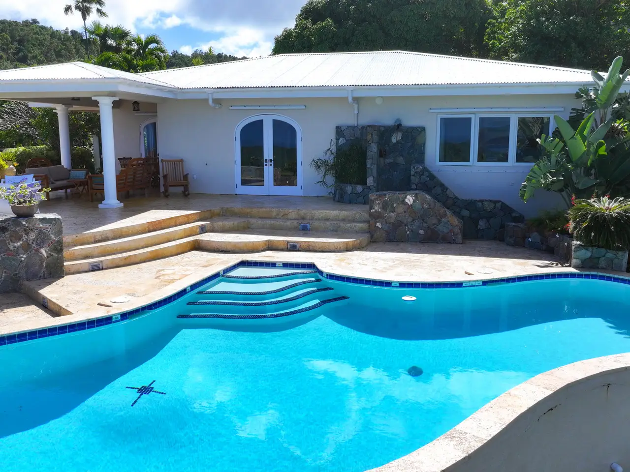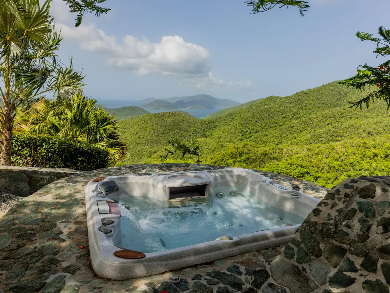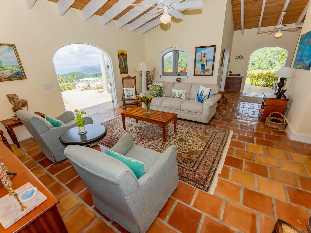 Rare opportunity to own an ultra-private, gated and secure compound situated in over two acres of the prestigious Catherineberg neighborhood. Bordering St. John's National Parkland and perched over 700 ft. above sea level, this exclusive estate offers fall-away views of the famed north shore beaches, the BVI's and beyond. Level entry through tropical gardens to sparkling pool, lawn with hot-tub gardens and sprawling terraces that highlight the sweeping vistas allowing for effortless indoor-outdoor living. An entertainer's dream. A half a mile of meandering stone walkways invites tranquil strolls through the terraced grounds of fruit trees. The sky is truly the limit for customizing this unique property into your ideal island escape.An extraordinary opportunity awaits to own an ultra-private, gated, and secure compound sprawled across over two acres of fenced property in the prestigious Catherineberg neighborhood. Nestled along the border of St. John's National Parkland and perched over 700 feet above sea level, this exclusive estate offers breathtaking fall-away views of the renowned north shore beaches, the British Virgin Islands, and beyond.