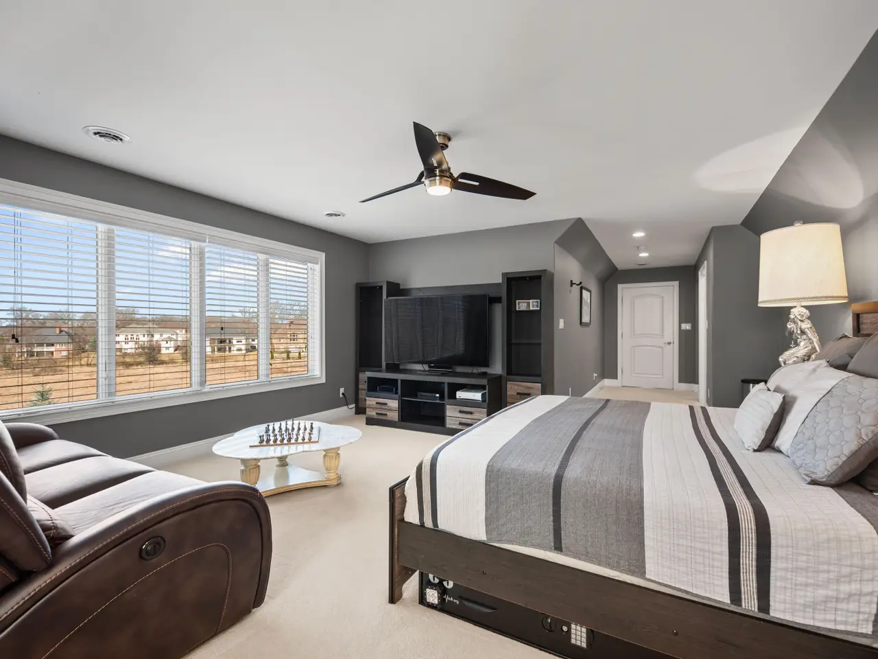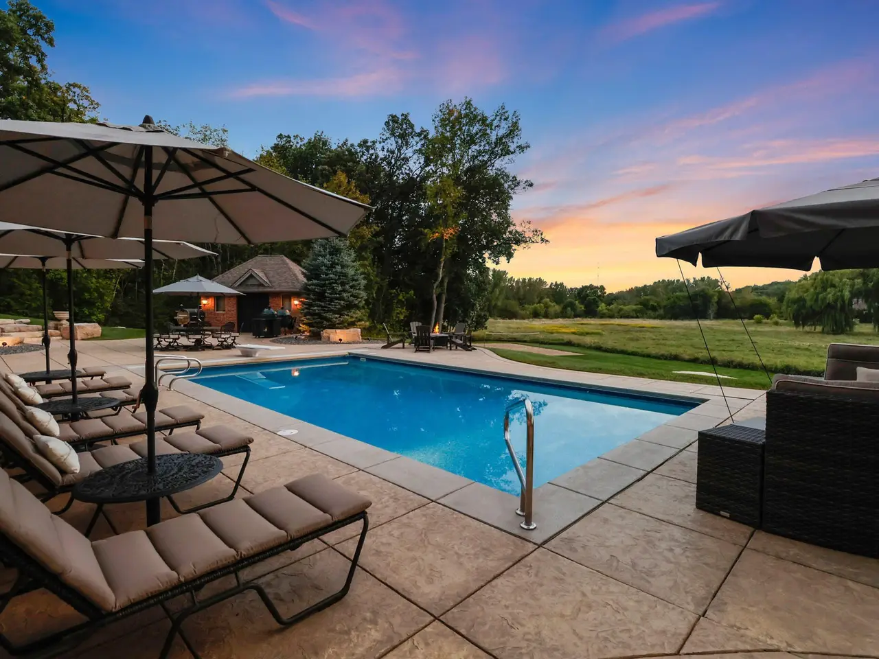 Welcome to this extraordinary estate where timeless luxury meets everyday comfort nestled on a private court in the prestigious Rosewood Estates community on 2.6 park-like acres. A gated circular drive leads you to an awe-inspiring entry setting the tone for the timeless elegance that follows. This custom-designed home boasts 6 spacious bedrooms and 7 bathrooms, each crafted for privacy and relaxation. The main living area is nothing short of breathtaking, with soaring vaulted ceilings, rich Restoration Hardware light fixtures, and the first of two stunning fireplaces that create a warm, welcoming ambiance. The show-stopping dining room flows effortlessly through a butler's pantry into the chef's kitchen, with an enormous center island, custom cabinetry, quartzite counters, walk-in pantry, while the wide-plank hickory wood flooring commands attention, the breakfast room allows access to the balcony or deck with built-in Wolf grill. The massive main level laundry room includes one of the 3 washers and 3 dryers. The main level primary suite is a serene retreat with his and her closets including the 2nd washer and dryer along with a luxury bath, and its own sitting room offering peaceful views of the grounds with balcony access perfect for morning coffee or quiet moments. Upstairs, a 2nd primary suite, 3 enormous bedrooms and a massive bonus room providing flexible space for a home office, playroom, studio, or guest suite. The finished walkout basement is an entertainer's dream, featuring a full wet bar, with a gorgeous backlit gathering island, dishwasher, beverage refrigerators, billiards room, workout room with 3rd laundry facility, a light filled office & even a 3rd primary suite. Step outside to enjoy a tranquil in-ground pool, pool house, sand volleyball court overlooking the 11 acre community preserve. Parking is a breeze in the spectacular heated 5.5 car garage. Top-rated schools, shopping, dining, & minutes from the Illinois border allowing an easy commute.
