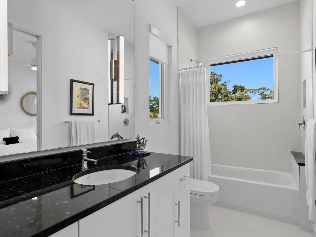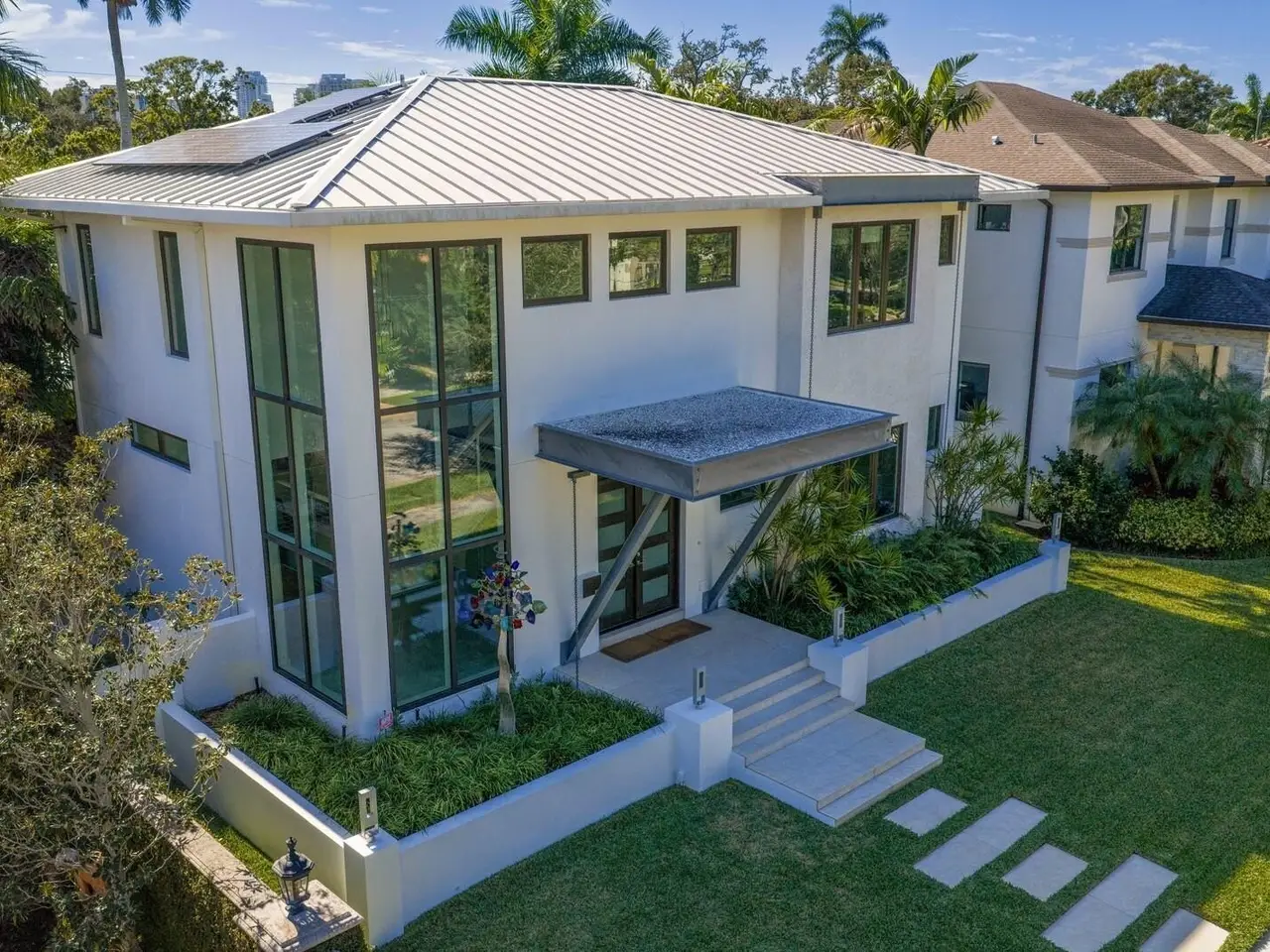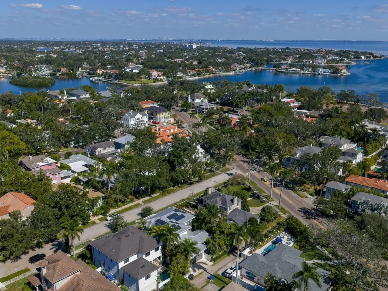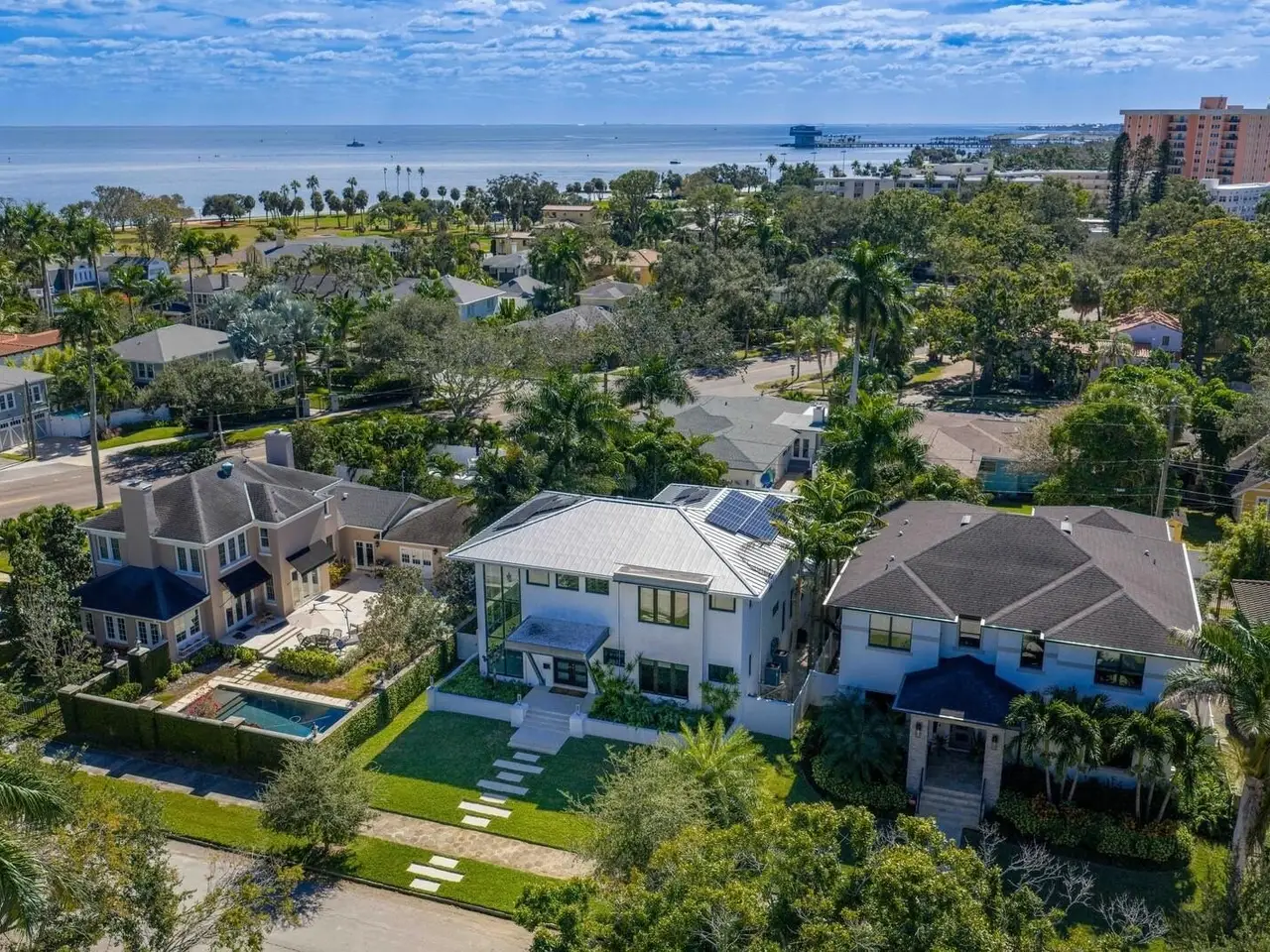 What if you could have modern construction in the hottest historic neighborhood in town? Tree canopies and hex block sidewalks, and holiday spirit beyond imagination? Blocks from the 3rd longest waterfront park system in North America, minutes from vibrant downtown, this “front porch neighborhood” is one of St. Petersburg’s most popular. Step into refined elegance in this custom-built Devonshire home, blending contemporary sophistication with cutting-edge efficiency. Soaring 10-foot ceilings, vast windows, and a striking floating staircase set the tone for the home’s upscale ambiance. The open-concept great room with porcelain tile flooring connects living, dining, and a sleek kitchen that features Thermador appliances, a natural gas cooktop, quartz countertops, a beverage refrigerator, and reverse osmosis water filtration, in addition to a large walk-in pantry. A dramatic live-edge wood dining counter adds warmth and character to the central island. There are four en suite bedrooms, including one on the main level (currently used as an office) that would be ideal for a guest suite. The upstairs primary suite features a luxurious bath with dual vanities, a soaking tub and separate large dual-head shower. There are two large walk-in closets and a Juliet balcony. Two additional bedroom suites are located on this upper level, along with a very functional laundry room. Engineered hardwood flooring on the upper level lends charm to the minimalist style. Step outside to a large covered lanai with a tranquil water fountain, wired and plumbed for an outdoor kitchen. Florida-friendly landscaping and privacy-enhancing masonry walls and vinyl fencing make this a wonderful space in which to relax. Plans for a pool are available, and the oversized 600 sq ft alley-access garage provides ample storage. A spacious mudroom offers even more storage and convenience. Built to current hurricane standards, this home features filled-block construction, Icynene spray foam insulation, a standing seam metal roof, and hurricane-rated windows and doors. Smart home systems include Sonos speakers (indoor and lanai), smart thermostats, Cat-6 wiring, LED lighting, and a dedicated technology closet. A Generac whole-home generator, owned solar panels, and two tankless natural gas water heaters ensure energy efficiency and peace of mind. Located in a neighborhood known for its charm and community spirit—with a voluntary HOA – this is more than a place to live; it’s a place to thrive. Come experience why St. Petersburg makes international headlines as a destination for arts, culture, dining, outdoor recreation and much more.
