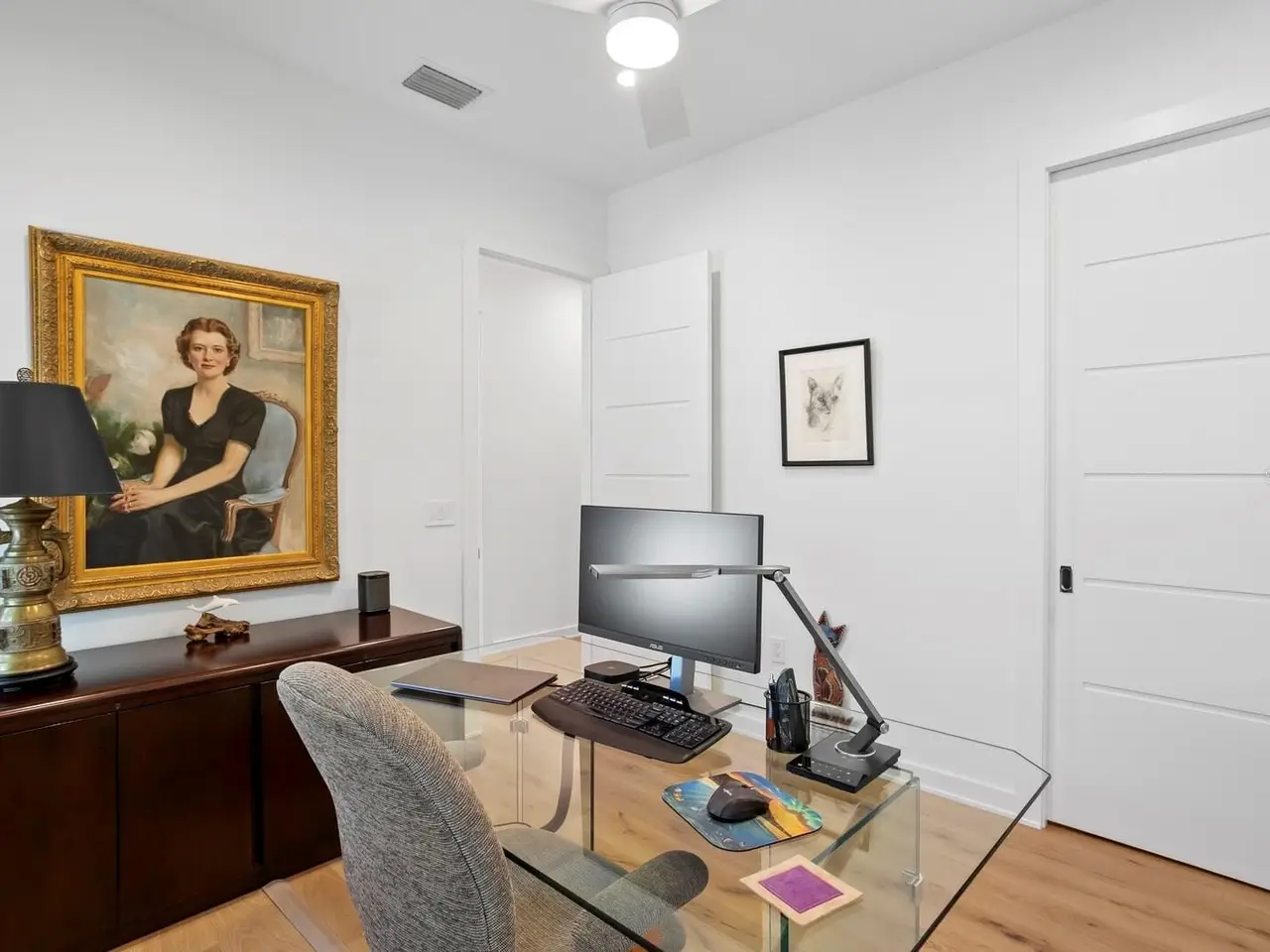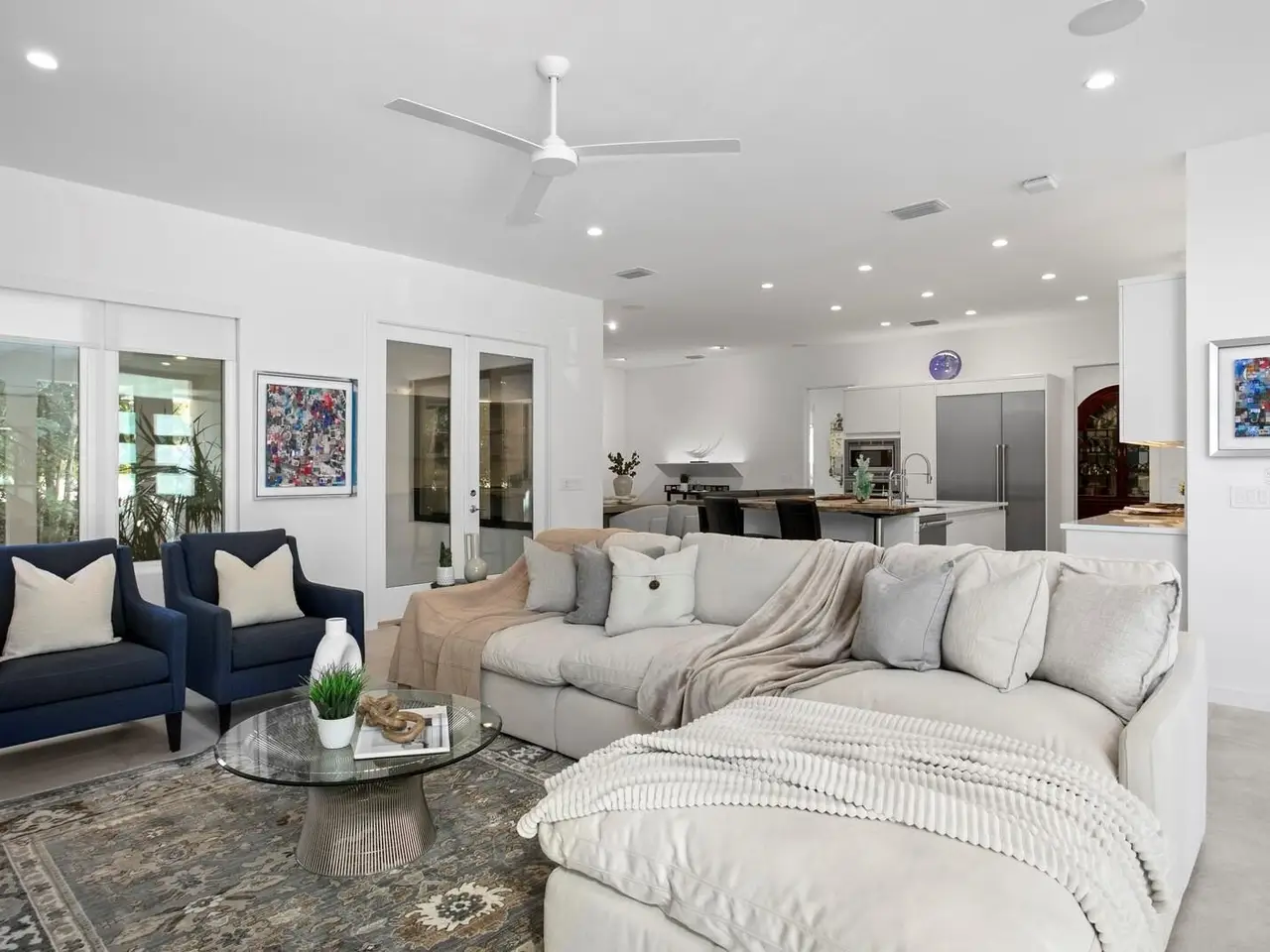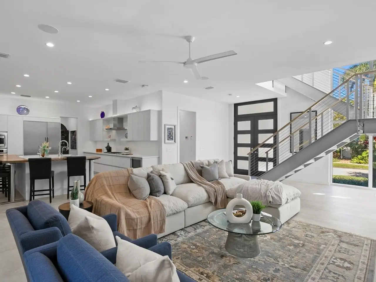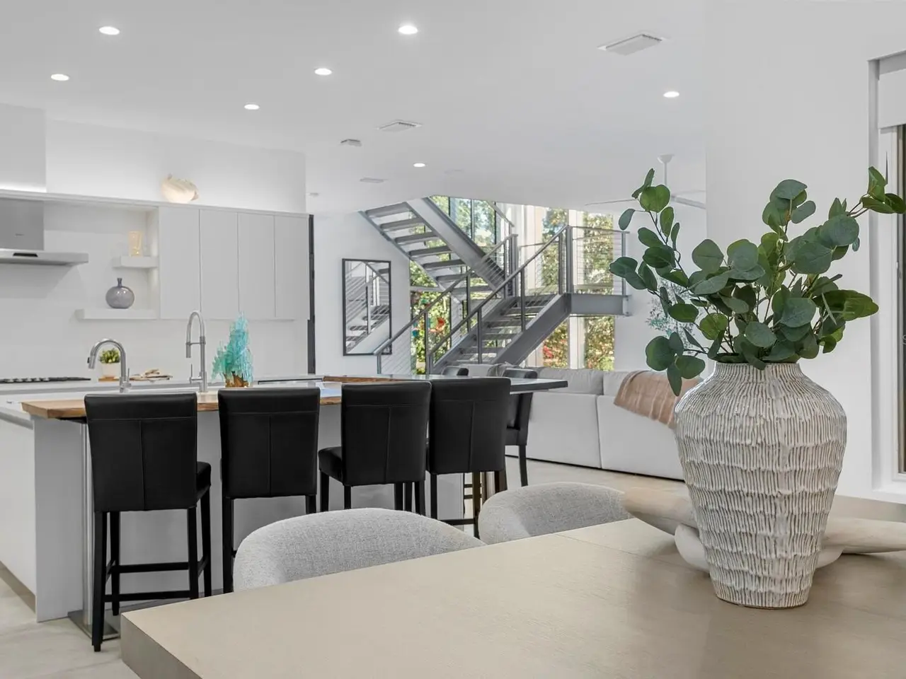 What if you could have modern construction in the hottest historic neighborhood in town? Tree canopies and hex block sidewalks, and holiday spirit beyond imagination? Blocks from the 3rd longest waterfront park system in North America, minutes from vibrant downtown, this “front porch neighborhood” is one of St. Petersburg’s most popular. Step into refined elegance in this custom-built Devonshire home, blending contemporary sophistication with cutting-edge efficiency. Soaring 10-foot ceilings, vast windows, and a striking floating staircase set the tone for the home’s upscale ambiance. The open-concept great room with porcelain tile flooring connects living, dining, and a sleek kitchen that features Thermador appliances, a natural gas cooktop, quartz countertops, a beverage refrigerator, and reverse osmosis water filtration, in addition to a large walk-in pantry. A dramatic live-edge wood dining counter adds warmth and character to the central island. There are four en suite bedrooms, including one on the main level (currently used as an office) that would be ideal for a guest suite. The upstairs primary suite features a luxurious bath with dual vanities, a soaking tub and separate large dual-head shower. There are two large walk-in closets and a Juliet balcony. Two additional bedroom suites are located on this upper level, along with a very functional laundry room. Engineered hardwood flooring on the upper level lends charm to the minimalist style. Step outside to a large covered lanai with a tranquil water fountain, wired and plumbed for an outdoor kitchen. Florida-friendly landscaping and privacy-enhancing masonry walls and vinyl fencing make this a wonderful space in which to relax. Plans for a pool are available, and the oversized 600 sq ft alley-access garage provides ample storage. A spacious mudroom offers even more storage and convenience. Built to current hurricane standards, this home features filled-block construction, Icynene spray foam insulation, a standing seam metal roof, and hurricane-rated windows and doors. Smart home systems include Sonos speakers (indoor and lanai), smart thermostats, Cat-6 wiring, LED lighting, and a dedicated technology closet. A Generac whole-home generator, owned solar panels, and two tankless natural gas water heaters ensure energy efficiency and peace of mind. Located in a neighborhood known for its charm and community spirit—with a voluntary HOA – this is more than a place to live; it’s a place to thrive. Come experience why St. Petersburg makes international headlines as a destination for arts, culture, dining, outdoor recreation and much more.
