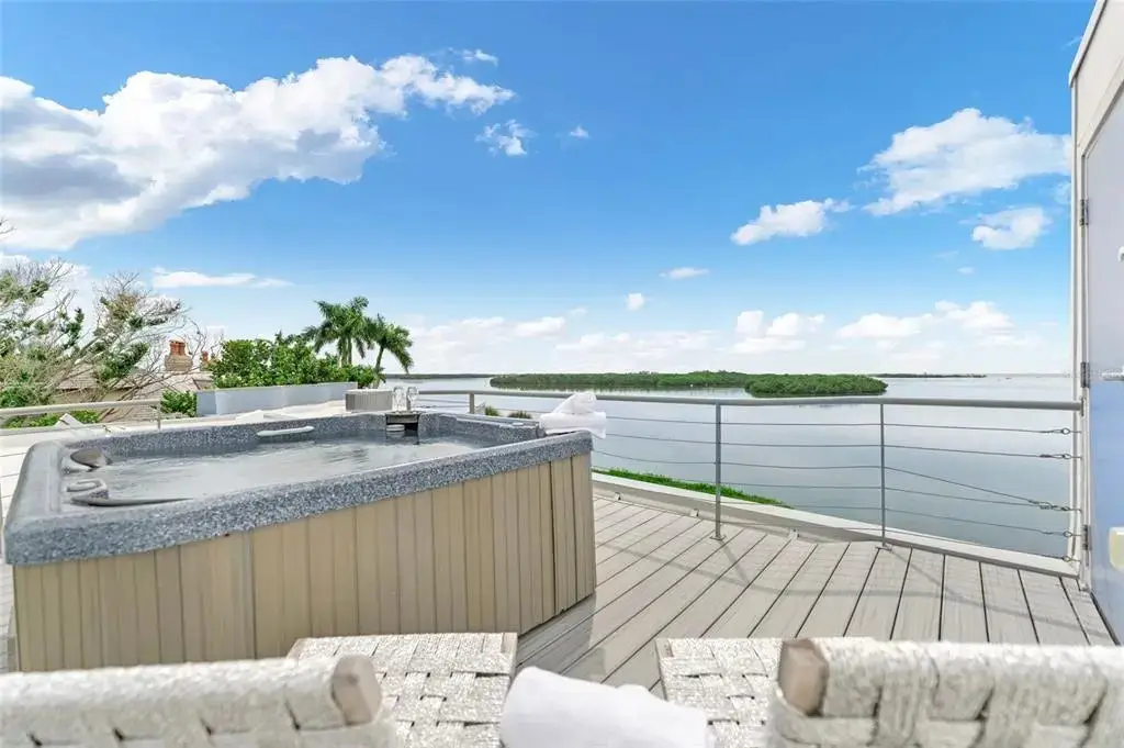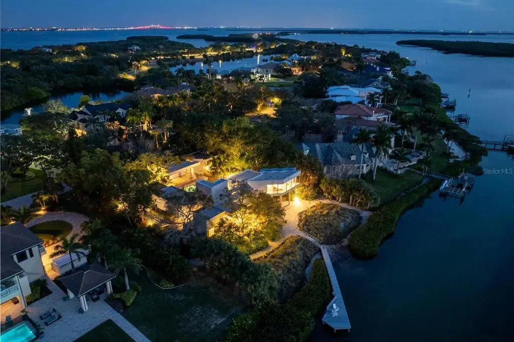 Enjoy modern coastal living on your own private waterfront beach with exquisite, unobstructed open water views of the Gulf of Mexico. Situated on nearly an acre with the prestigious Oceanview Drive address of Tierra Verde, this architecturally unique waterfront residence offers a wonderful opportunity to create your dream home in one of Tampa Bay’s most desirable locations. Built in 1988 with a forward-thinking open-concept design, the home features expansive floor-to-ceiling windows that blur the lines between indoors and out, offering panoramic views from nearly every room. White Oak hardwood floors span the main living areas, enhancing the warm, modern aesthetic. The upper-level primary suite present an exceptional opportunity for a redesign to your own specific vision - allowing you to fully personalize and elevate the living experience to today’s luxury standards. The flexible floor plan includes a loft-style second level with current drawings for a reconfiguration and expansion—add bedrooms, baths, or expand the rooftop entertaining 'sky deck' to suit your lifestyle. Outdoor living is just as impressive, with the rooftop deck and hot tub offering 360-degree views, a private lap pool, expansive deck, landscaped gardens, and a detached guest suite with a private gym. Located just 10 - 15 minutes from St. Pete Beach, Downtown St. Petersburg, Fort De Soto Park, and the I-275 corridor, this property combines privacy, potential, and prime waterfront access. Bring your vision and make this iconic Gulf-front property with its sandy beach your own.