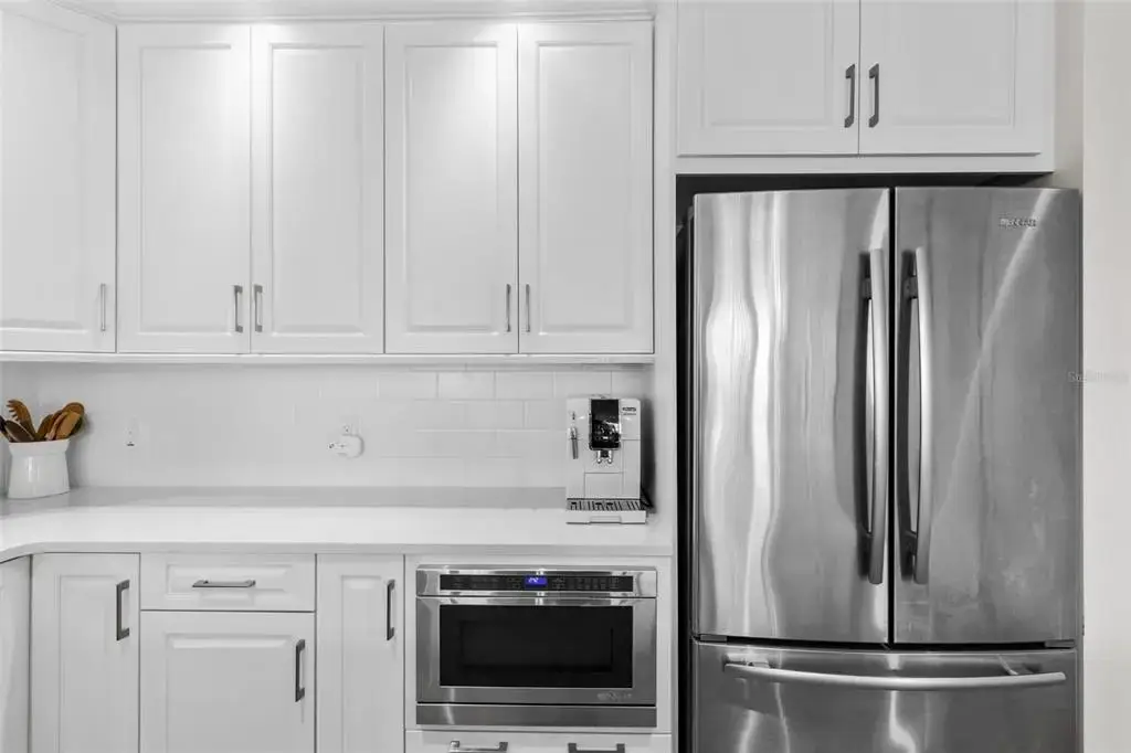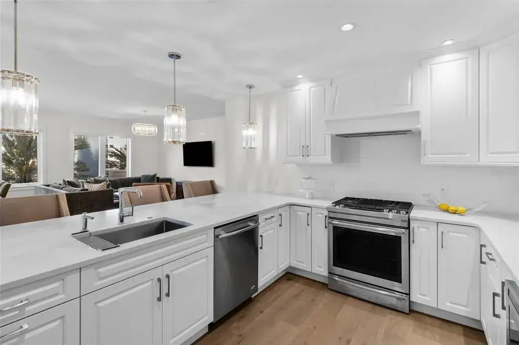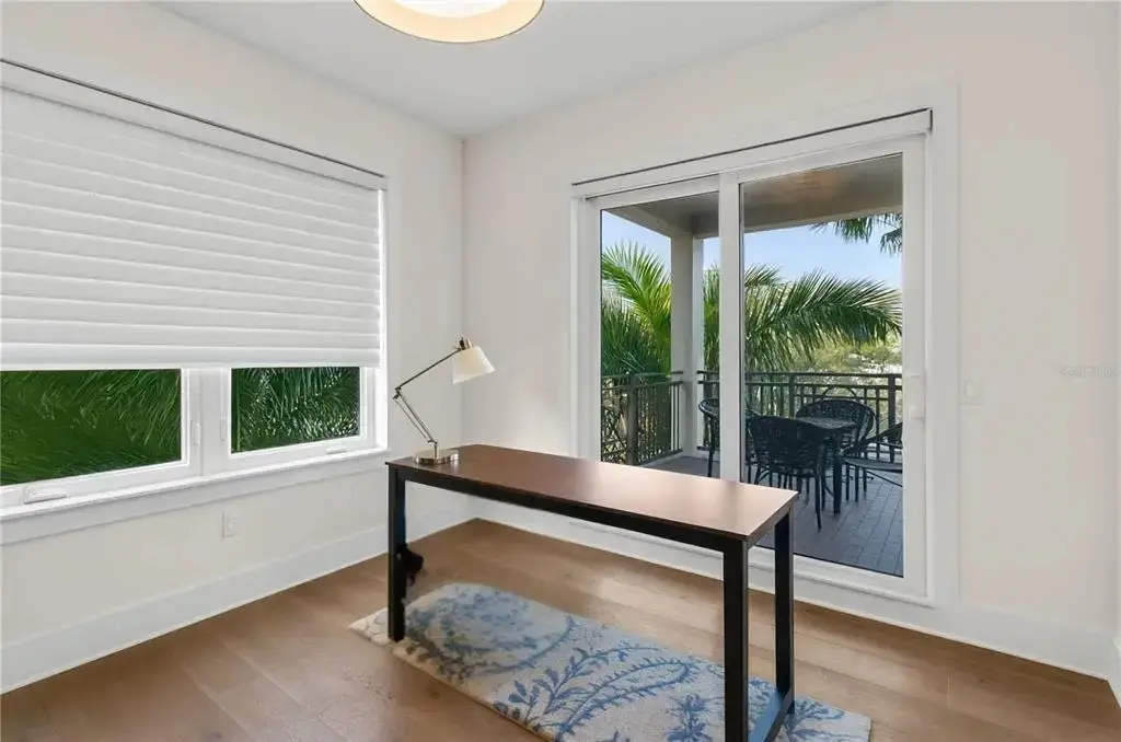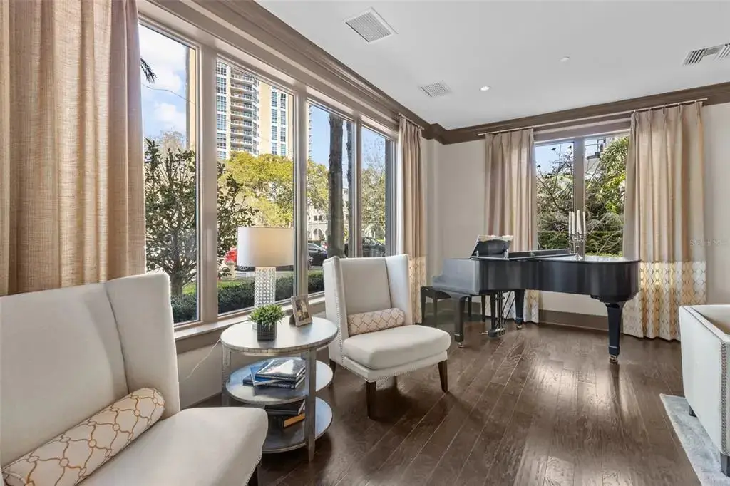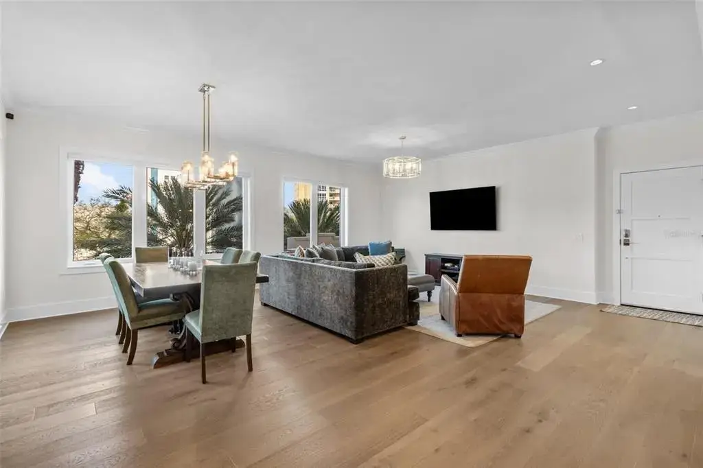 One or more photo(s) has been virtually staged. This is It! A rare opportunity for a front-facing corner residence with a private garage in Rowland Place—an Art-Deco–inspired boutique building by JMC (2015) with only 17 homes, set a half-block from Beach Drive NE in downtown St. Petersburg. Residence 302 offers 1,998 sq ft, 2 bedrooms, 2.5 baths, and a den/study that functions as a 3rd bedroom (built-ins + Murphy bed), plus a balcony. Light-filled great room and dining area open to the corner balcony. The chef’s kitchen features shaker wood cabinetry, quartz counters, stainless JennAir appliances including a five-burner gas range/oven, and a large double-door pantry. Interior finishes include genuine hardwood plank floors, designer lighting, and expansive hurricane-impact picture windows. The immense primary suite provides two walk-in closets and a spa-style bath with dual vanities, a large glass-enclosed shower, and a private water closet. Additional features in the condo include Hunter Douglas motorized/manual shades, abundant closet space, and an interior laundry room with Whirlpool front-load washer/dryer, cabinetry, and sink. Parking is exceptional—an oversized private single-car garage with ample storage area plus a second assigned space in the secure building garage. Rowland Place amenities include a rooftop deck with grill/lounge seating and views of the Vinoy Basin and Tampa Bay, and elegant lobby/club room spaces with fireplace and billiards. Rowland Place is a secure access building located mere steps from beautiful waterfront parks, the Pier, the Vinoy Resort, museums, galleries, restaurants, and shopping – everything the vibrant city of St. Pete has to offer!