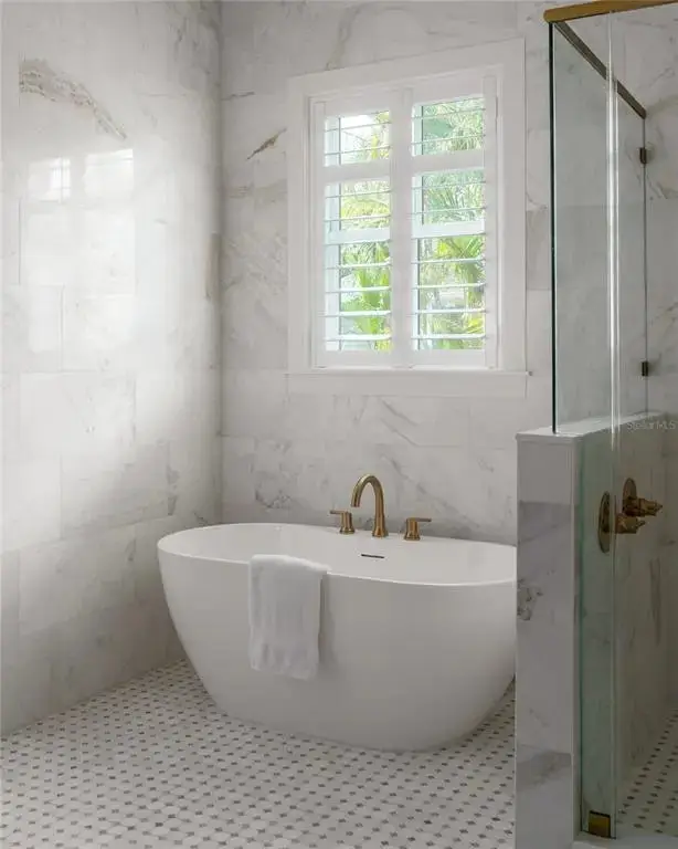 Spa-inspired bathroom with soaking tub and walk-in shower