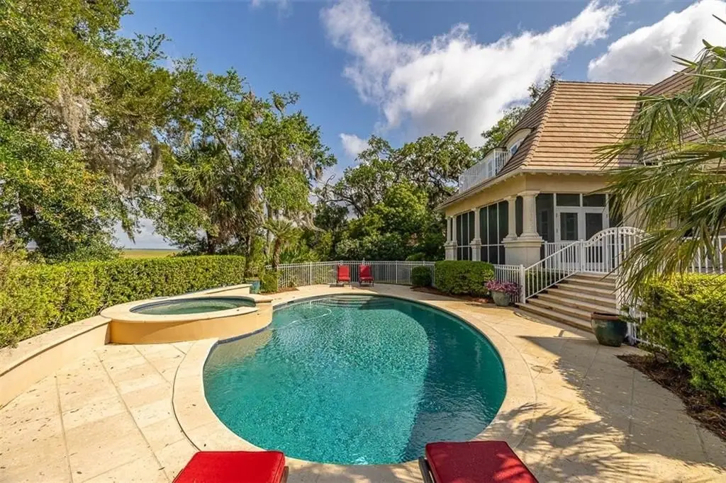 Welcome to 117 Hawkins Island Circle, a luxurious residence nestled within the exclusive, gated community of Hawkins Island. Designed by renowned local architect John Rentz and constructed in 2006, this elegant home sits on a beautifully landscaped 0.83-acre lot, offering expansive, panoramic marsh views. Spanning approximately 6,261 square feet, every detail of this home reflects sophistication and timeless design. As you step into the grand foyer, you are greeted by soaring ceilings, intricate millwork, and a welcoming ambiance. The formal dining room, adorned with large windows and elegant wallpaper, sets the stage for memorable gatherings. Adjacent is a thoughtfully designed butler's pantry equipped with a dishwasher, mini fridge, wine cooler, and ice maker—ideal for seamless entertaining. The heart of the home is the gourmet kitchen, featuring a spacious island, Thermador gas range and oven, Sub-Zero refrigerator, and Miele dishwasher. Open to the kitchen, the inviting family room boasts custom built-ins and access to a screened porch with a gas grill, all overlooking the breathtaking backyard and marsh views. A formal living room showcases a stately stone fireplace and a wall of windows that frame the serene outdoor scenery. The primary suite offers private access to the veranda and features dual baths for unparalleled comfort and convenience. Three additional main-level bedrooms, each with ensuite baths, provide ample space for family or guests. A well-appointed laundry room with abundant cabinetry, counter space, and a sink adds practicality, along with a half bath on this level. Upstairs, a private retreat awaits, featuring a pecky cypress office, a cozy sitting area with built-ins, a full bath, and a spacious bedroom or recreation room with its own bath. Step outside to the backyard oasis, where a heated pool and spa are perfectly positioned to capture stunning sunset views. The oversized three-car garage and additional parking ensure ample space for vehicles and storage. Whether you are seeking a primary residence or a second home, this exceptional property offers the ultimate in coastal living. Conveniently located near St. Simons Island’s finest dining and shopping, this home is ready to become your personal haven. Schedule your private tour today and experience the unparalleled beauty of 117 Hawkins Island Circle. Please make your appointment to view this exceptional home today.