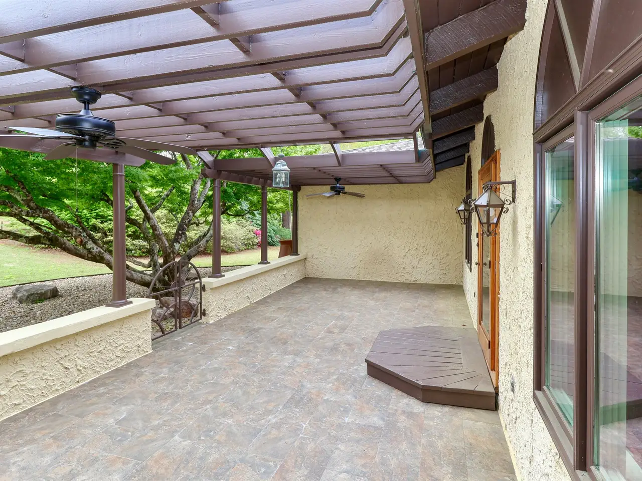 Spanish-Inspired Estate in Statesville Country Club, Nestled on 1.14 acres blends timeless charm with modern updates. Renovations in 2025 include a new roof, new paint, updated flooring throughout most of the home, and fresh tile on the inviting front patio. Shade trees and beautifully updated landscaping enhance the curb appeal, lush Bermuda grass adds a vibrant touch to the grounds. Great room includes a pretty stone fireplace w/ gas logs. Stylish kitchen flows to the dining room - ideal for entertaining. The primary en suite is a retreat with its own sunroom, Natural light throughout the home. Three bedrooms are conveniently located on the main floor. The fully finished walkout basement offers a large family room, game room, a fourth bedroom, and a full bath with direct access to the pool -perfect for entertaining. Back deck overlooks a sparkling pool and a picturesque pond, Storage and upgrades throughout, this home offers comfort, space, and style in an unbeatable setting.