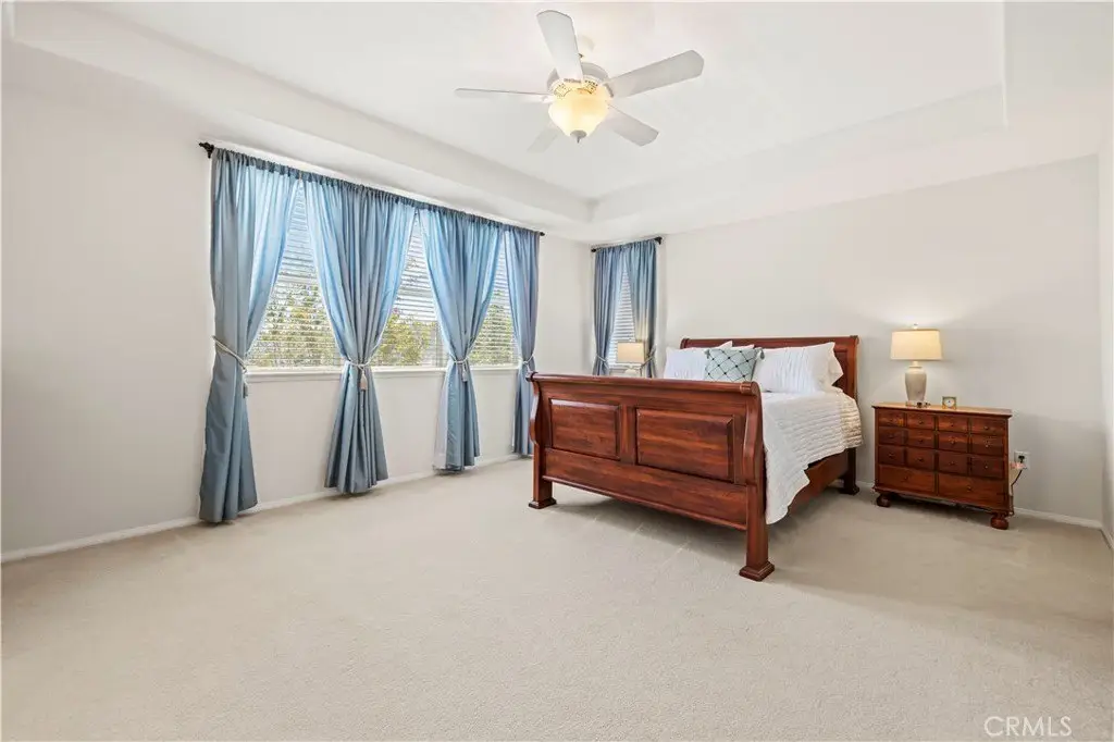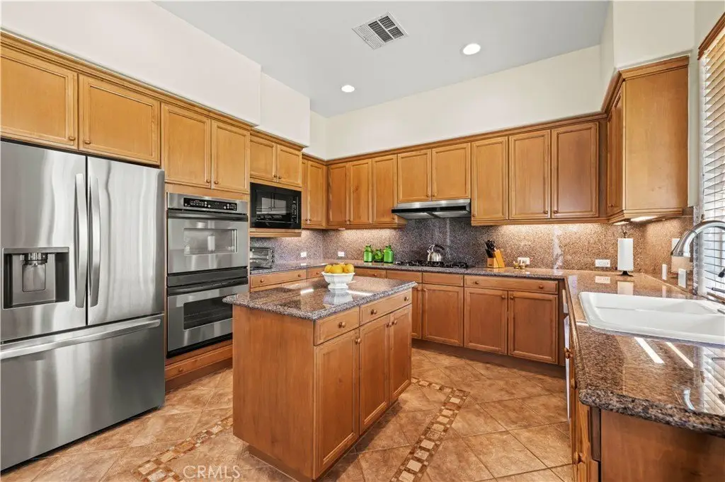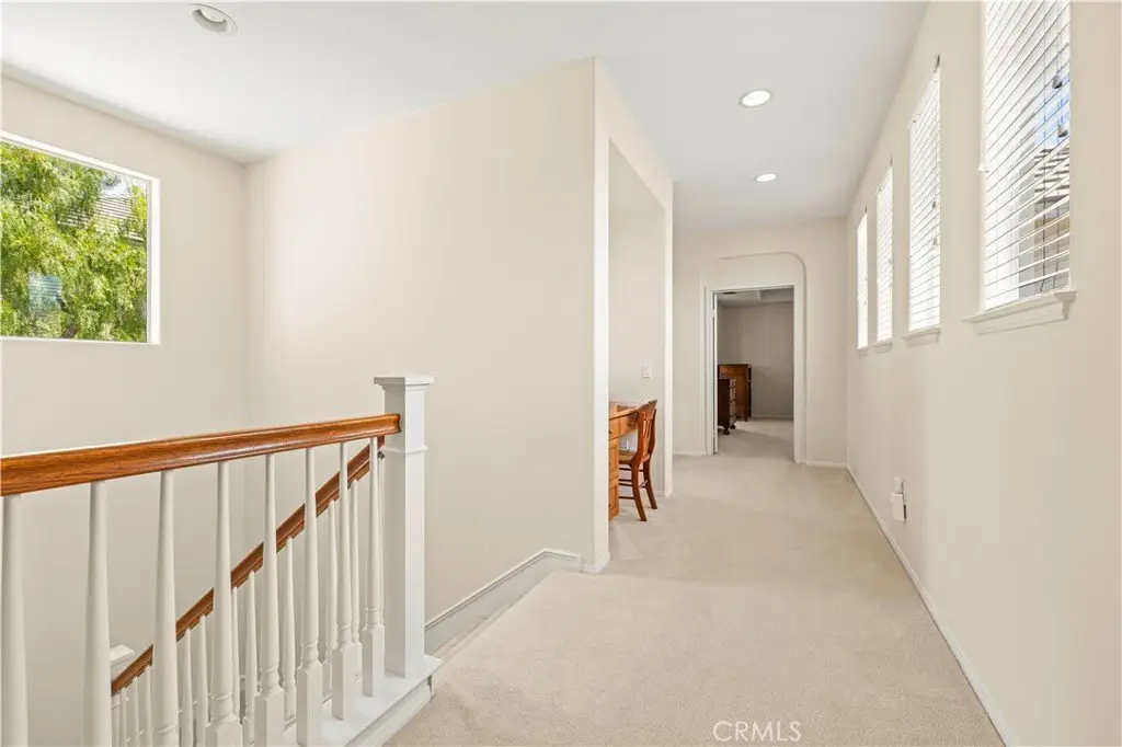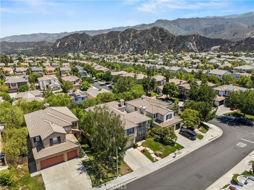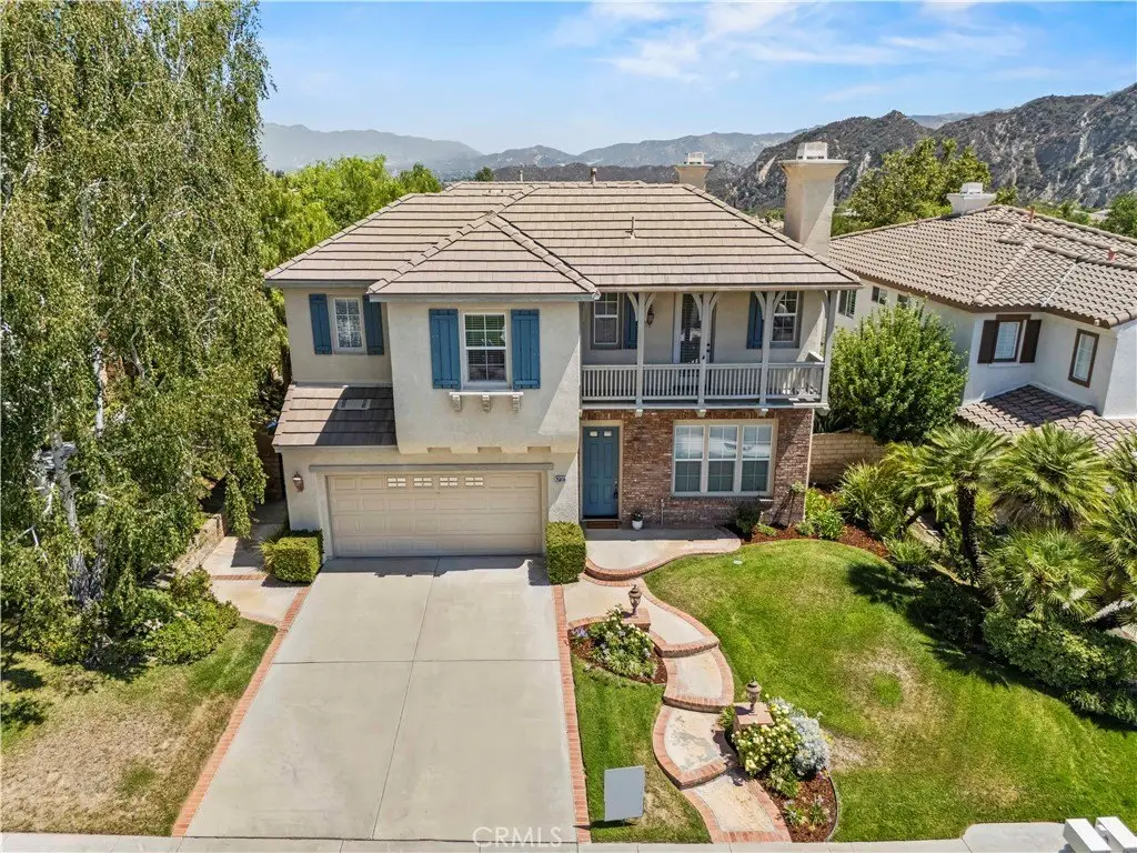 Situated at the top of one of Stevenson Ranch’s most desirable neighborhoods, this beautifully maintained Mediterranean-inspired home offers over 3200 square feet of updated living space. It features five spacious bedrooms and three full bathrooms, including a full bedroom and bathroom on the main level, perfect for guests or multi-generational living. From the moment you arrive, pride of ownership is clear. A unique dual staircase anchors the expansive layout, which includes formal living and dining rooms, along with French doors that open to a private interior courtyard, ideal for relaxing or entertaining. Throughout the home, you’ll find wood flooring, newer carpet, recessed lighting, phantom screens, and custom touches that reflect true pride of ownership. The gourmet kitchen showcases granite countertops, a center island, pantry closet, under-cabinet lighting, and newer appliances. The bright breakfast nook opens to a spacious family room with a cozy fireplace, built-in media niche, and direct access to the backyard. Upstairs, the expansive primary suite offers a peaceful retreat, featuring a spotless ensuite bathroom with dual sinks, a soaking tub, separate shower, and a custom walk-in closet. Step outside to your entertainer’s backyard with no rear neighbors and enjoy scenic hillside views, year-round serenity, and plenty of space to add your dream outdoor features. Additional upgrades include newer air conditioning condensers, new hot water heater, new screens on windows, phantom screen doors, an upstairs laundry room, dual-zone A/C, two fireplaces, and a three-car tandem garage. All this in a prime location within walking distance of award-winning Stevenson Ranch Elementary and Richard Rioux Park, offering tennis courts, playgrounds, walking trails, and open fields. Enjoy easy access to shopping, dining, and the freeway. Low HOA of $30 monthly and low Mello Roos set to expire in 2026. This immaculate, move-in ready home offers the perfect blend of space, style, and location!