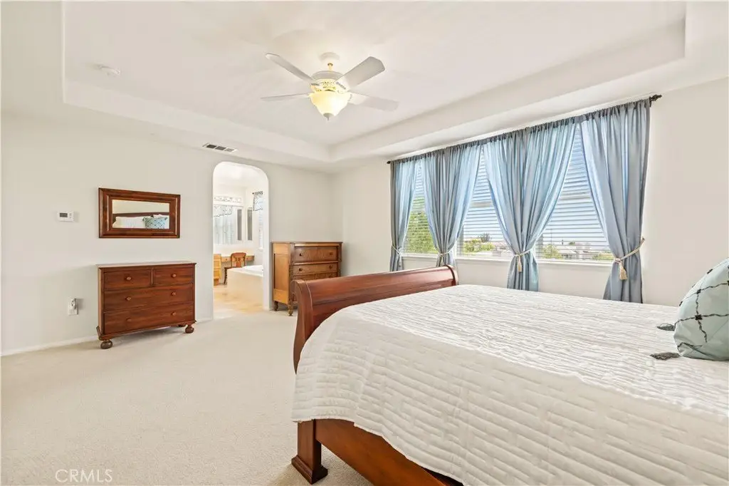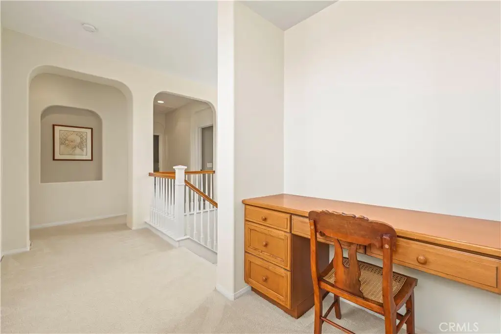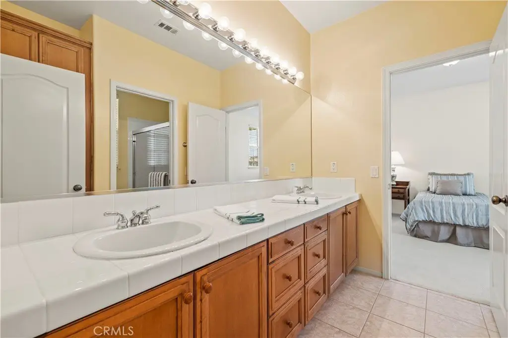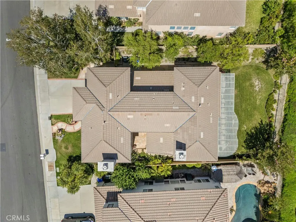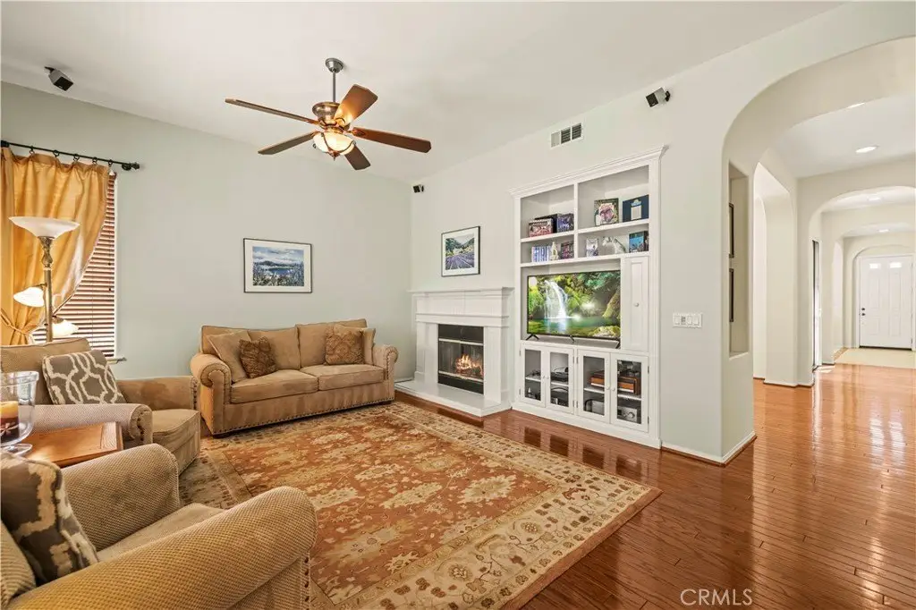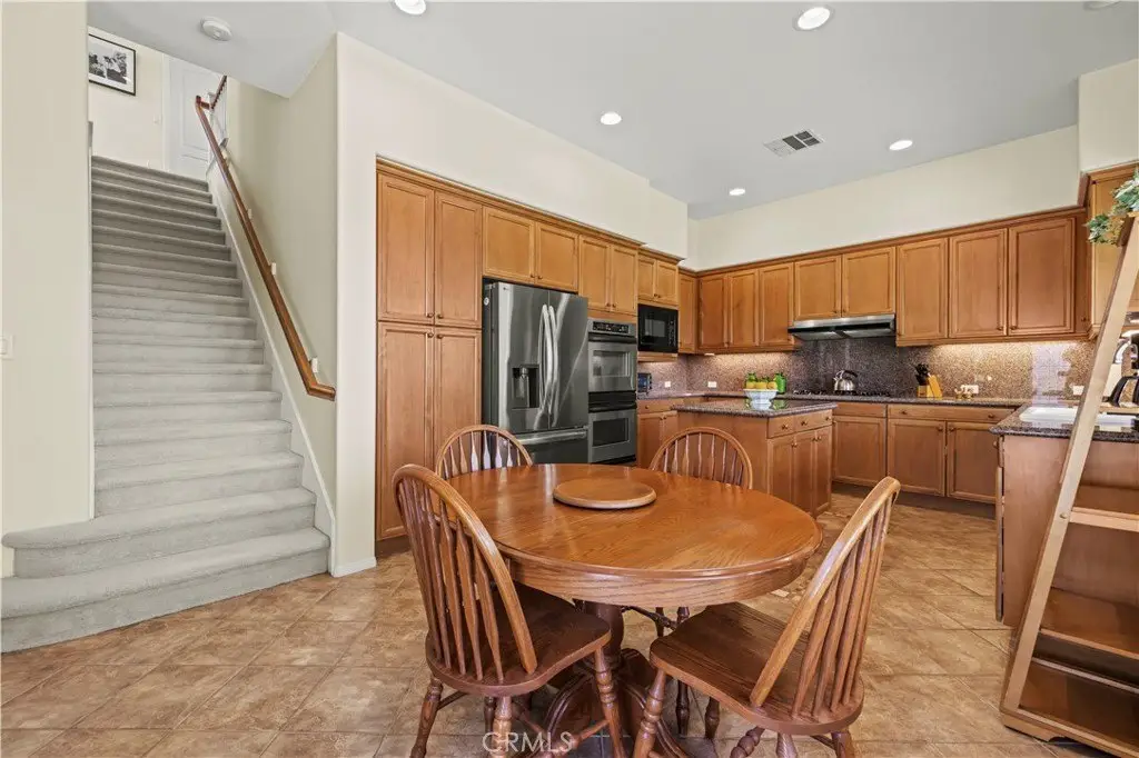 Situated at the top of one of Stevenson Ranch’s most desirable neighborhoods, this beautifully maintained Mediterranean-inspired home offers over 3200 square feet of updated living space. It features five spacious bedrooms and three full bathrooms, including a full bedroom and bathroom on the main level, perfect for guests or multi-generational living. From the moment you arrive, pride of ownership is clear. A unique dual staircase anchors the expansive layout, which includes formal living and dining rooms, along with French doors that open to a private interior courtyard, ideal for relaxing or entertaining. Throughout the home, you’ll find wood flooring, newer carpet, recessed lighting, phantom screens, and custom touches that reflect true pride of ownership. The gourmet kitchen showcases granite countertops, a center island, pantry closet, under-cabinet lighting, and newer appliances. The bright breakfast nook opens to a spacious family room with a cozy fireplace, built-in media niche, and direct access to the backyard. Upstairs, the expansive primary suite offers a peaceful retreat, featuring a spotless ensuite bathroom with dual sinks, a soaking tub, separate shower, and a custom walk-in closet. Step outside to your entertainer’s backyard with no rear neighbors and enjoy scenic hillside views, year-round serenity, and plenty of space to add your dream outdoor features. Additional upgrades include newer air conditioning condensers, new hot water heater, new screens on windows, phantom screen doors, an upstairs laundry room, dual-zone A/C, two fireplaces, and a three-car tandem garage. All this in a prime location within walking distance of award-winning Stevenson Ranch Elementary and Richard Rioux Park, offering tennis courts, playgrounds, walking trails, and open fields. Enjoy easy access to shopping, dining, and the freeway. Low HOA of $30 monthly and low Mello Roos set to expire in 2026. This immaculate, move-in ready home offers the perfect blend of space, style, and location!